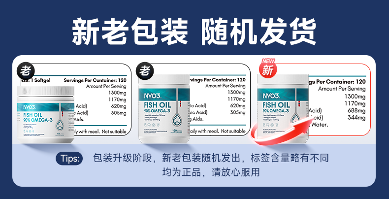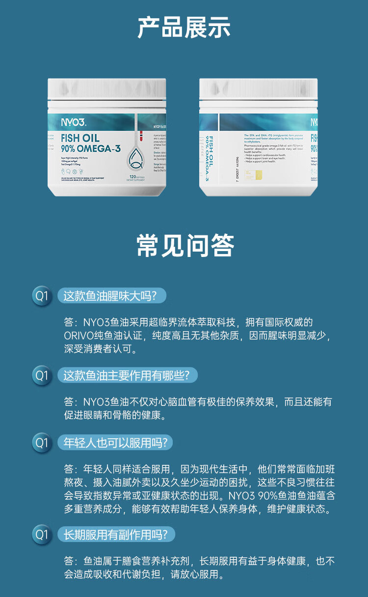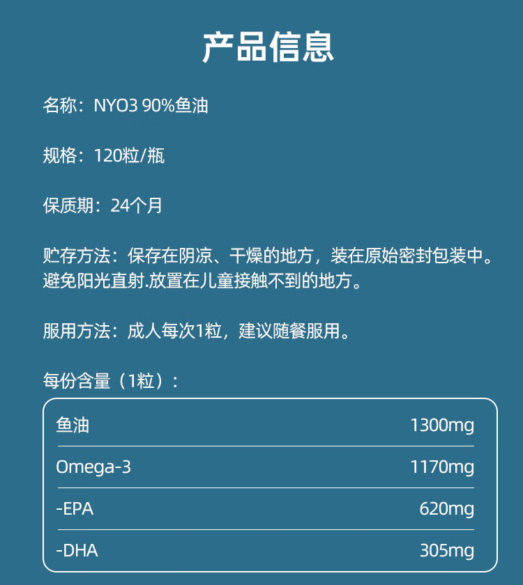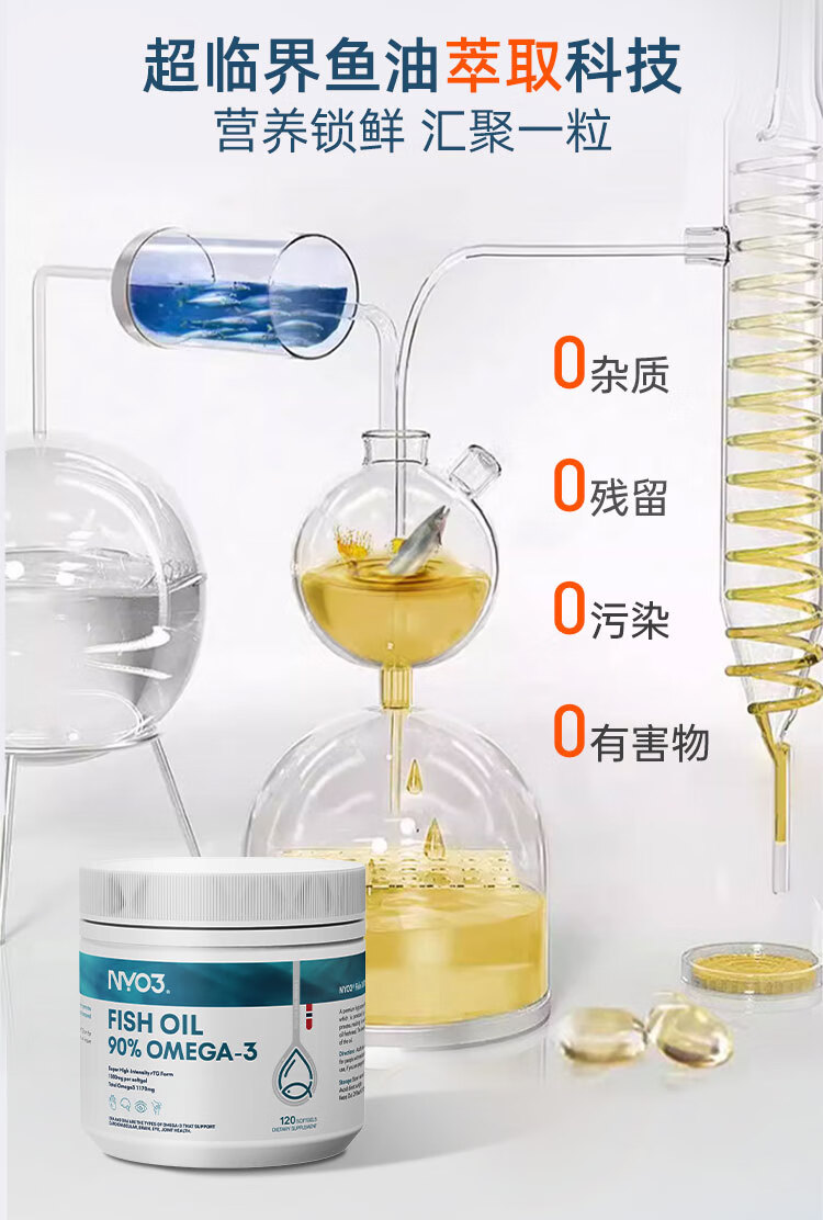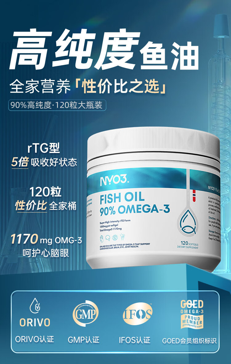NYO3深海鱼油1300mg 90%高纯omega-3通血管降血脂原装进口 120粒