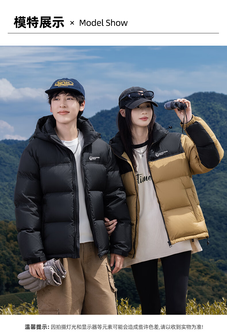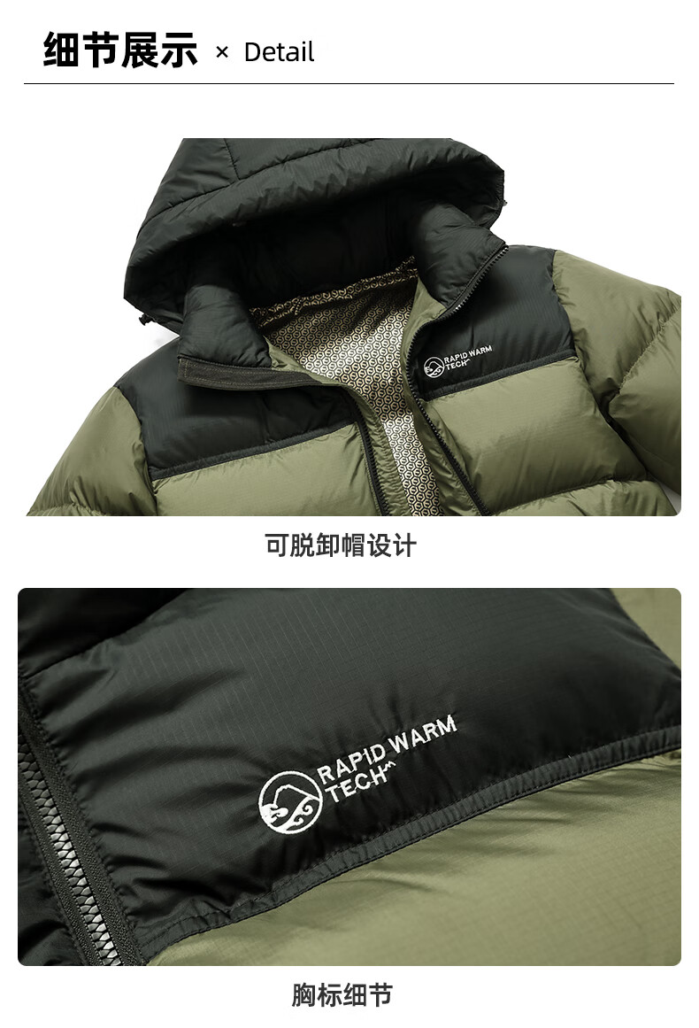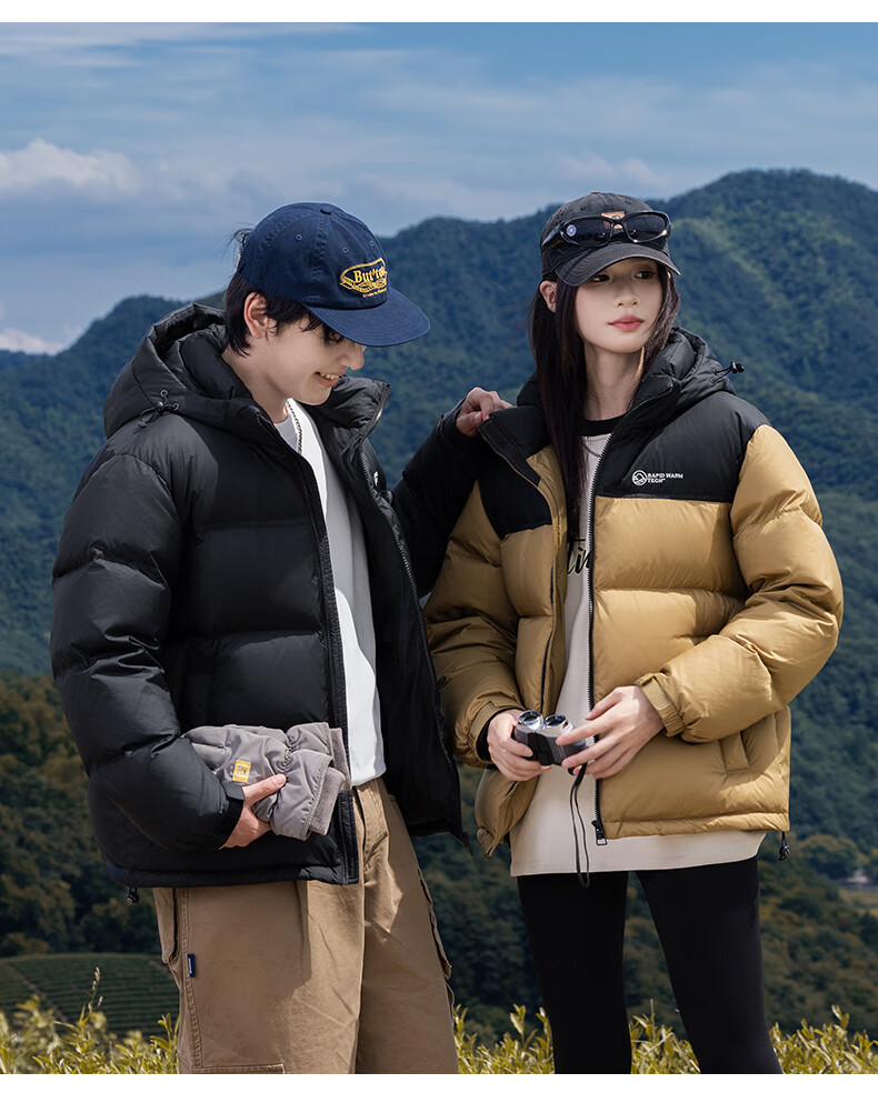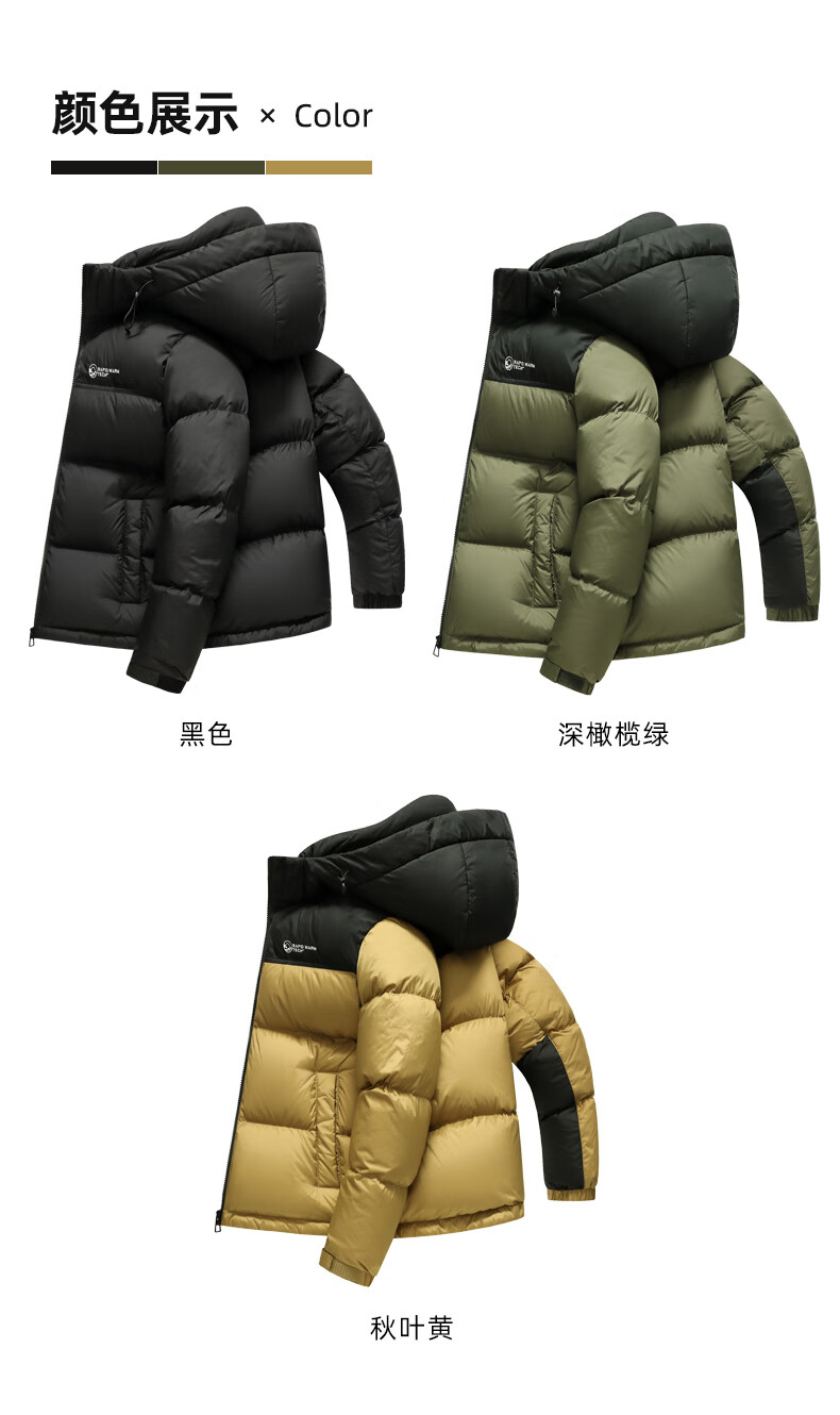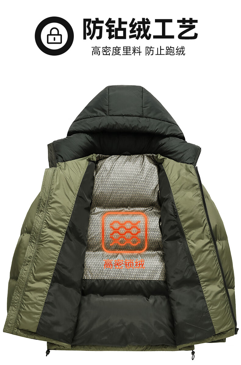 鸭鸭【255充绒】冬季加厚羽绒服男士新年短款面包服保暖极寒连帽外套