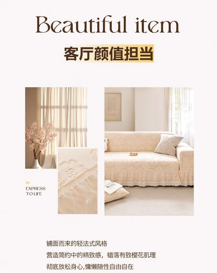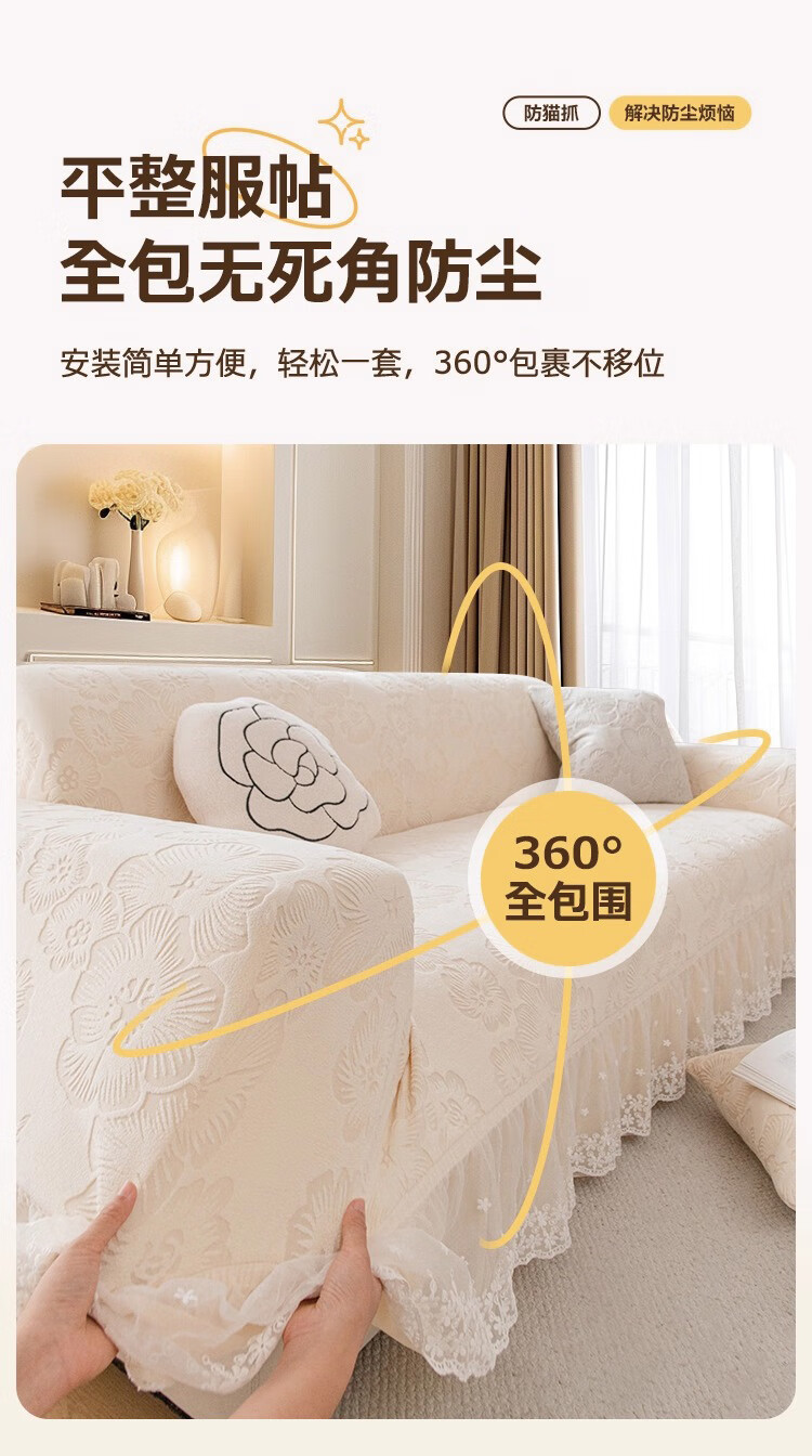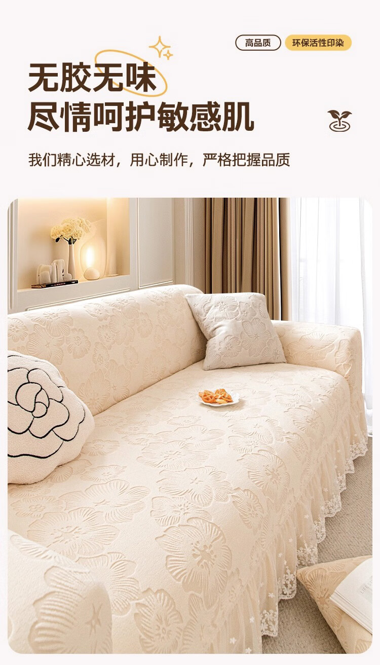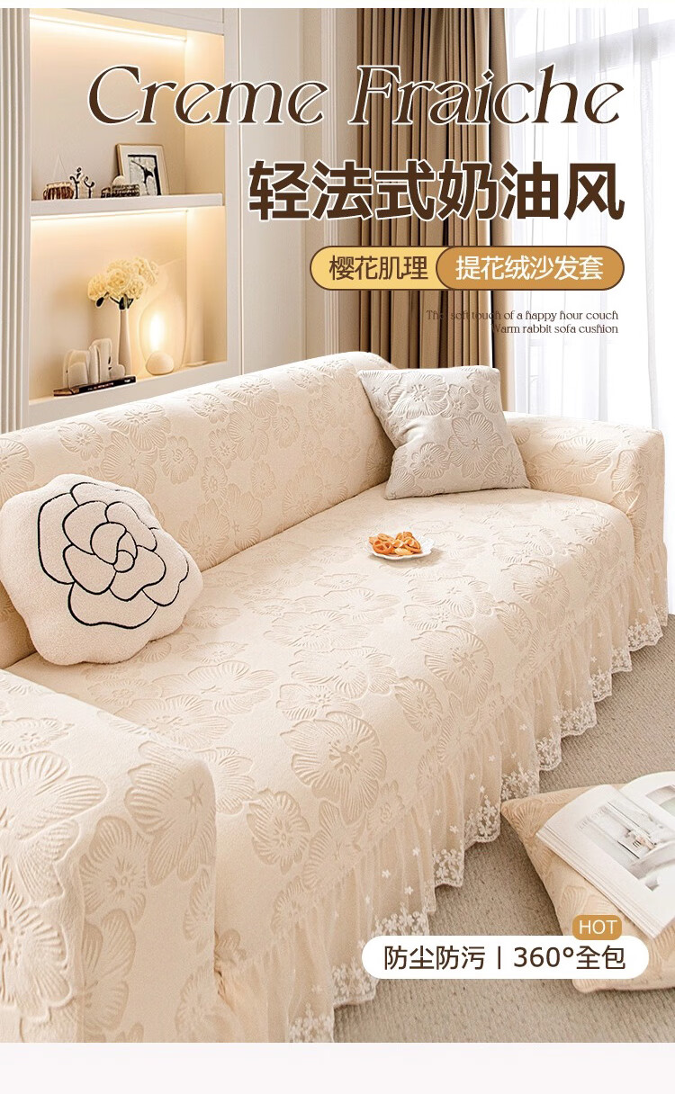 金拾美月奶油风裙边沙发全包套防猫抓四季通用直排沙发垫2026新款盖布巾 春樱裙边-米色 全包单人/适用90-140cm(建议拍大一码)