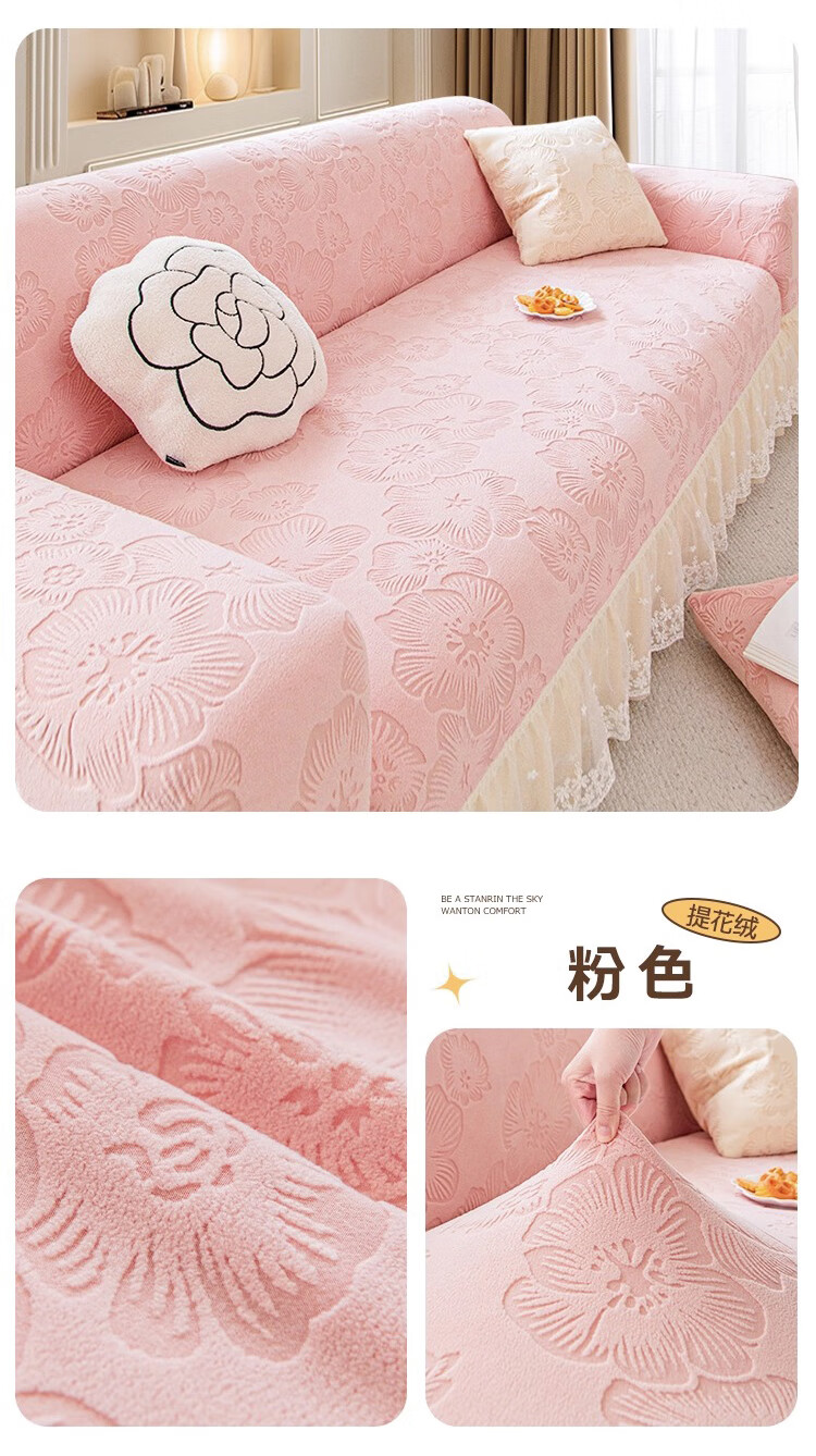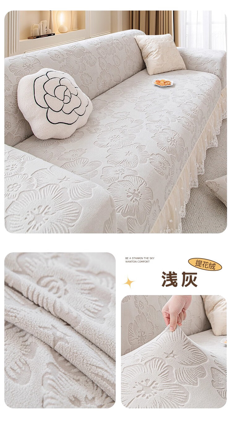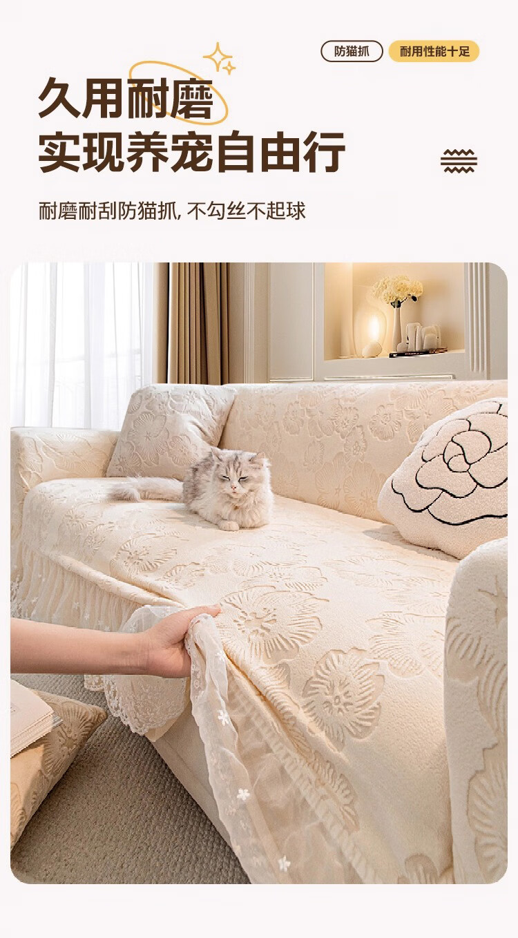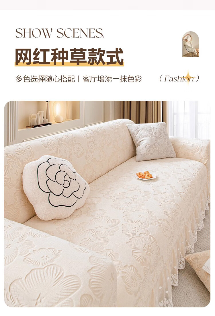 金拾美月奶油风裙边沙发全包套防猫抓四季通用直排沙发垫2026新款盖布巾 春樱裙边-米色 全包单人/适用90-140cm(建议拍大一码)