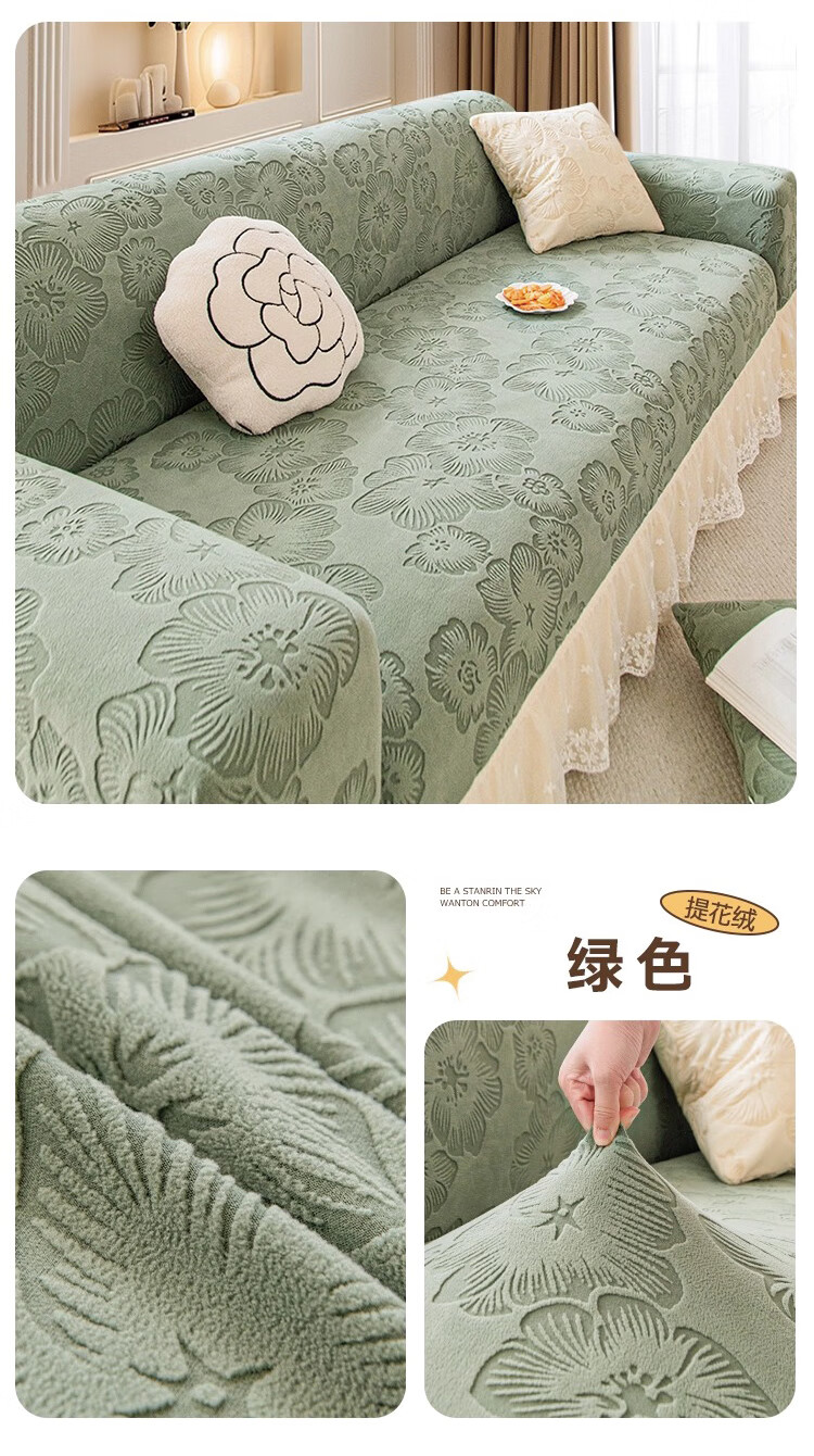 无印良品2025新款秋冬款薏米绒沙发盖布巾防滑沙发套罩加厚冬季毛绒沙发毯 山海-米咖色【加厚薏米绒软糯温暖不静电】 180*480cm【适合五人位】