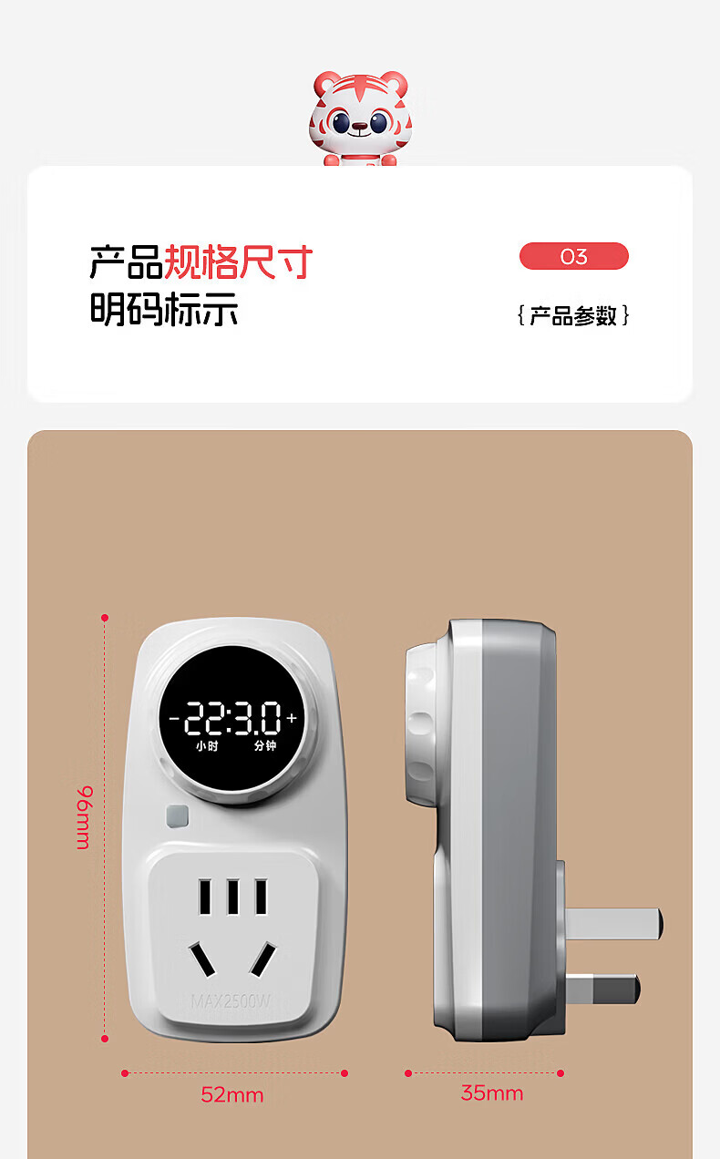 国际电工智能数显电子定时插座显示屏电动车防过充时间自动记忆通断电保护 10A定时插座【升级按键开关】数显大屏+旋钮定时