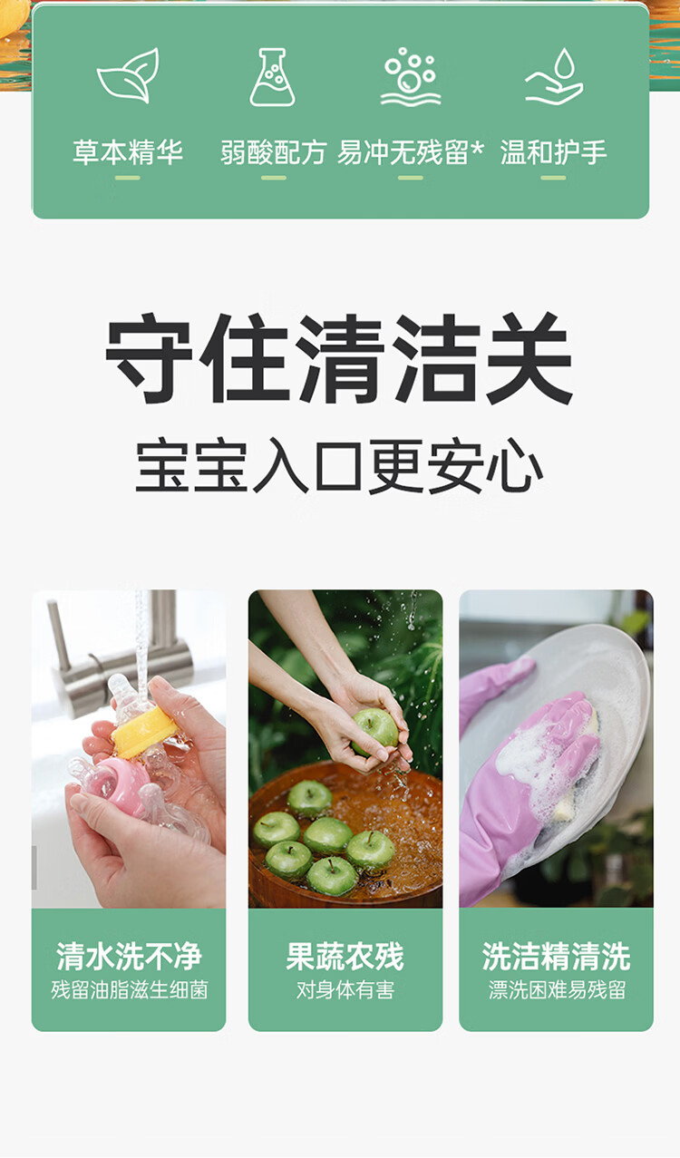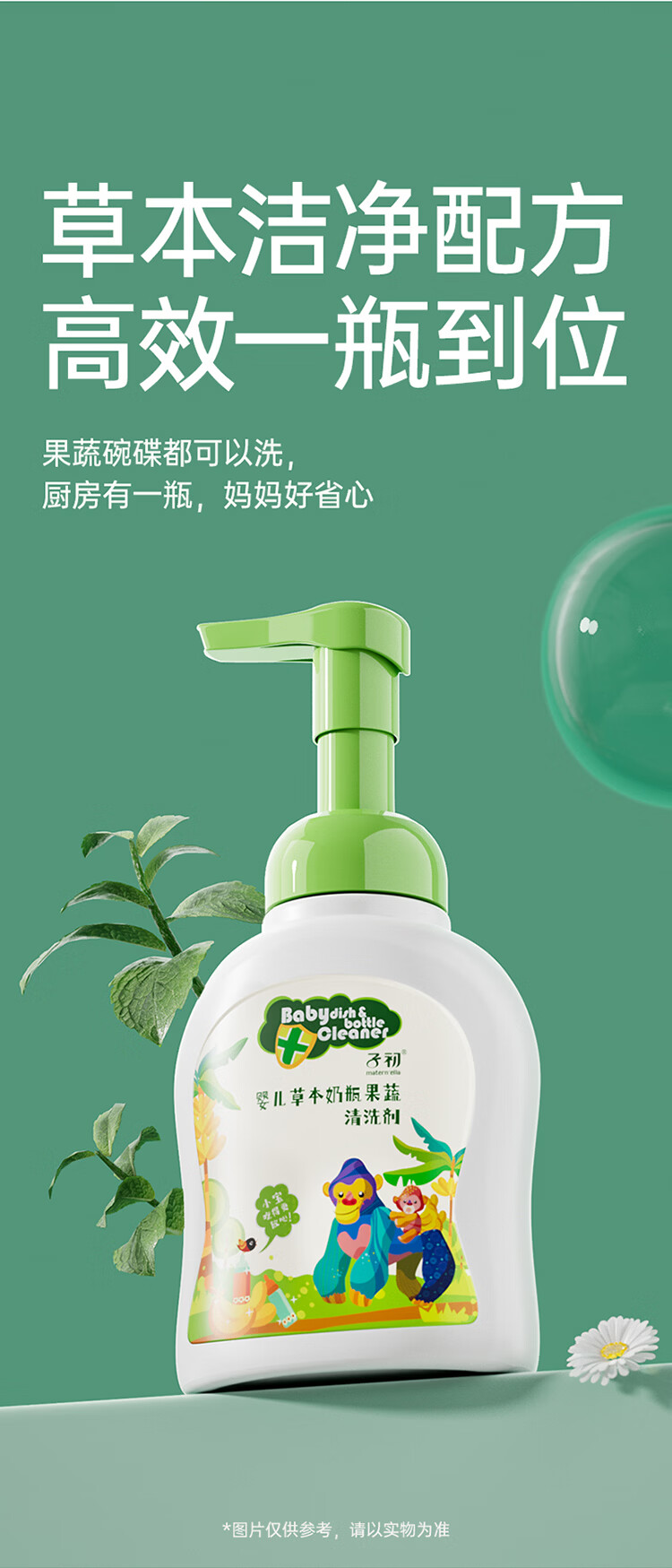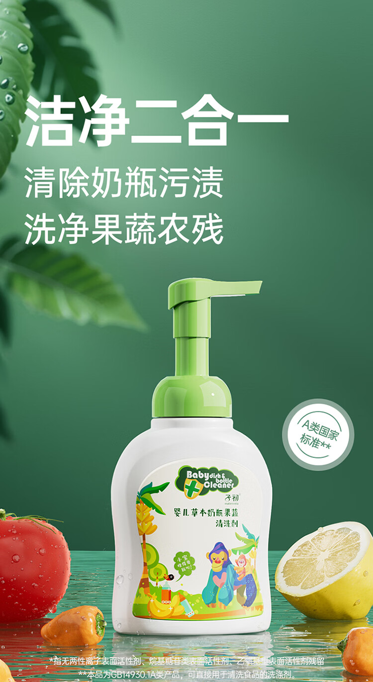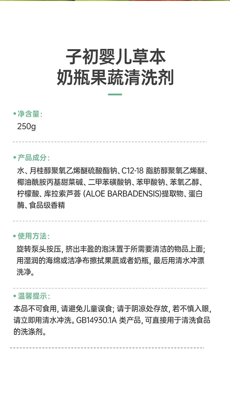 子初宝宝奶瓶清洗剂250g*2瓶草本植萃果蔬清洗液除垢剂婴儿清洗奶瓶