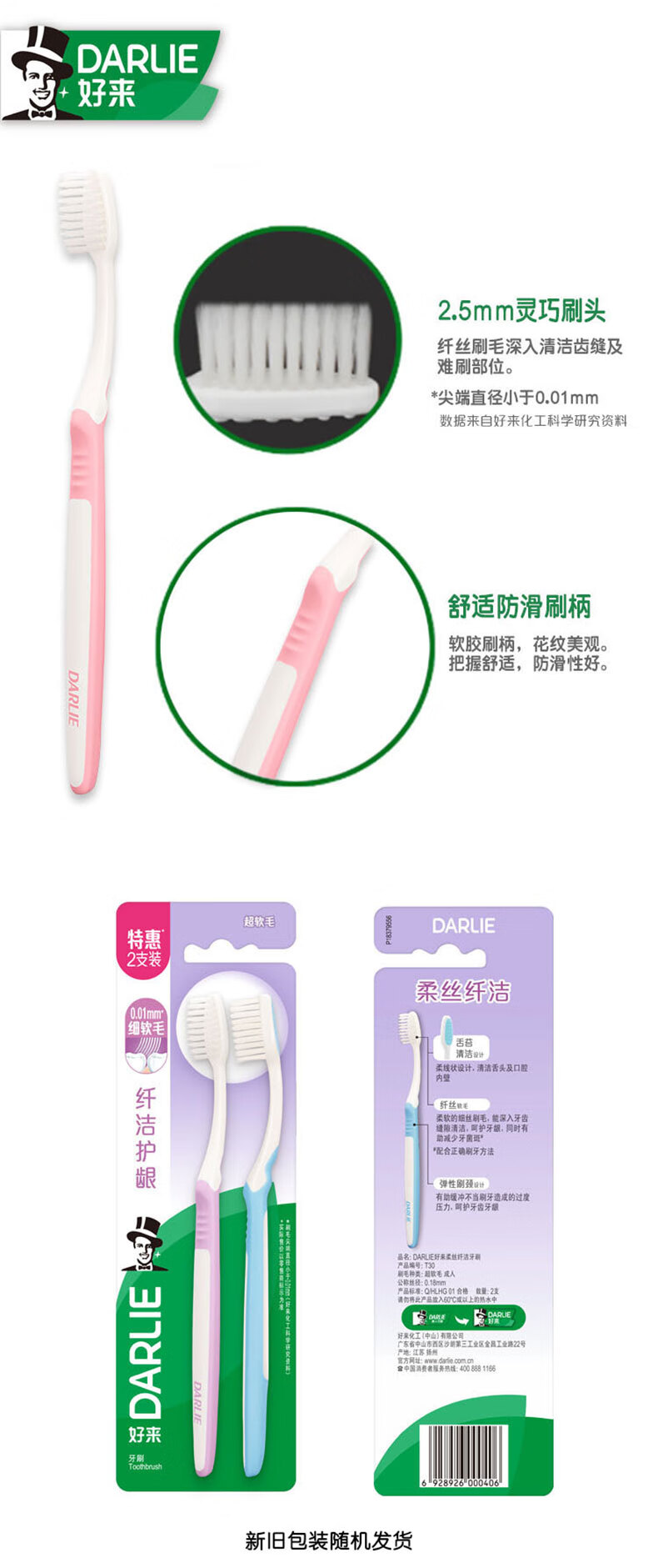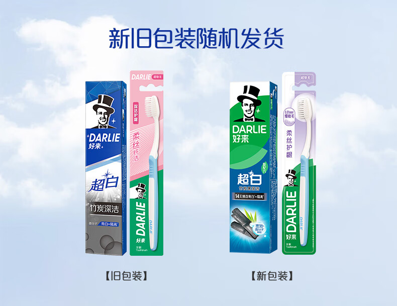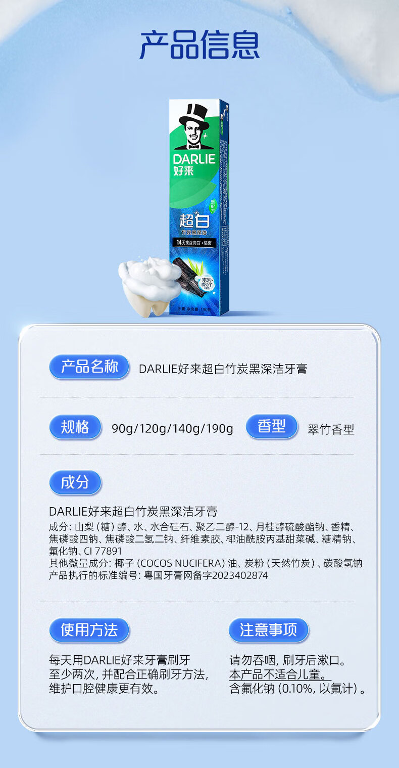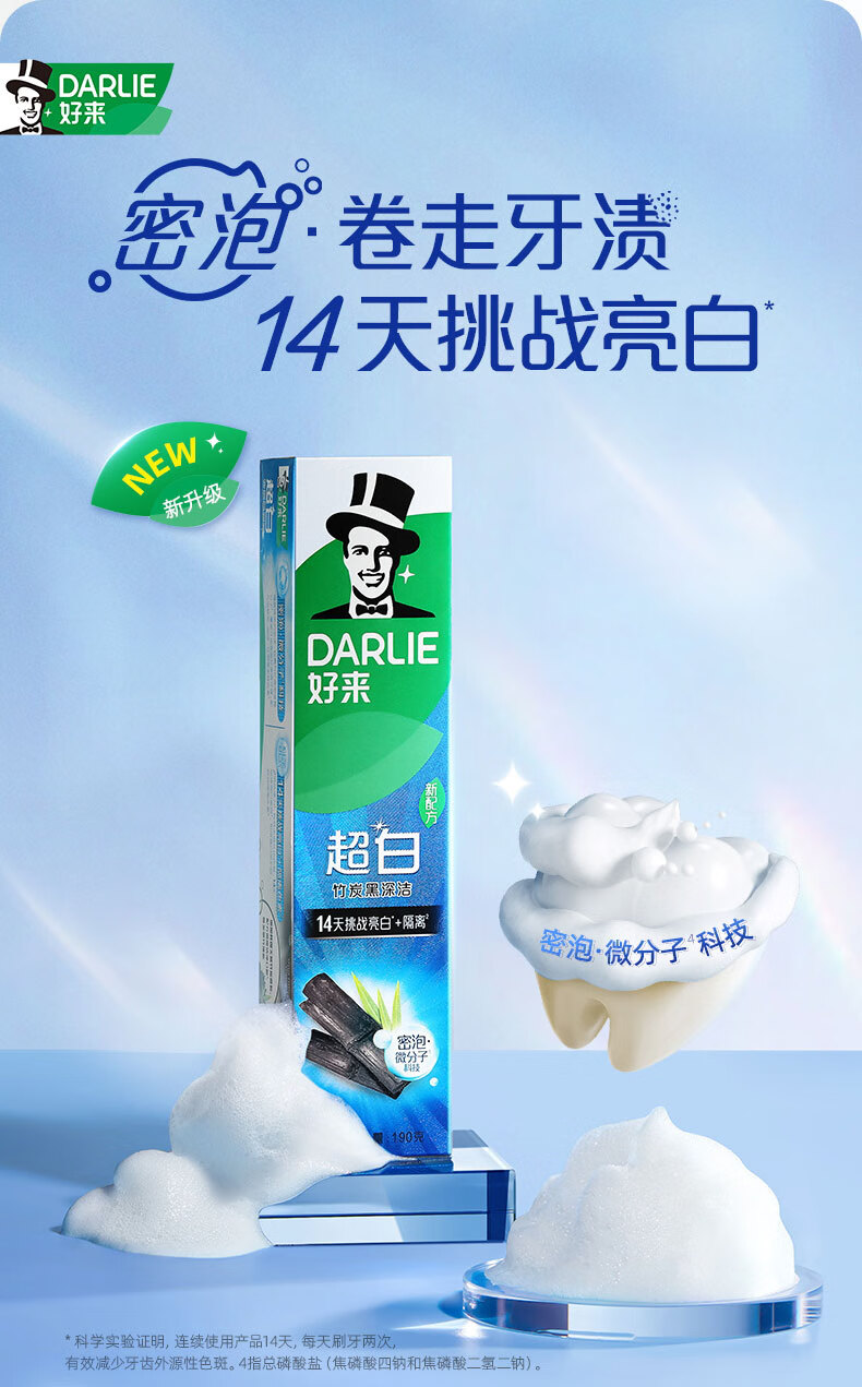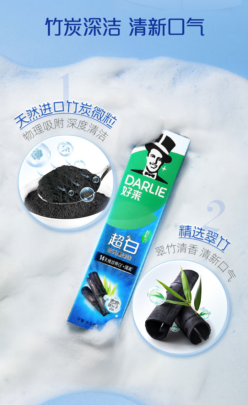 好来【白鹿推荐】超白竹炭深洁牙膏 亮白清新 4支共480g+牙刷2支