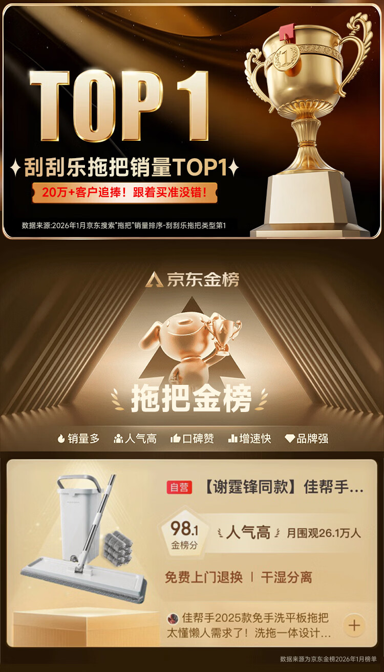 佳帮手平板拖把家用一拖净免手洗2025带桶一套洗拖一体懒人地神器墩拖布