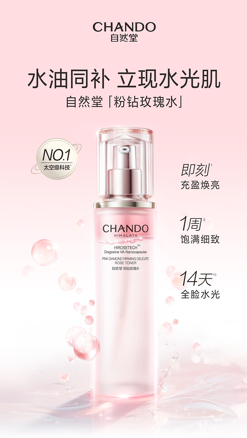 自然堂粉钻紧致细嫩玫瑰水110mL 保湿抗皱紧致舒缓爽肤水护肤品女