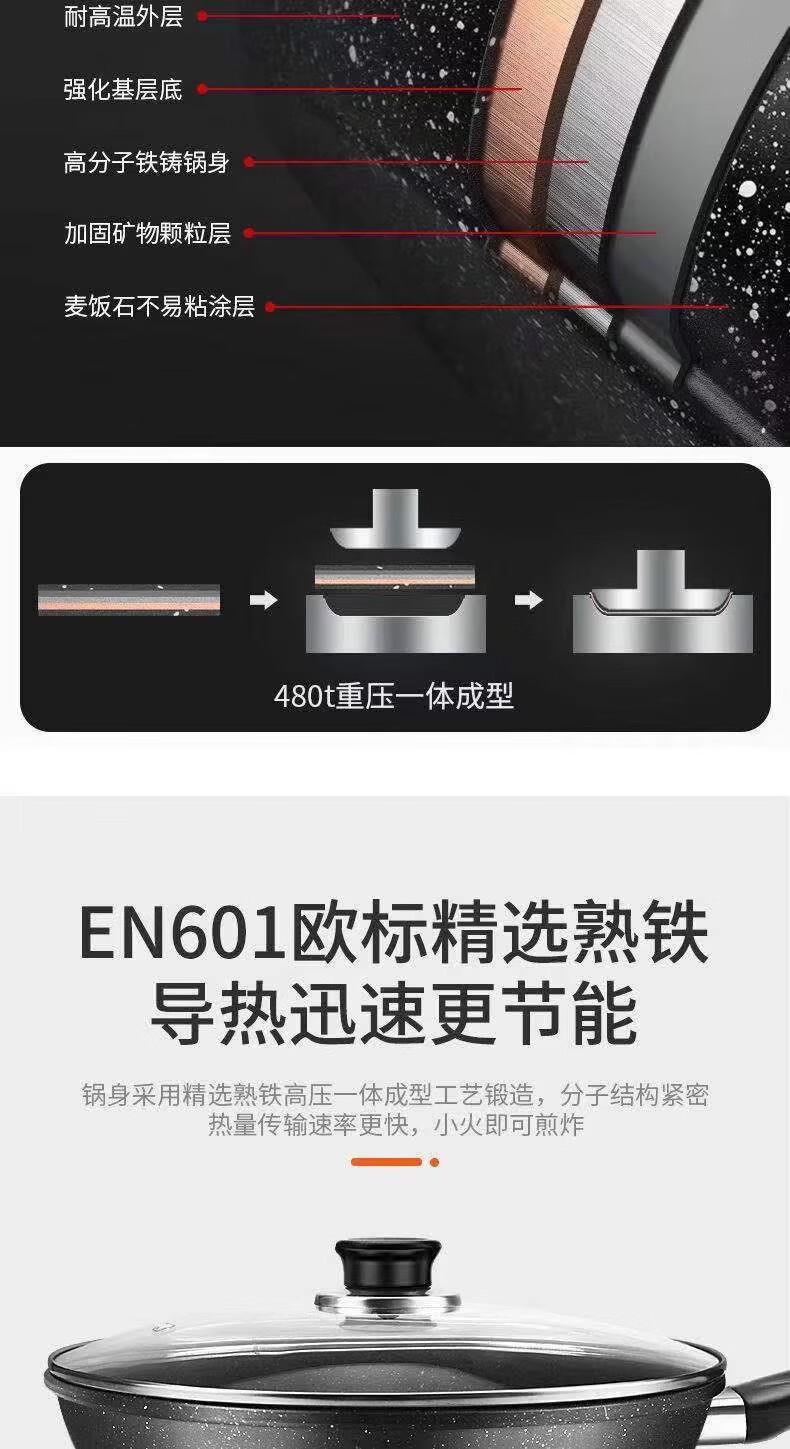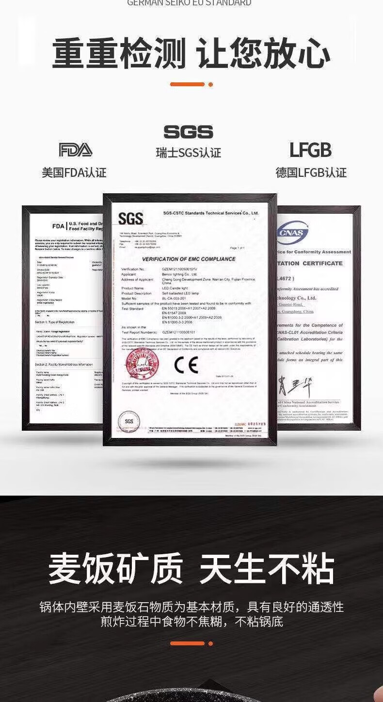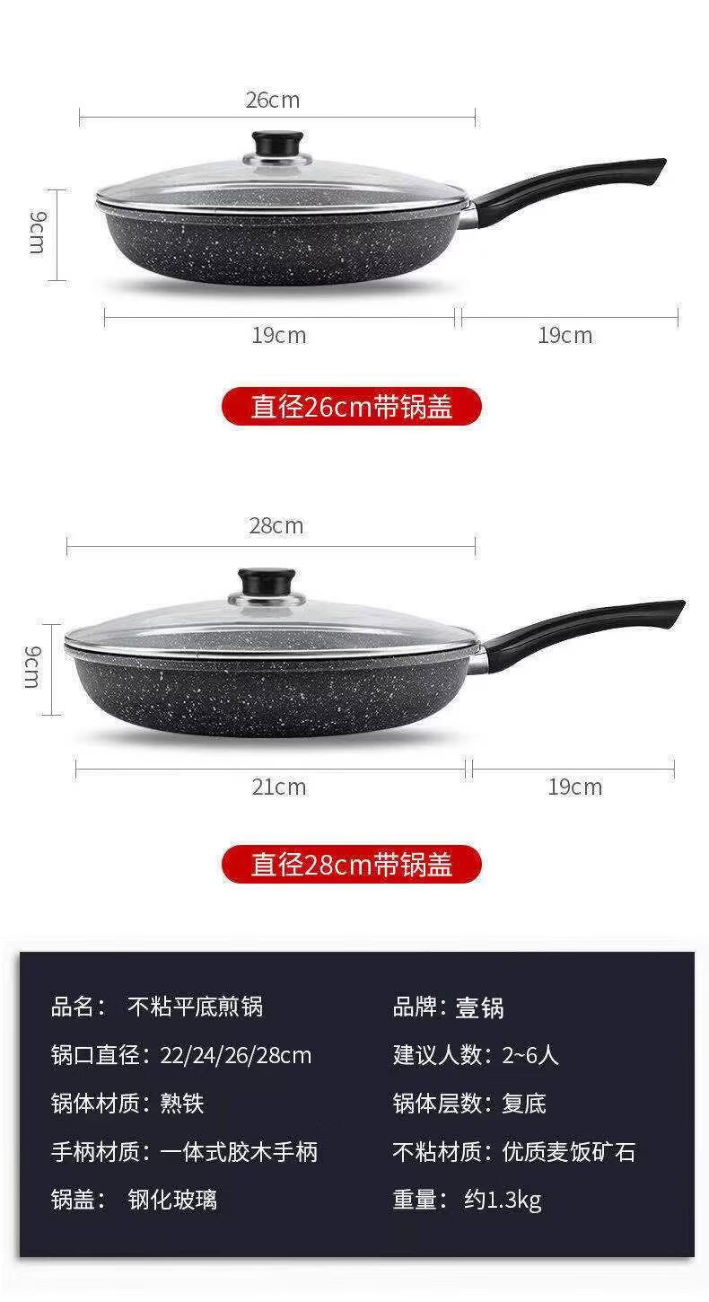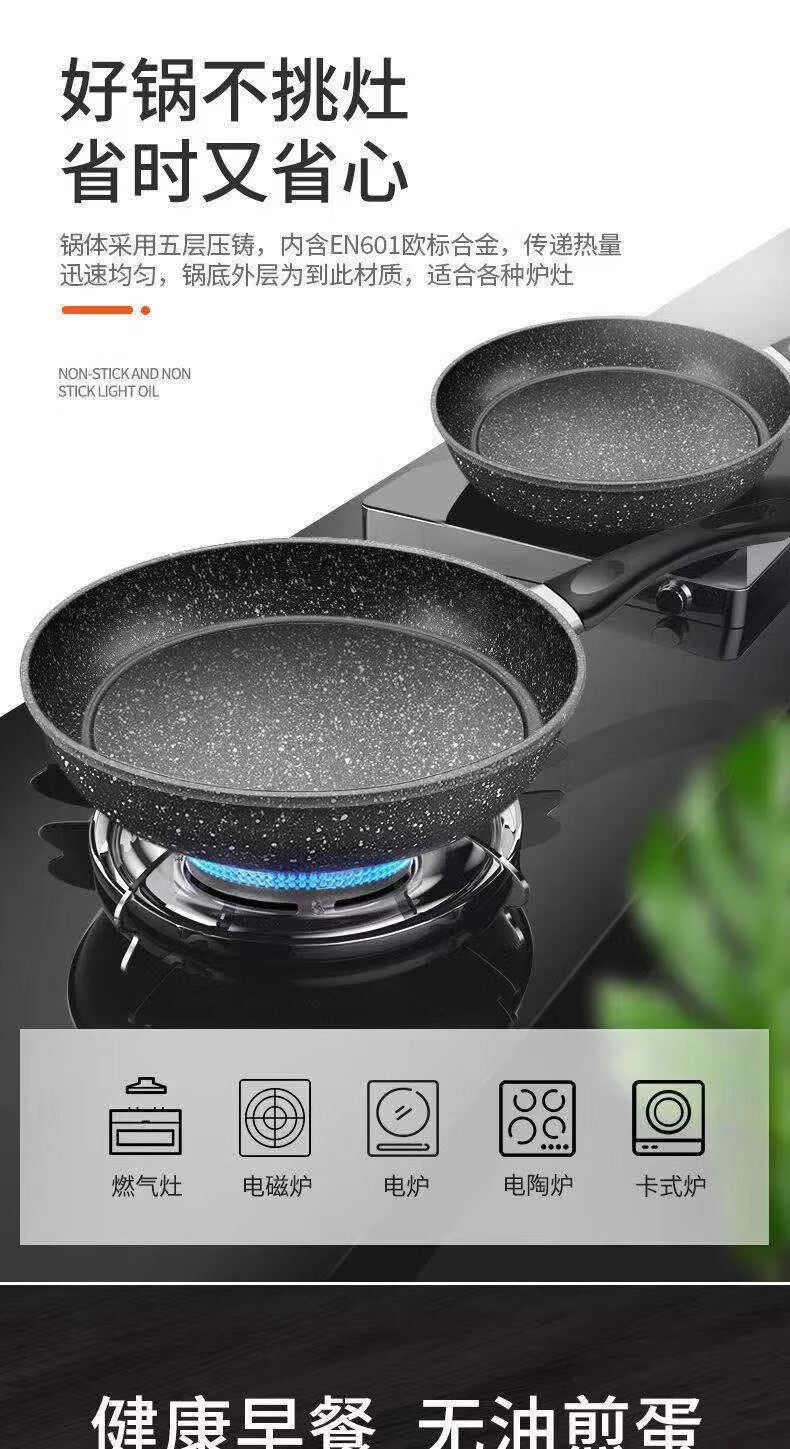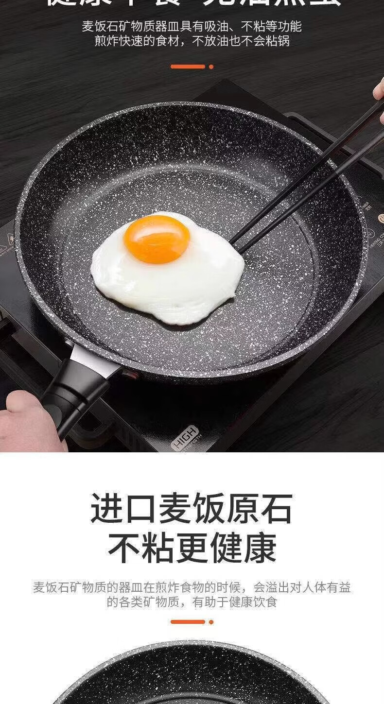 麦饭石煎锅不粘锅煎饼烙饼煎蛋小牛排煎锅平底锅电磁炉燃气 麦饭石爆款 18cm