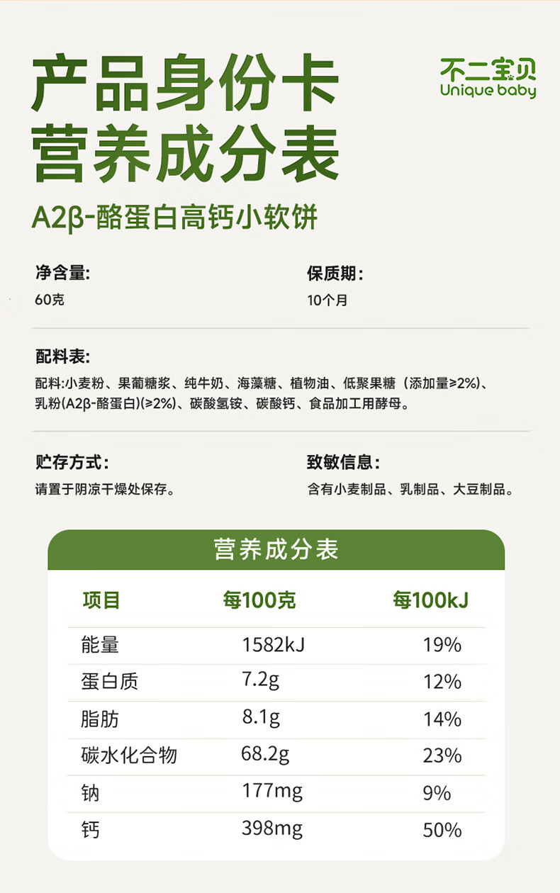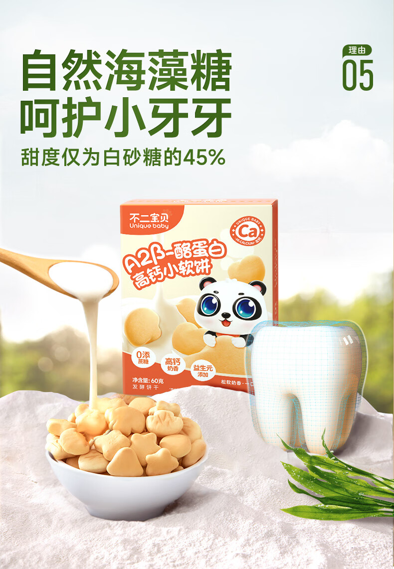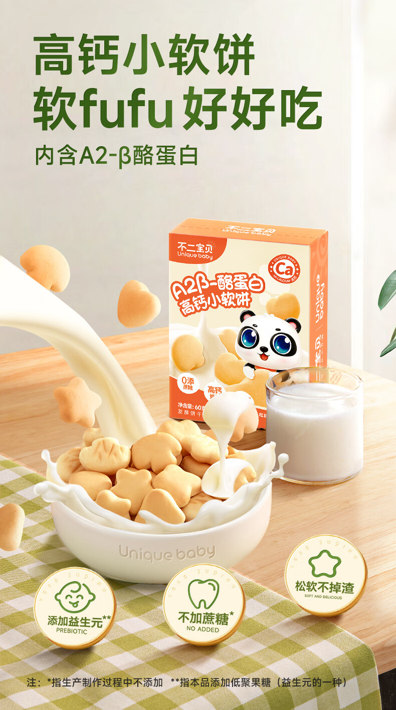 不二宝贝A2β小软饼干宝宝小零辅食一岁以上搭配婴幼儿童米饼磨牙棒 【1盒 | 松软可口】A2-β酪蛋白高钙小软饼60g