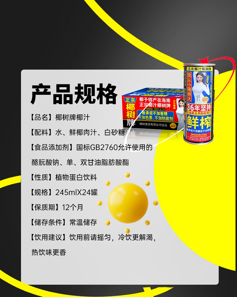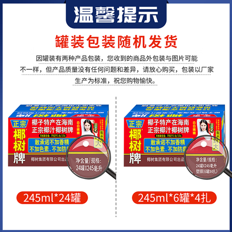 椰树椰汁 245ml*24罐植物蛋白饮料正宗海南特产 6罐*4组 年货送礼年货