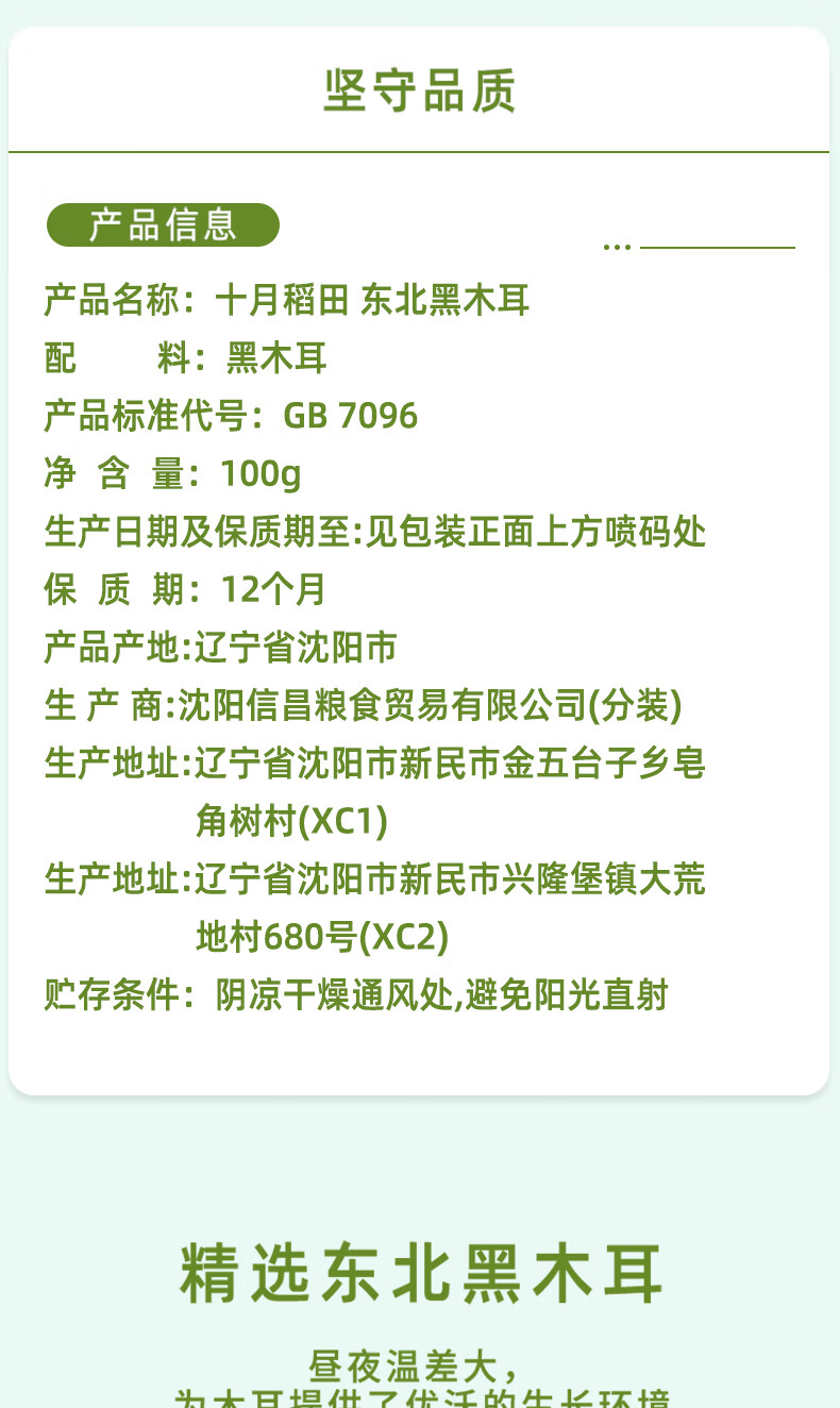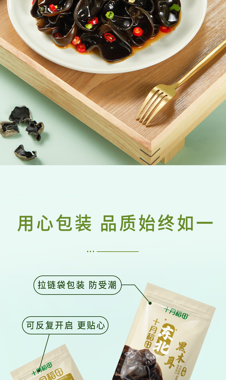 十月稻田 东北黑木耳 100g 肉厚无根 干木耳 黑龙江东宁特产 火锅煲汤凉拌