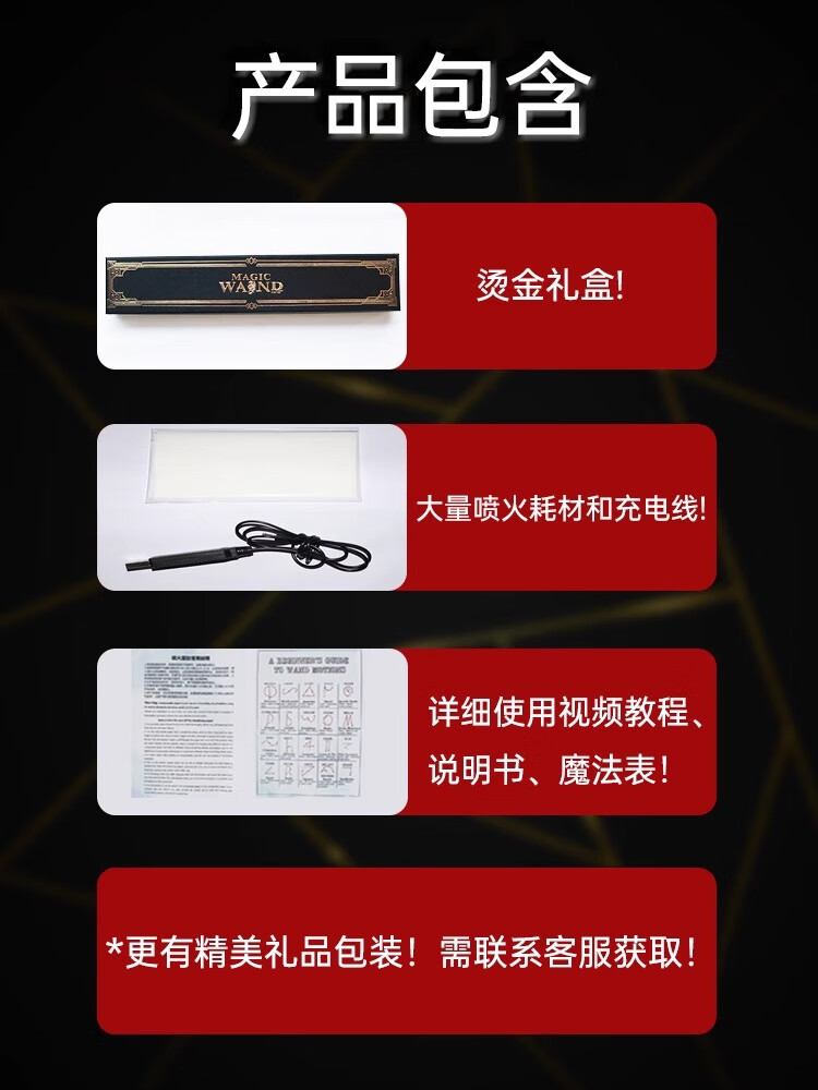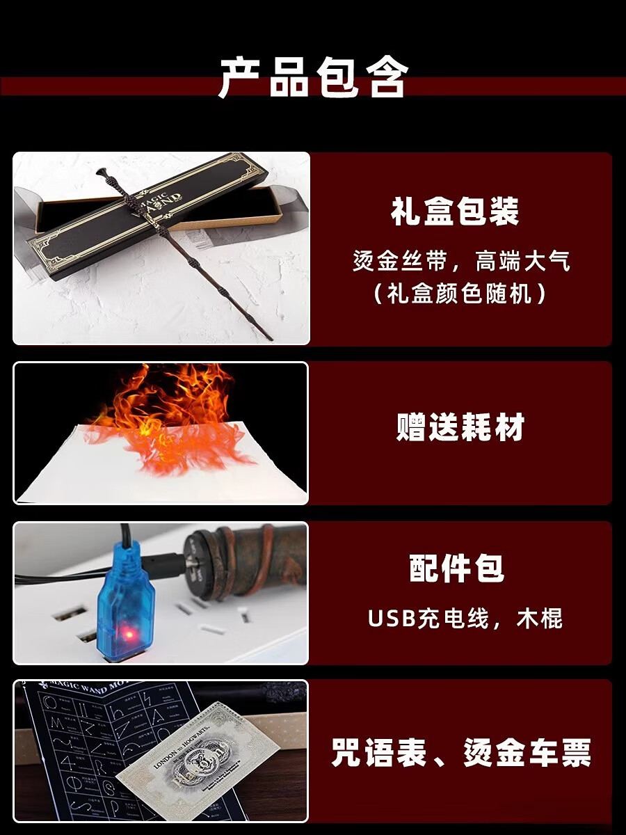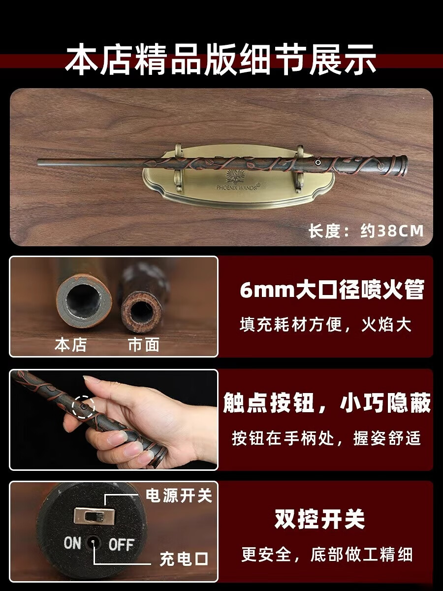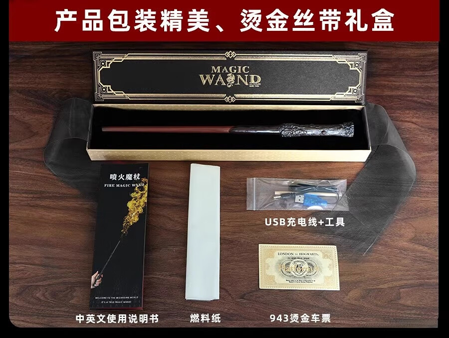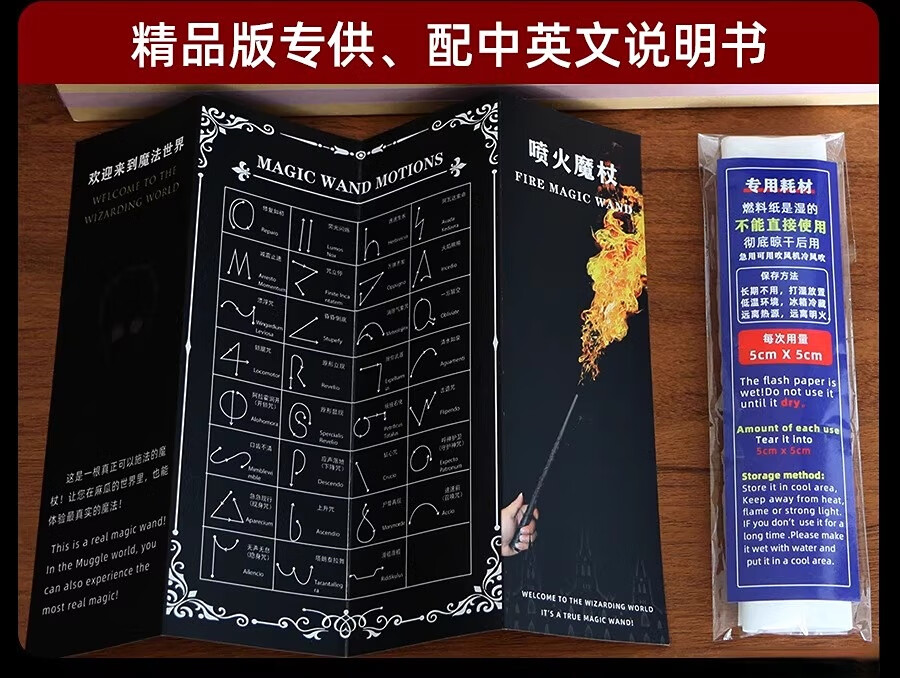 哈利波特魔杖可喷火正版魔法棒魔术玩具cos道具男生生日礼物礼盒 伏地魔-6mm口径12张耗材纸