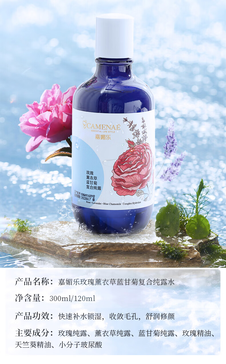 嘉媚乐(CAMENAE)玫瑰薰衣草洋甘菊纯露补水保湿爽肤水 补水喷雾护肤品节日礼物 300ml
