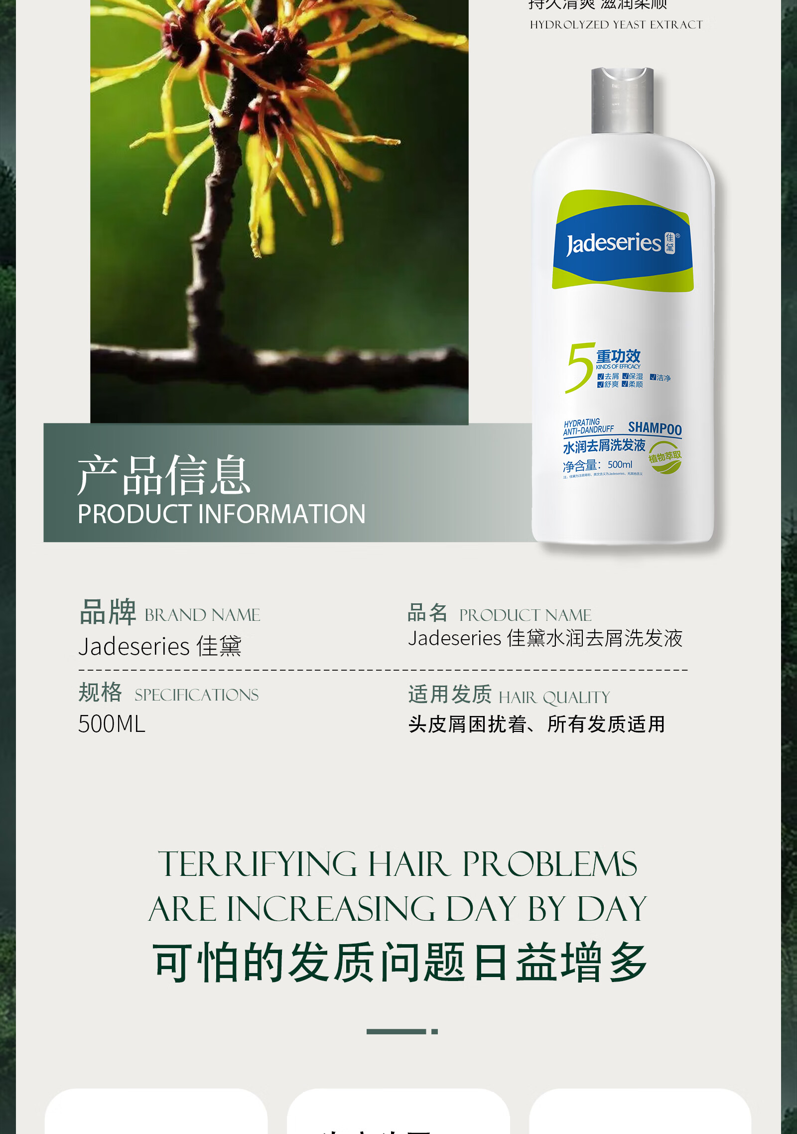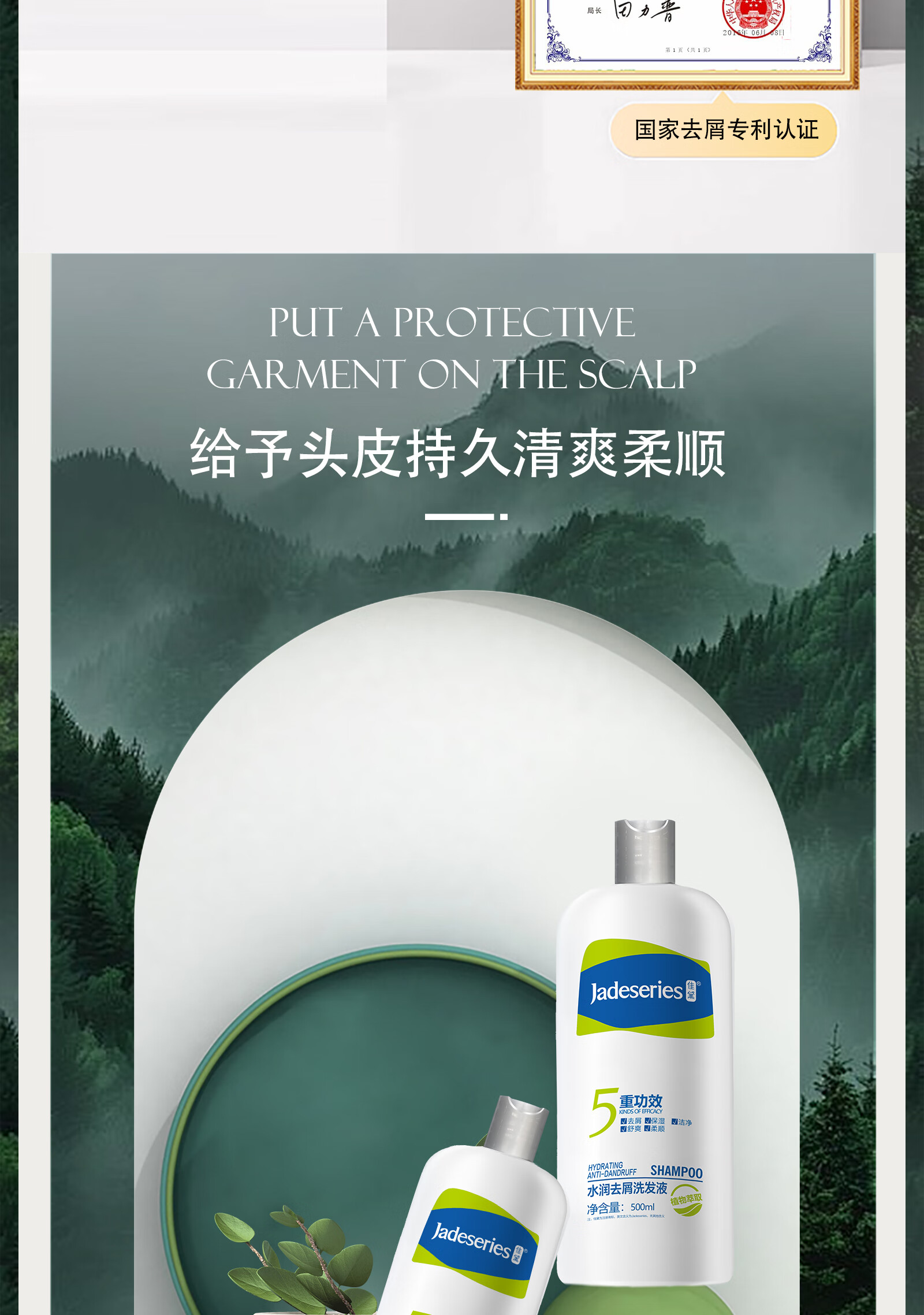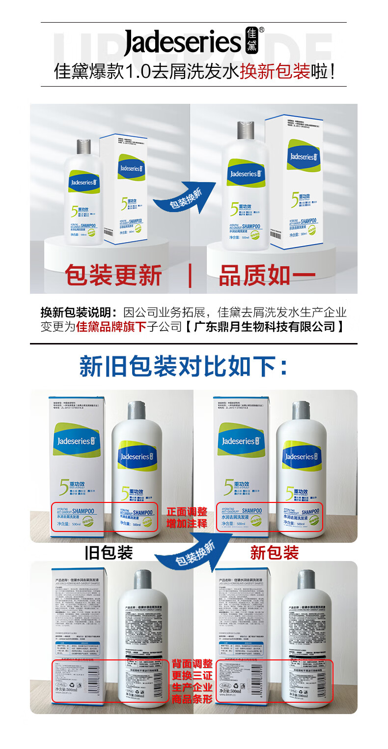 佳黛去屑洗发水 清爽洁净止痒去油所有发质男女蓬松柔顺洗发液500ml 500ml 清爽洗发水(赠试用装) 佳黛水润去屑洗发液