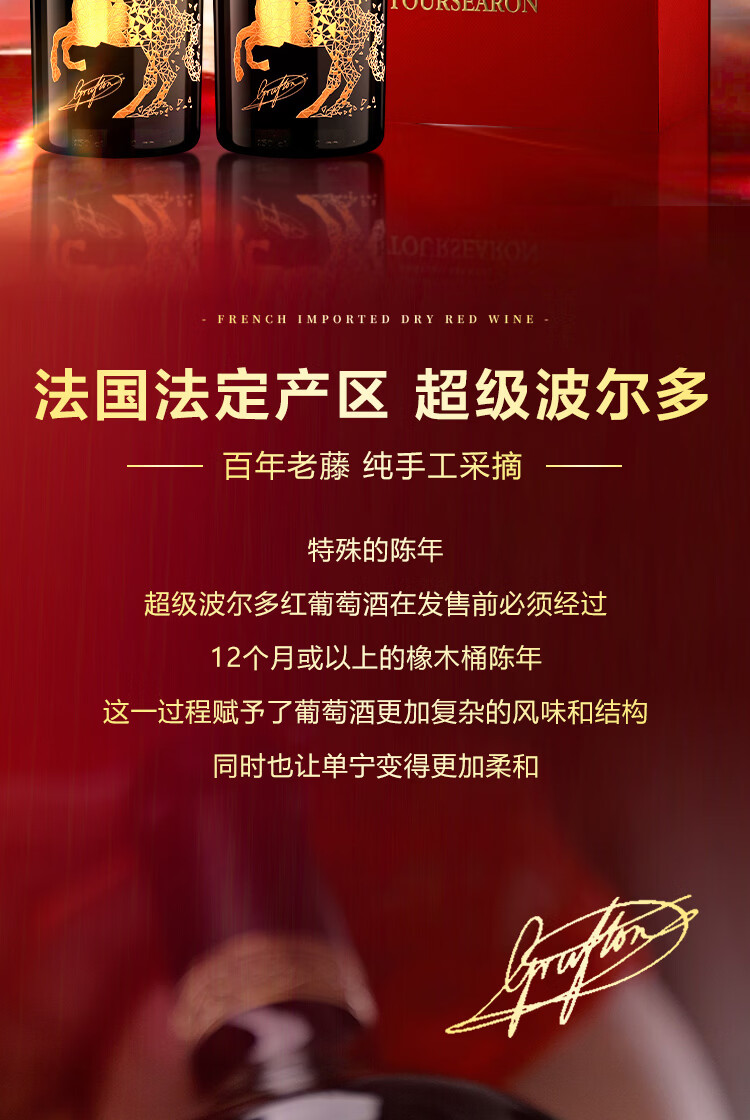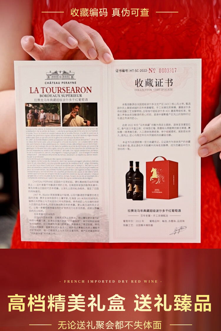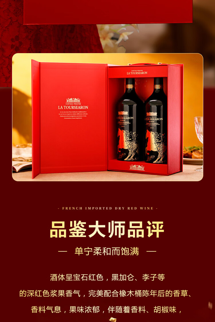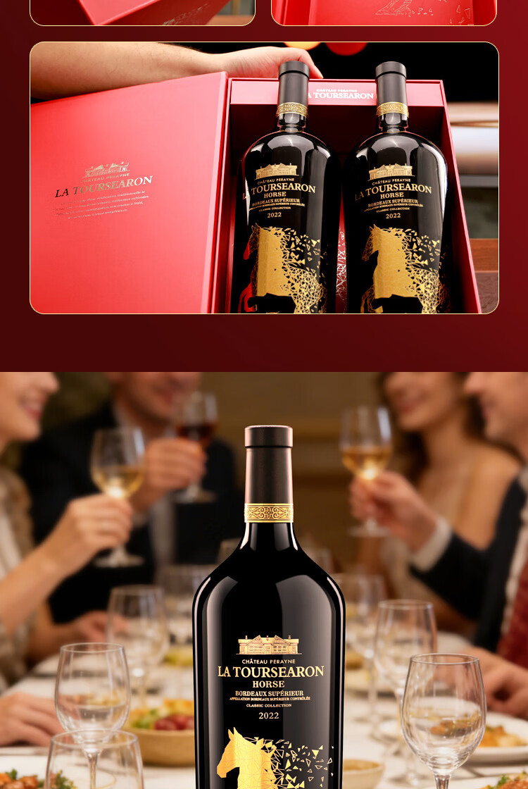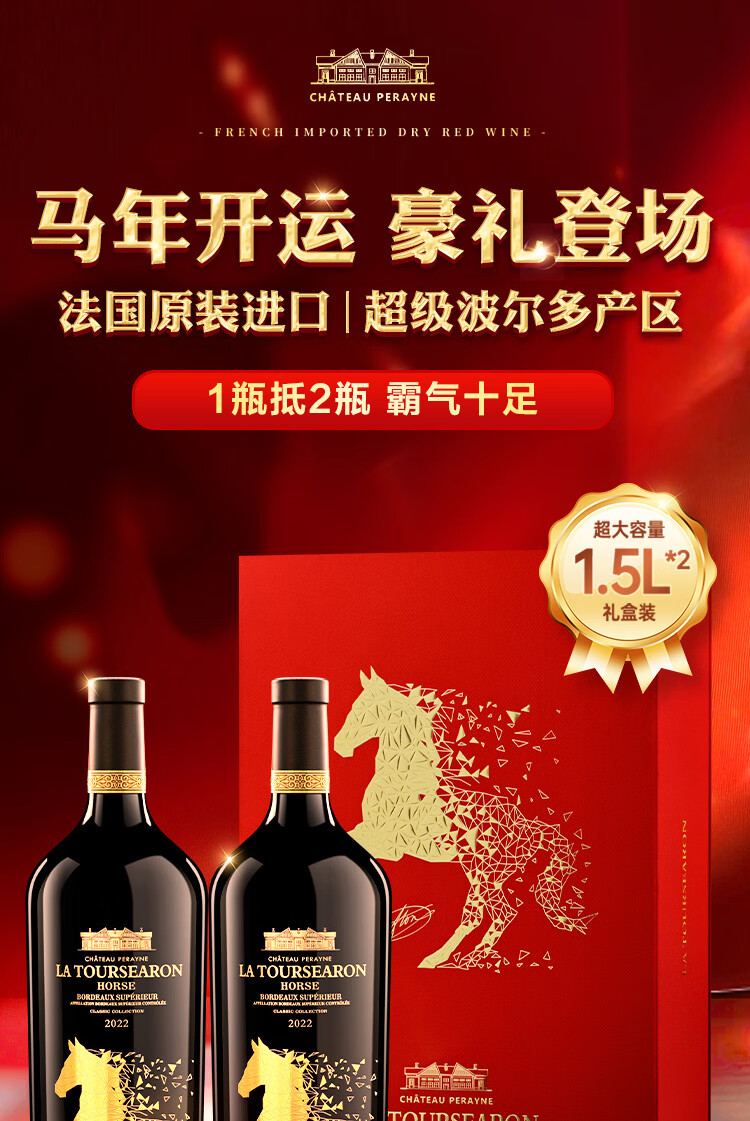 拉赛龙马年典藏超级波尔多干红葡萄酒 品鉴送礼 1.5L*2 双瓶礼盒装
