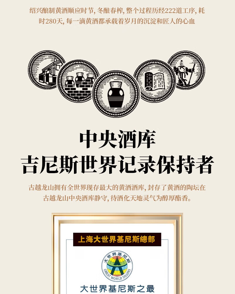 古越龙山绍兴黄酒十年 明月醉 中央库藏10年 无焦糖色 商务用酒礼盒装 明月醉 500mL 1瓶 单瓶装