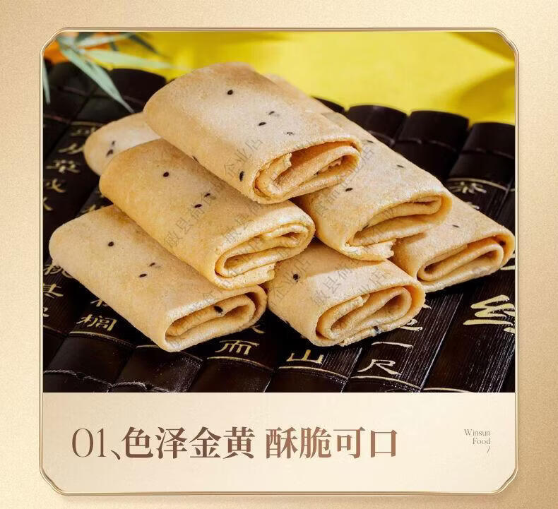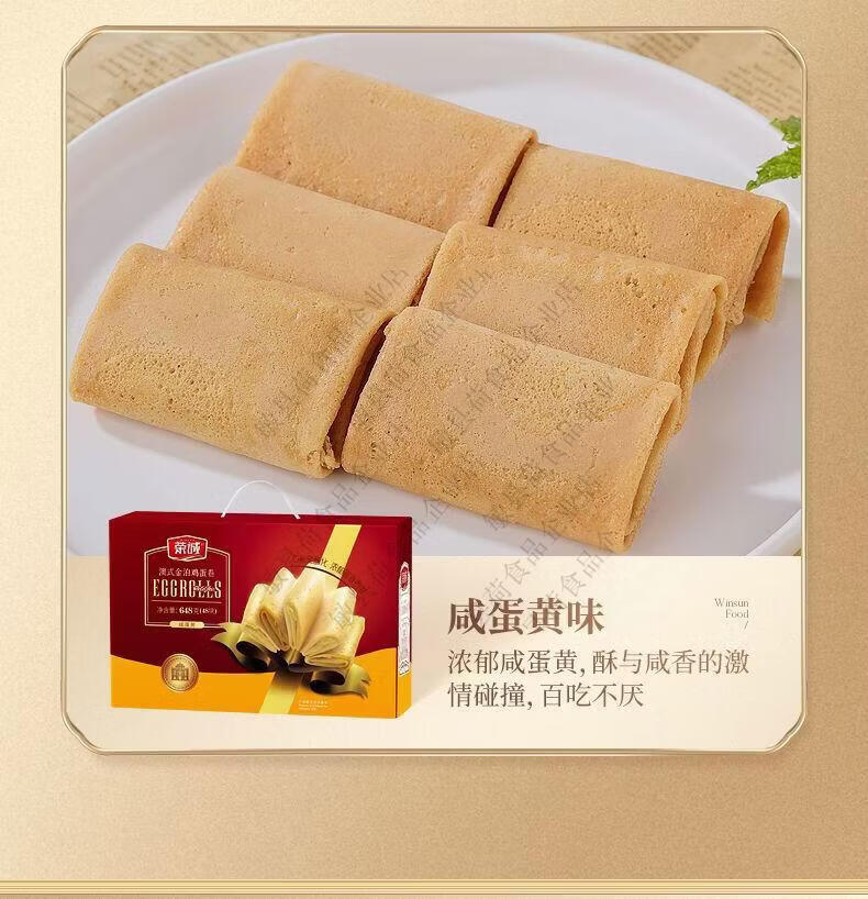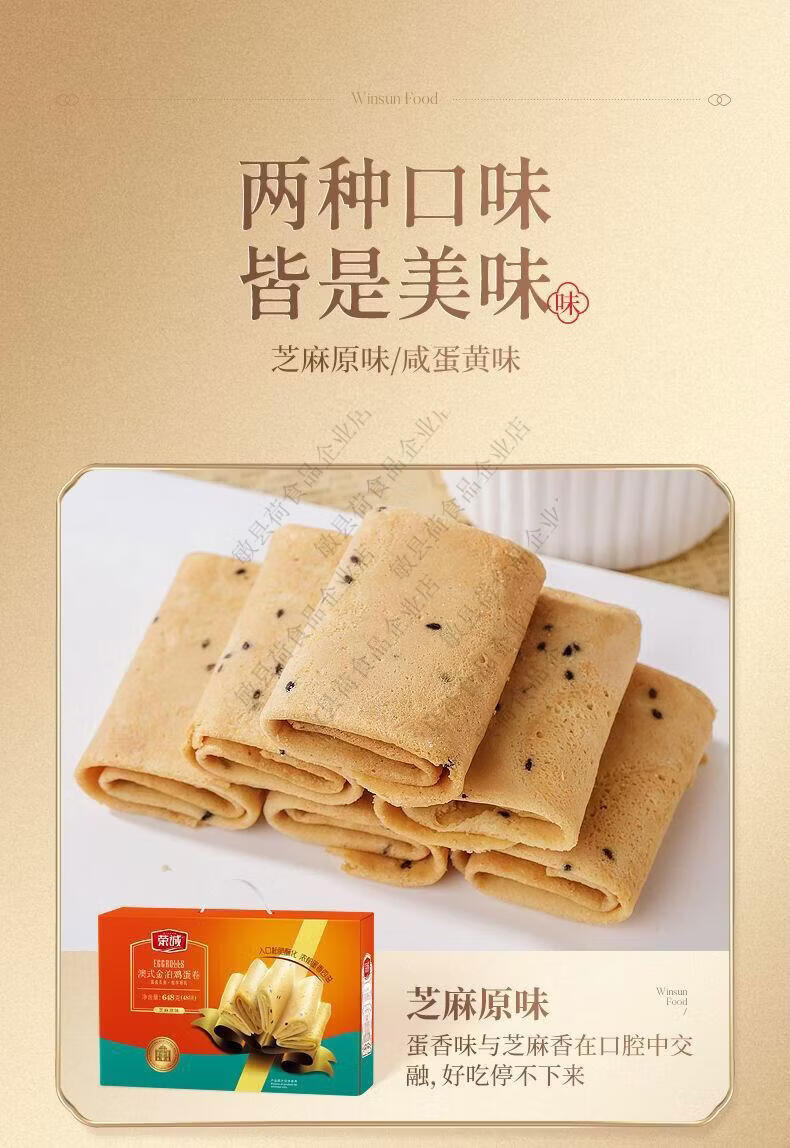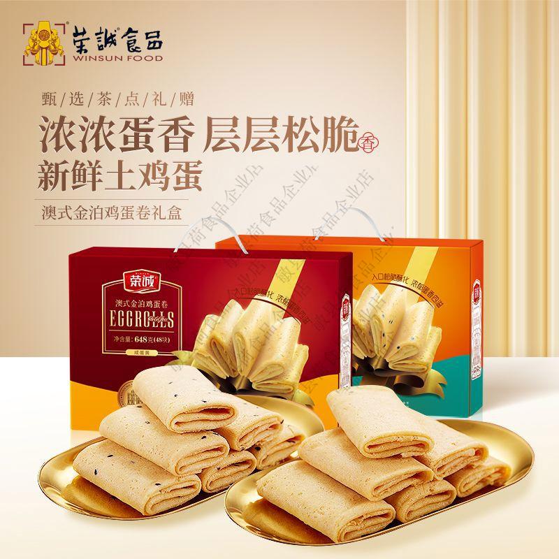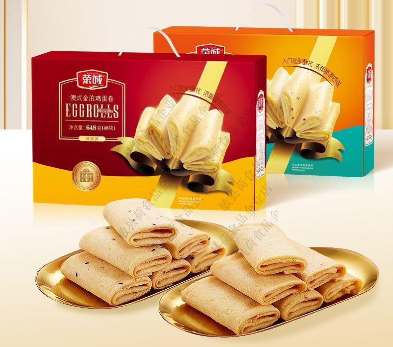 荣诚澳式鸡蛋卷648g零食饼干礼盒装老式芝麻凤凰卷酥饼整箱 648g咸蛋黄味礼盒装*1盒