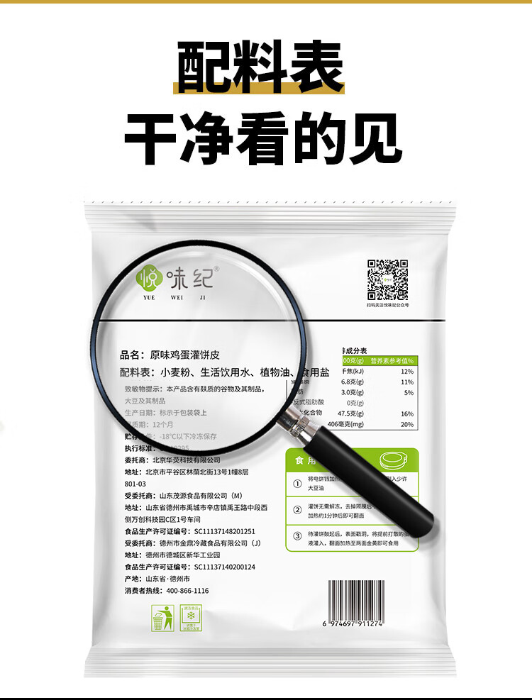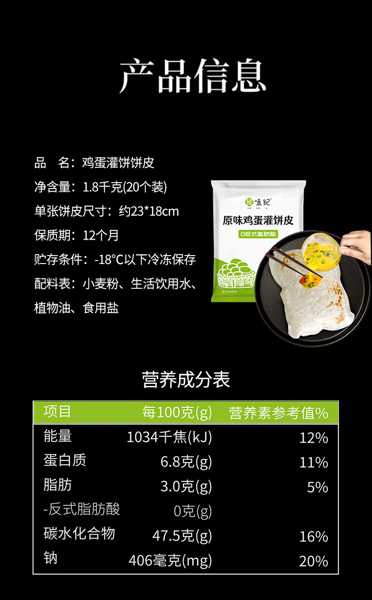 悦味纪 原味鸡蛋灌饼皮1.8kg 20张 手抓饼卷饼 早餐半成品 速食