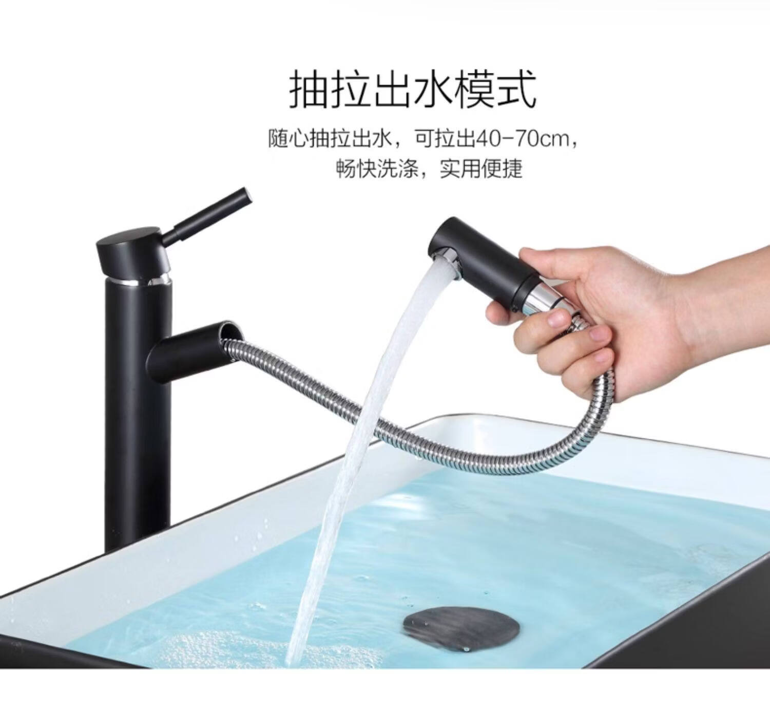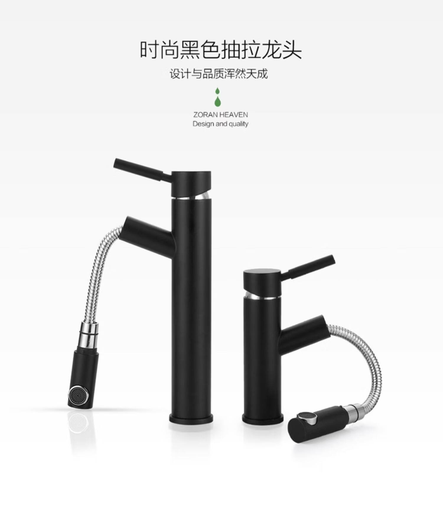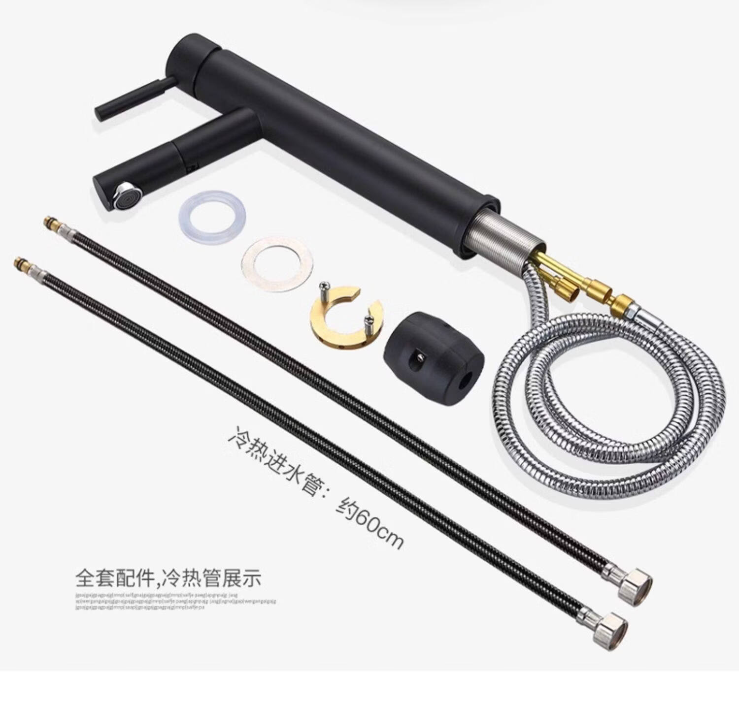 质享摩恩黑色抽拉式水龙头冷热北欧简约家用洗脸盆洗手盆龙头8429-8430 8429龙头+冷热进水管