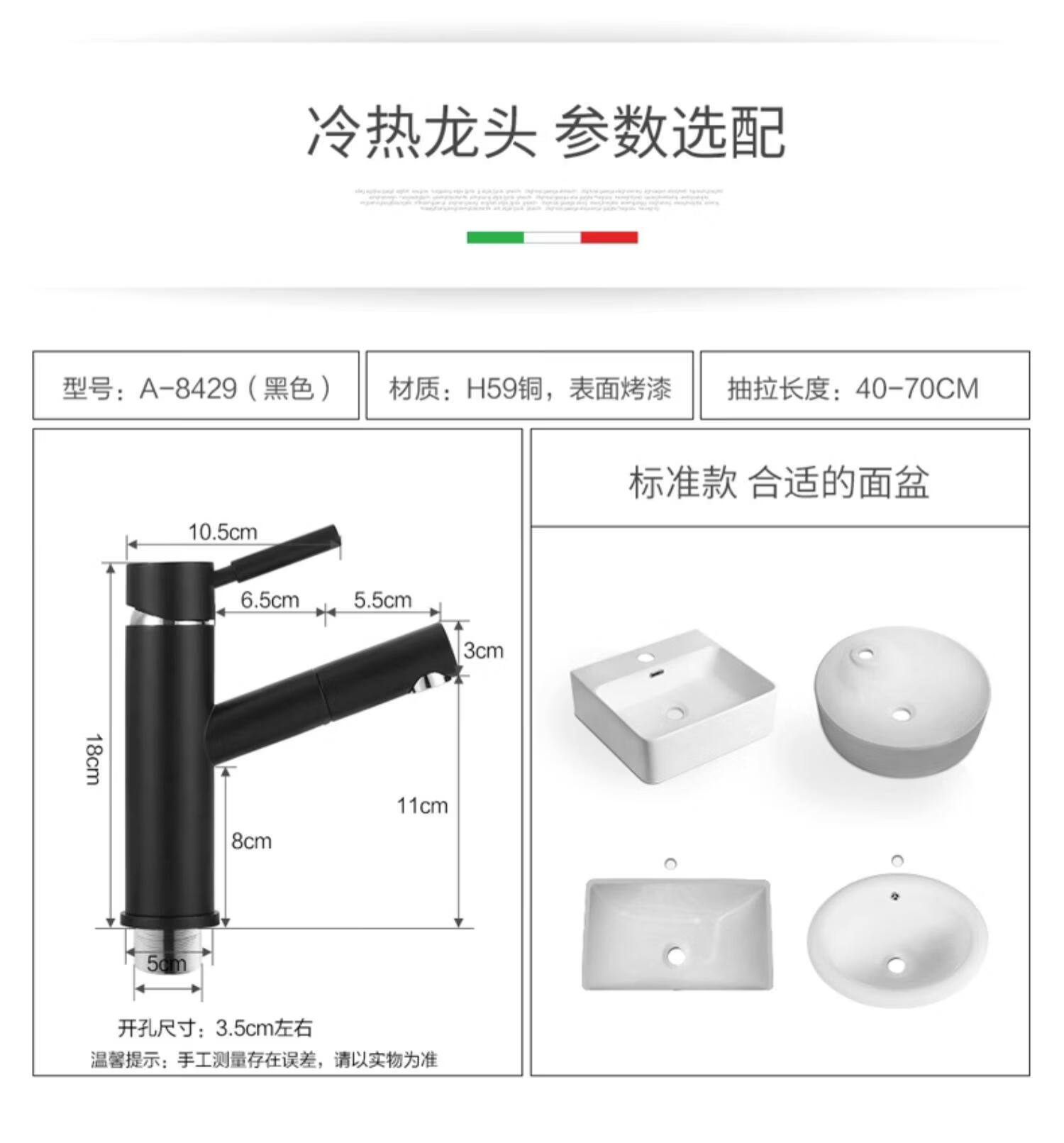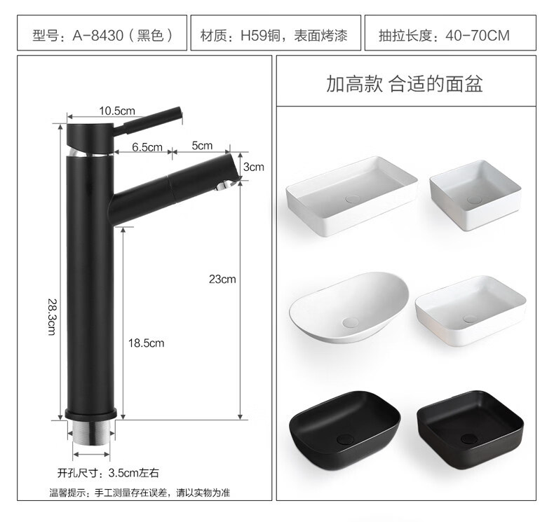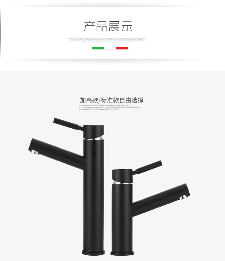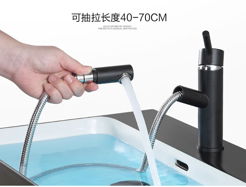 质享摩恩黑色抽拉式水龙头冷热北欧简约家用洗脸盆洗手盆龙头8429-8430 8429龙头+冷热进水管
