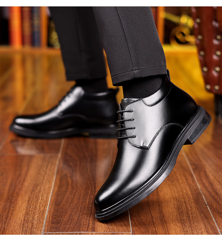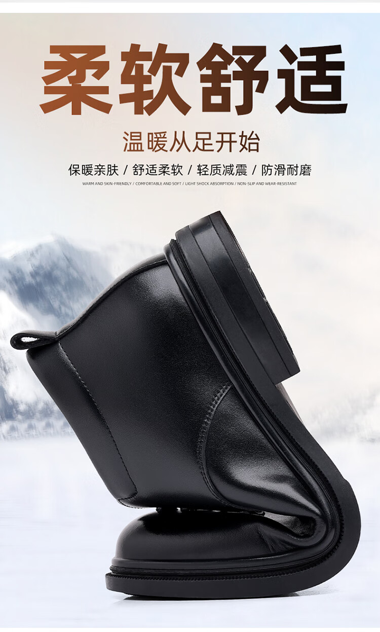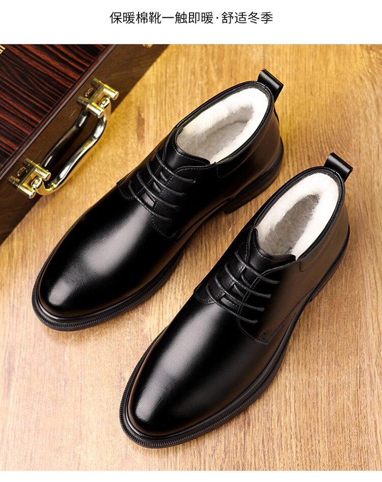 稻草人(MEXICAN)新款棉鞋男士冬季保暖加绒真皮羊毛棉皮鞋男款中老年防滑爸爸鞋 SJ-M1031-2黑色棉鞋 41
