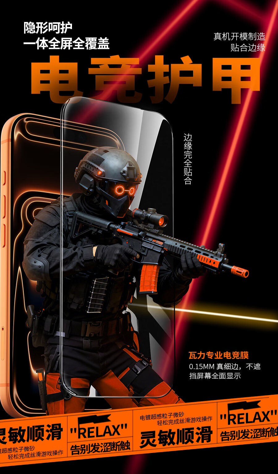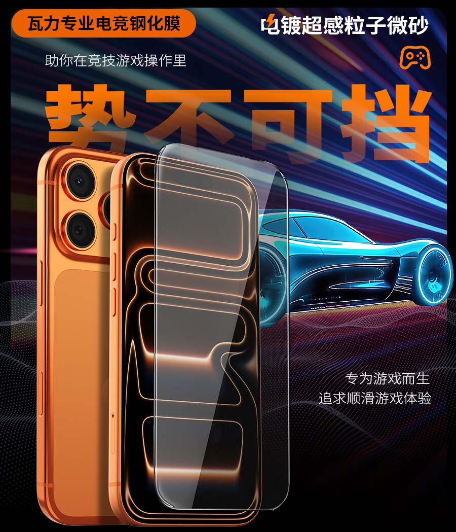 瓦力【专业级电竞钢化膜】适用苹果17pro钢化膜全胶iphone17Pro手机磨砂膜防摔全覆盖增透游戏抗指纹