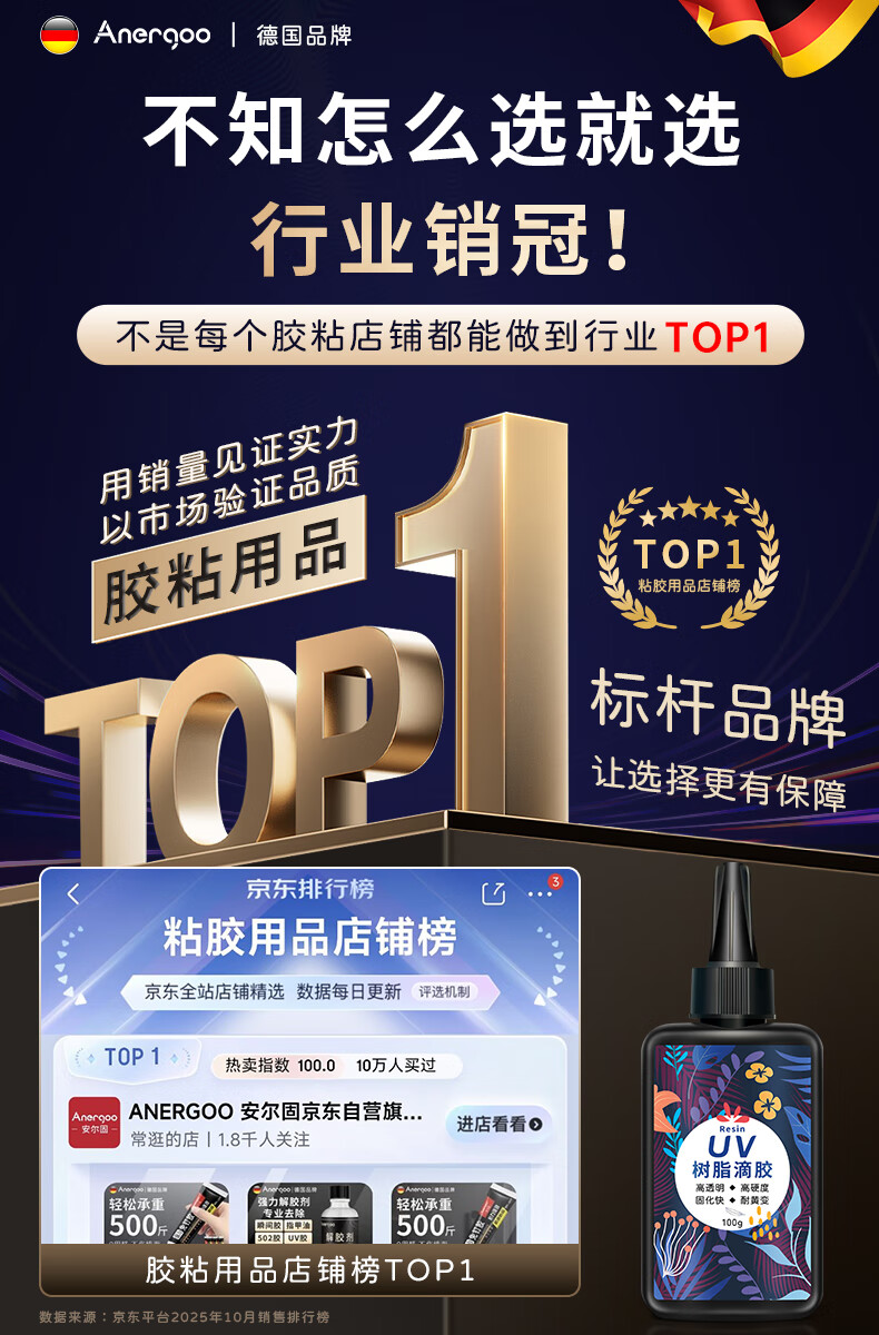 ANERGOO 安尔固uv滴胶高透明紫外线光固化手工diy流麻水晶封层制作材料热缩片手机壳干花标本树脂硬胶耐黄免配比