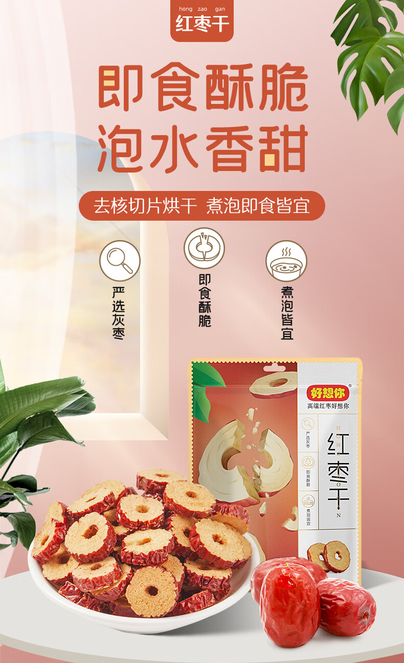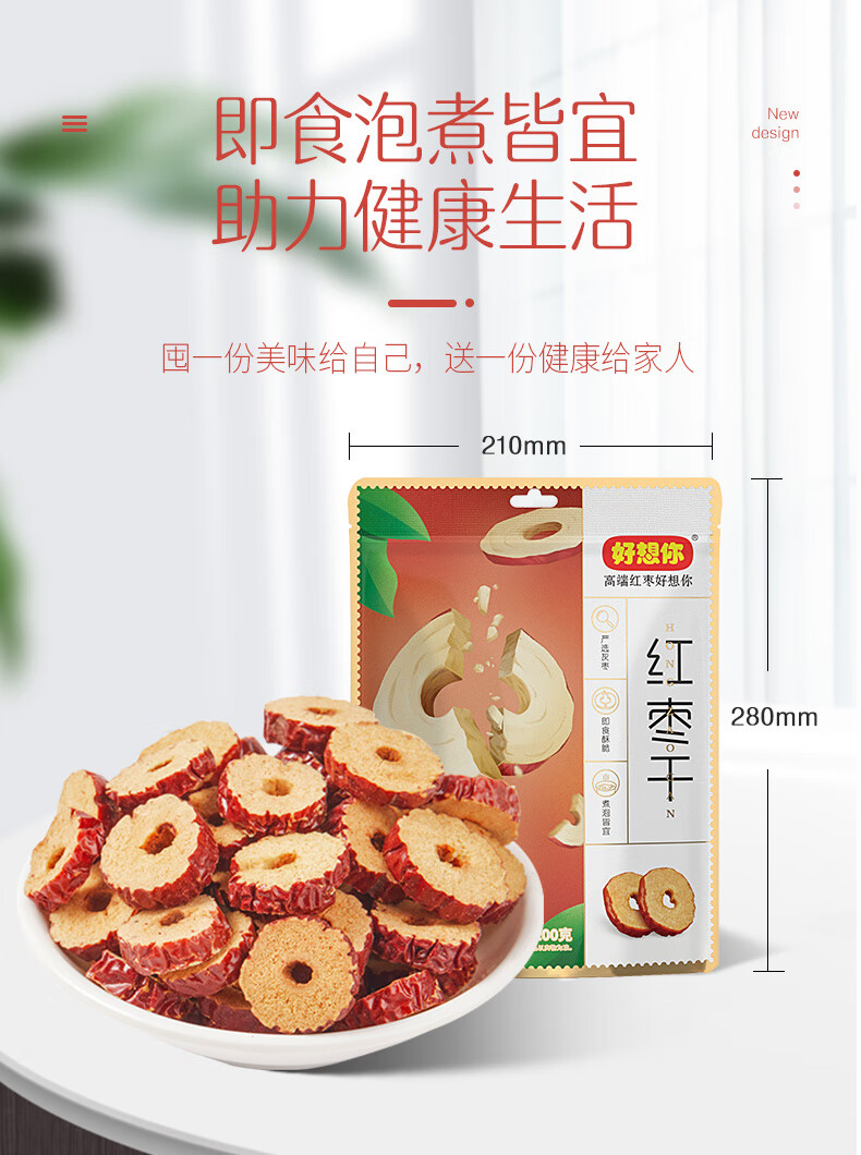 好想你 红枣干200g/袋 蜜饯果干红枣脆枣红枣圈脆片办公室零食