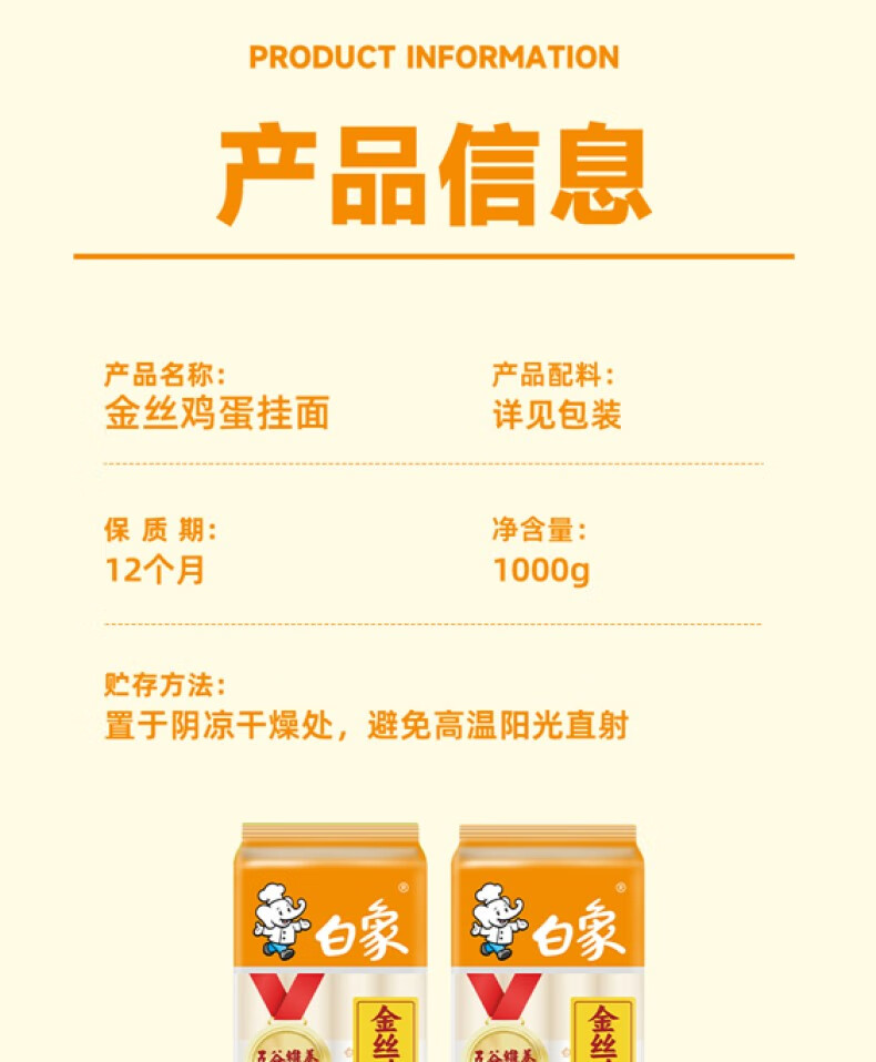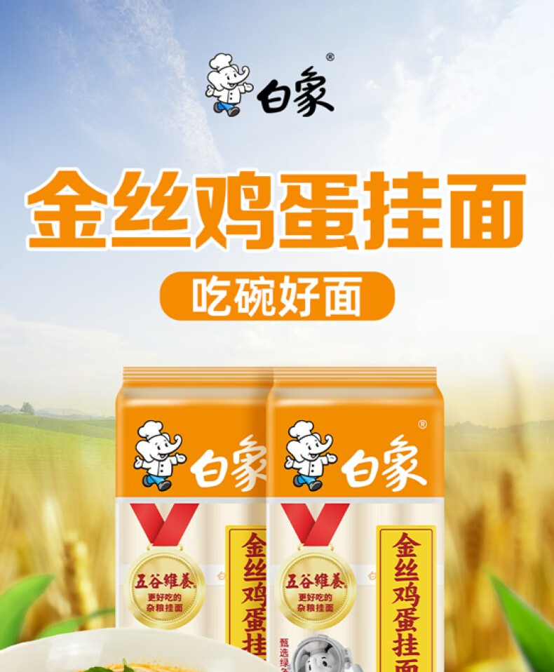 白象五谷维养金丝鸡蛋面 爽滑早晚餐面条非油炸速食挂面结束装1kg*3包