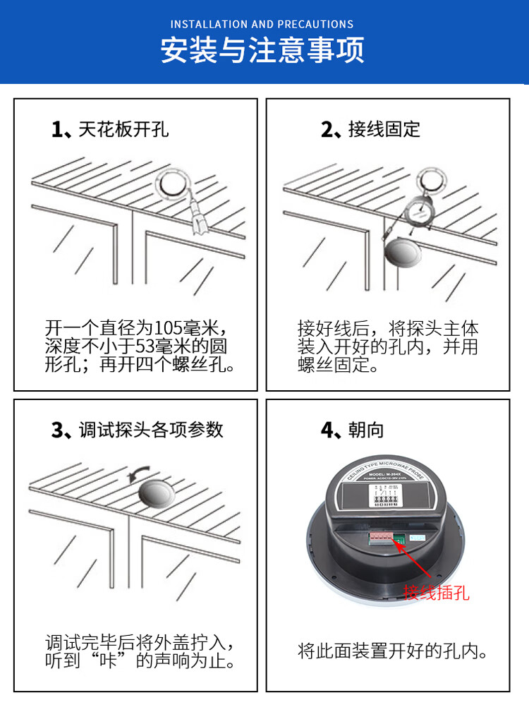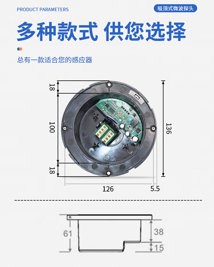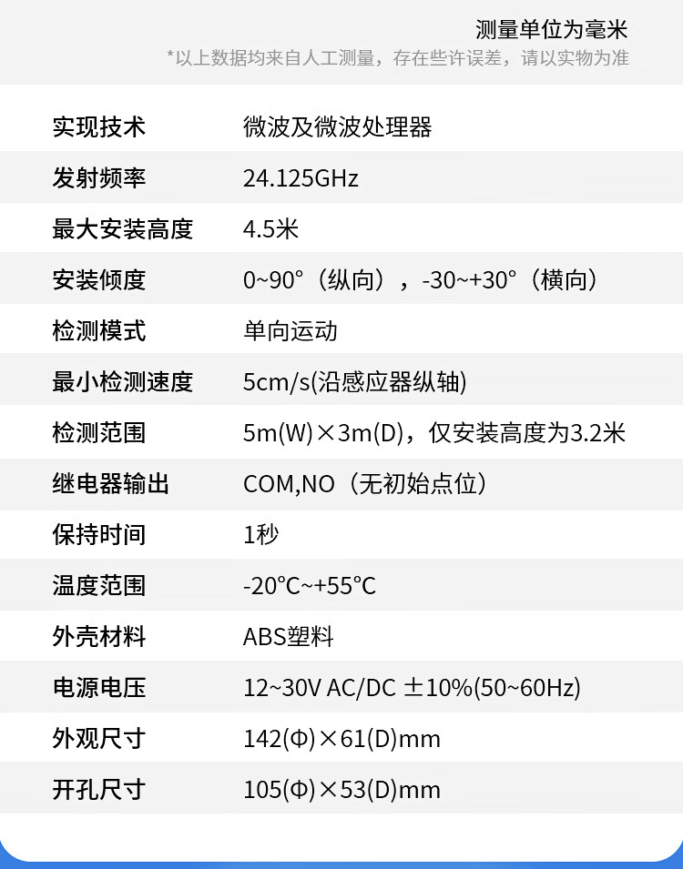 星柏龙微波感应器感应门感应器吸顶式微波探头通用玻璃门传感器M-204X 204X吸顶式微波探头