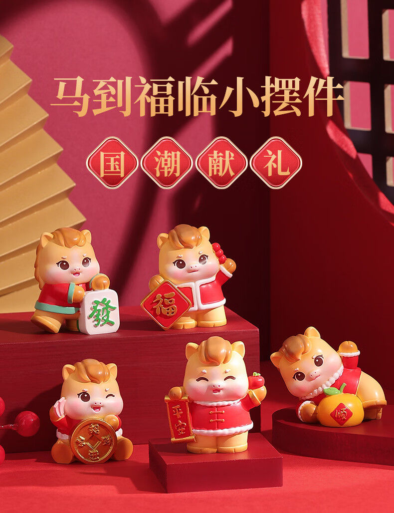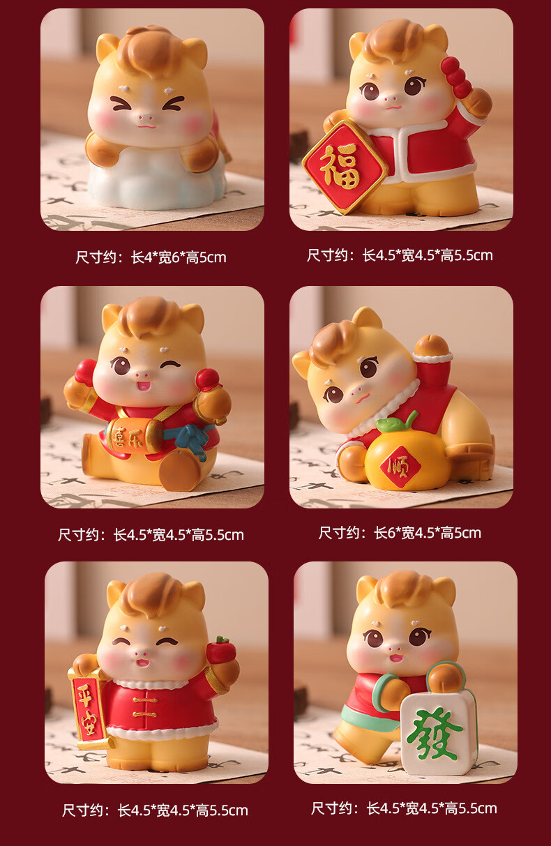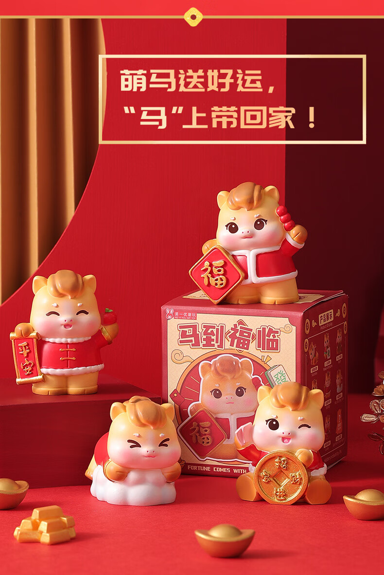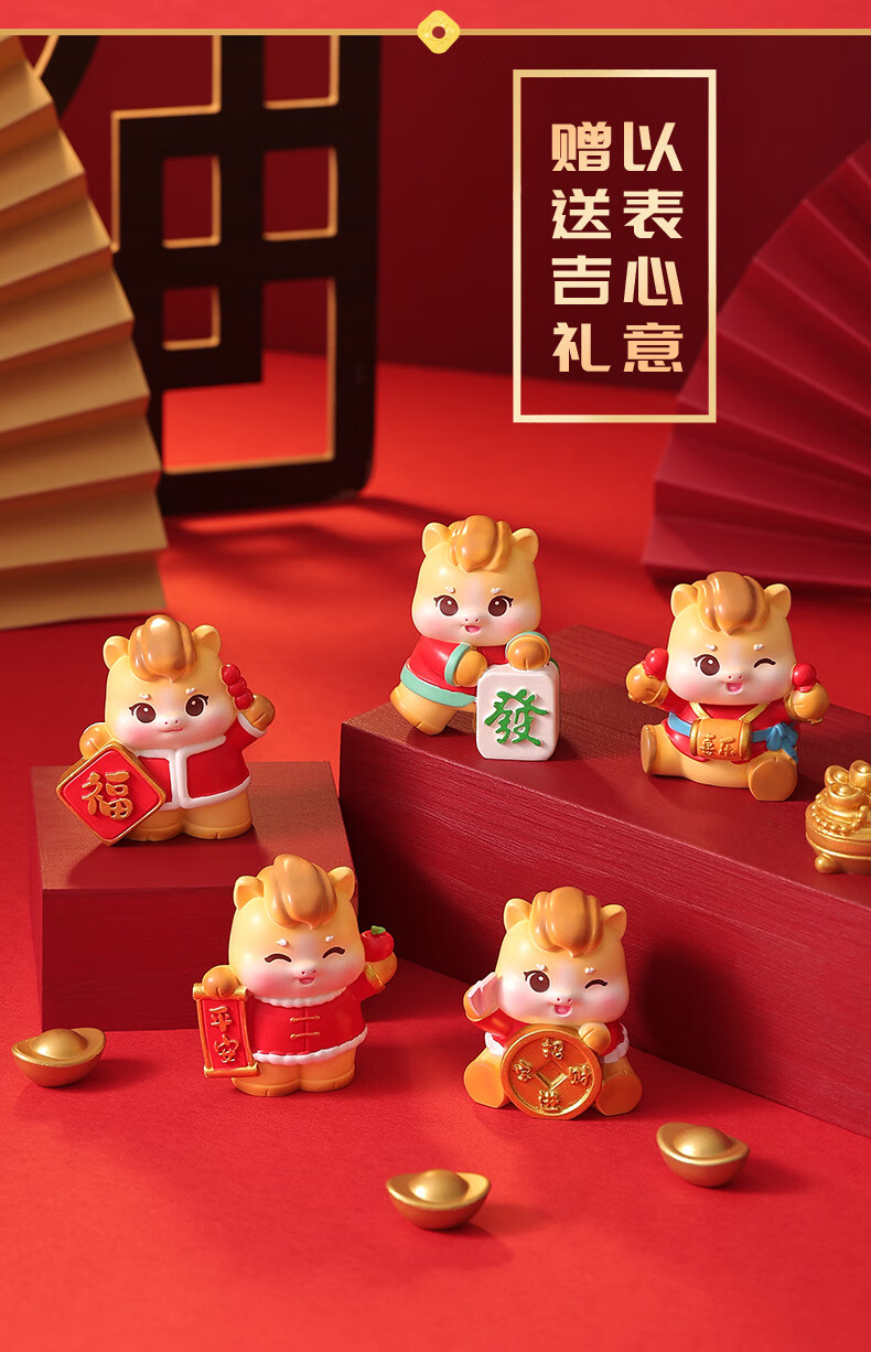 兰比嘟2026马年吉祥物盲盒摆件小马公仔喜庆新年礼物桌面装饰乔迁伴手礼 马上财运转赚盲盒【端盒6个不重复】