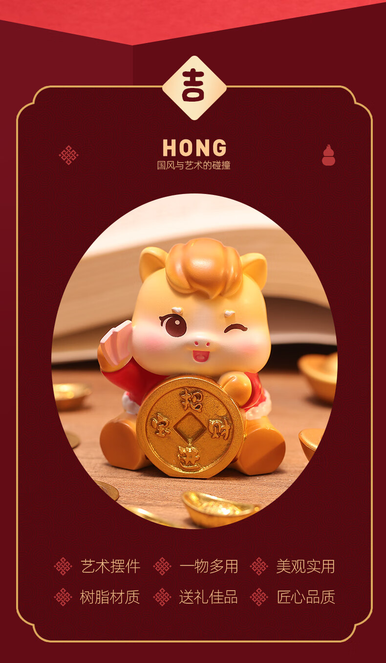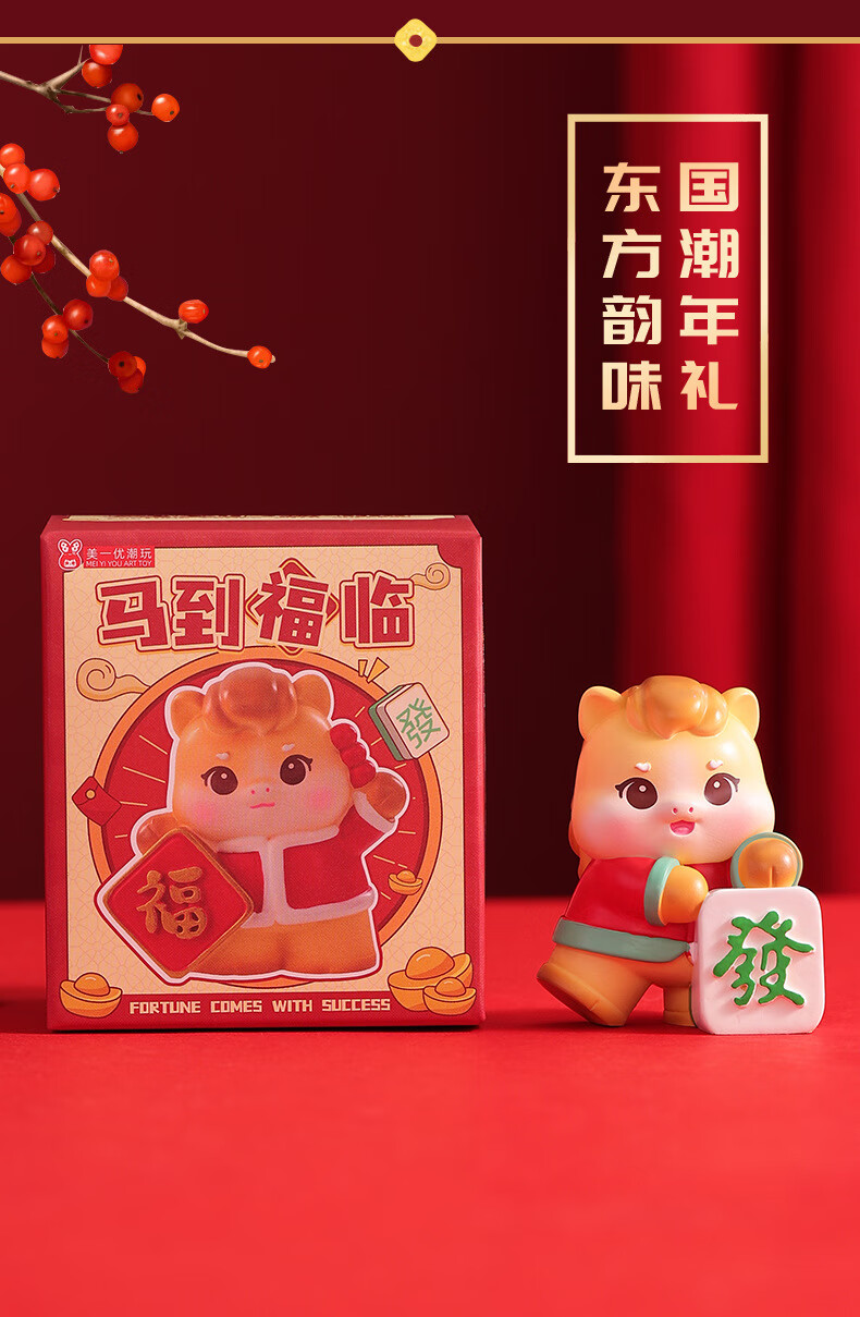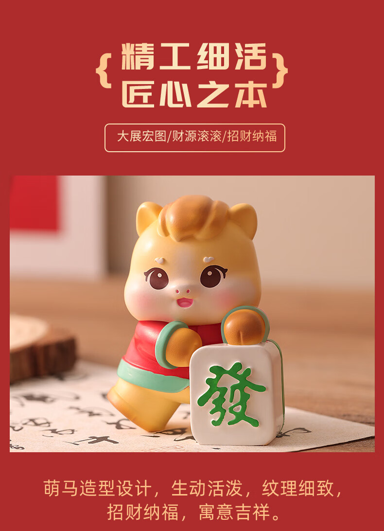 兰比嘟国潮马年吉祥物盲盒桌面摆件手办公仔办公工位招财装饰品新年礼物 马到福临盲盒【端盒8个】