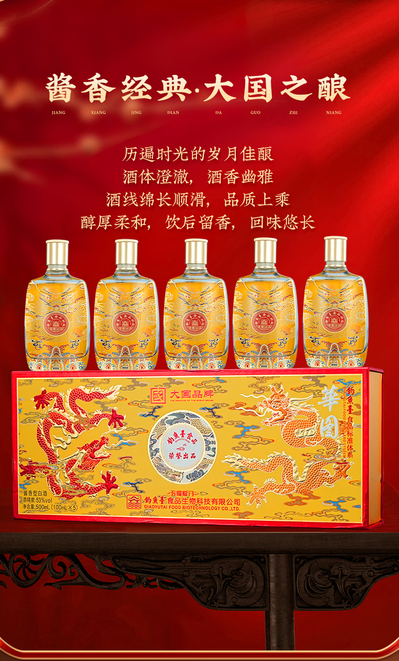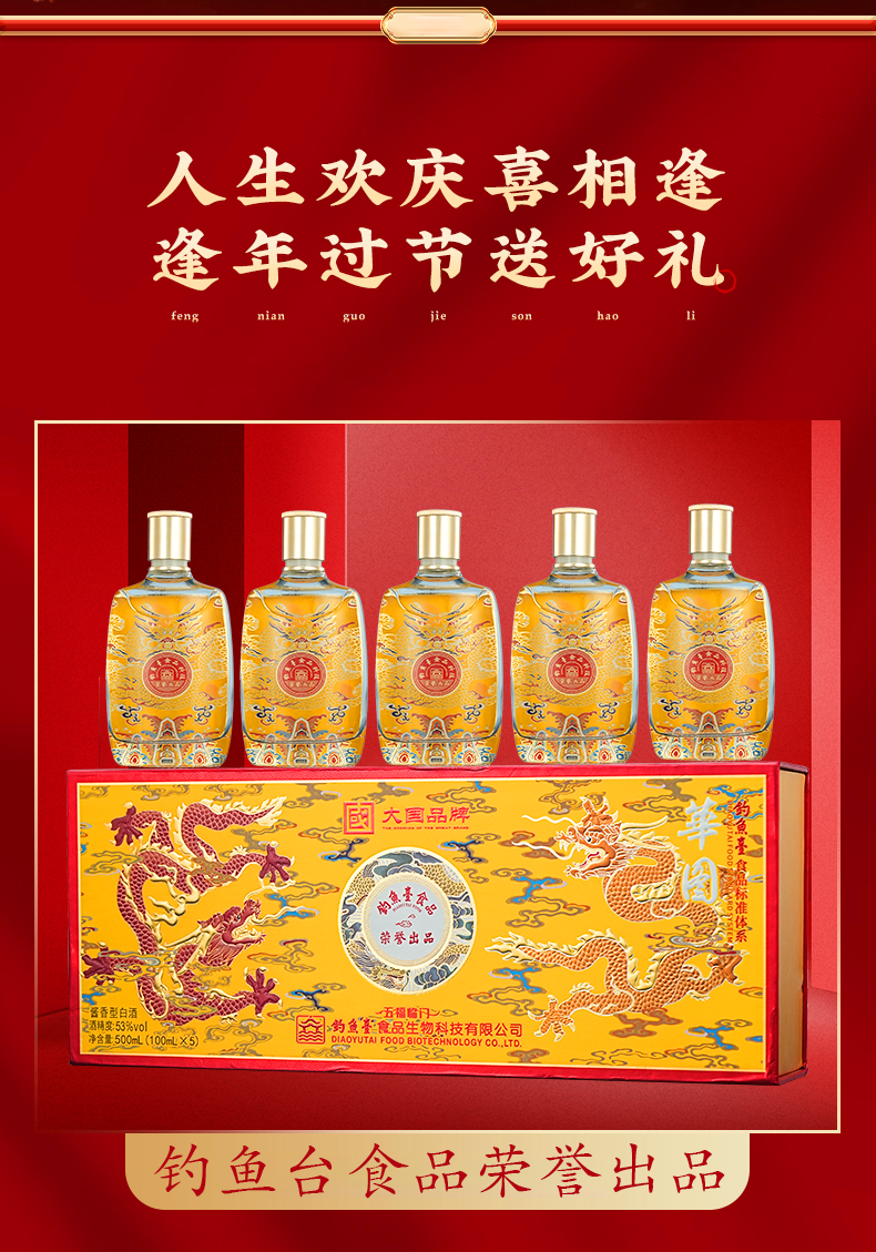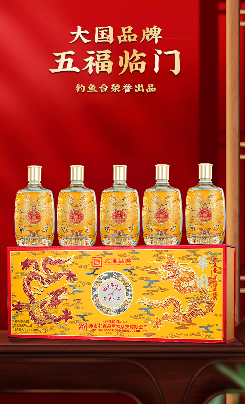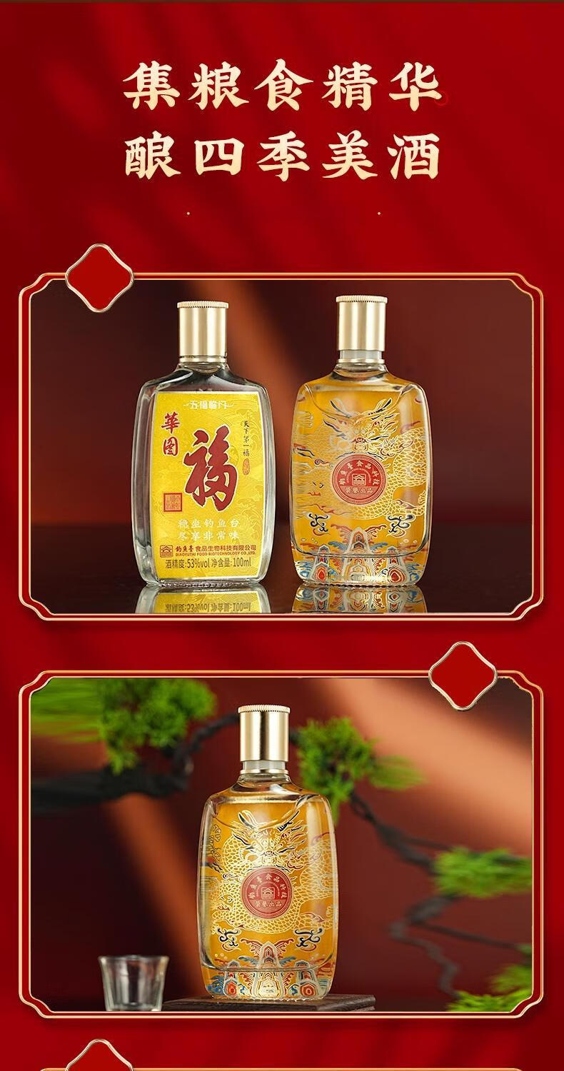 華图钓鱼台陈酿30 臻传酱香型 礼盒装 53度 100mL 5瓶 华图五福临门一盒