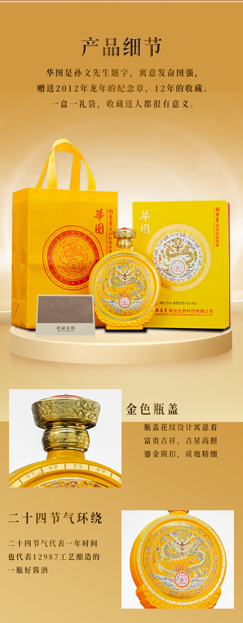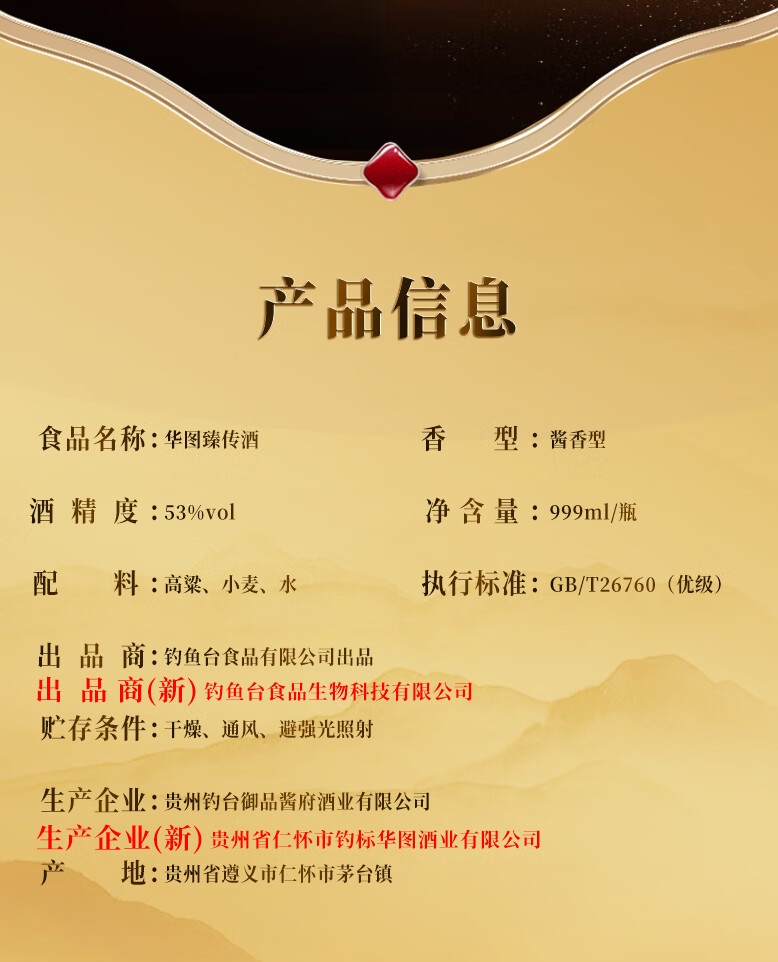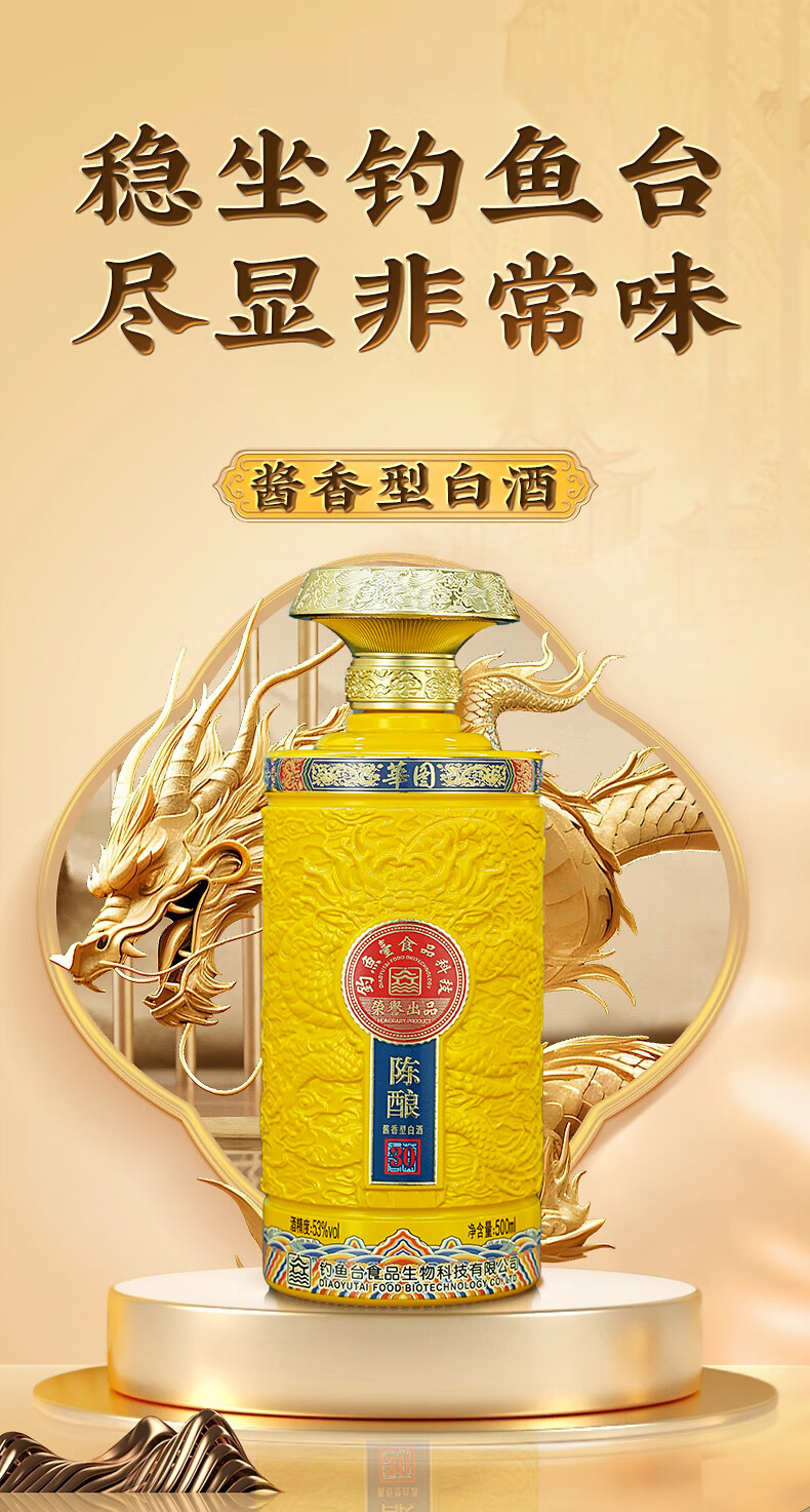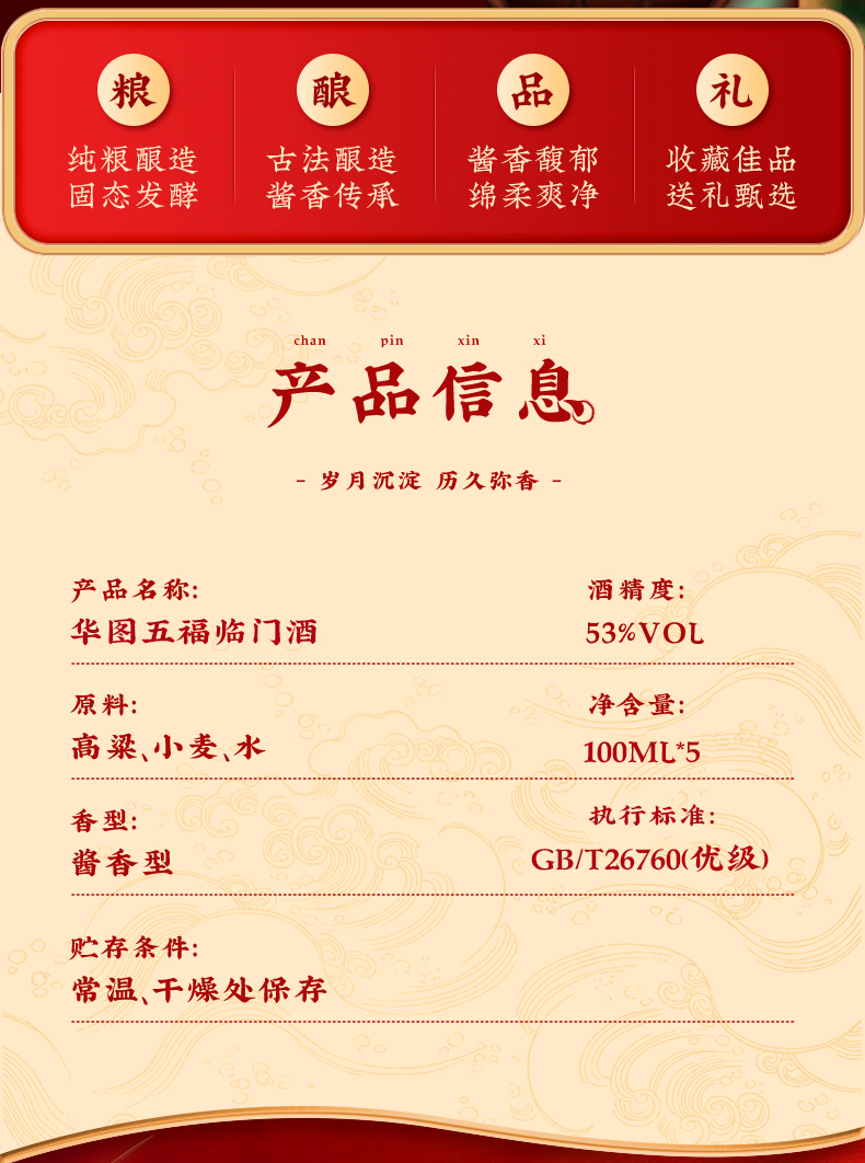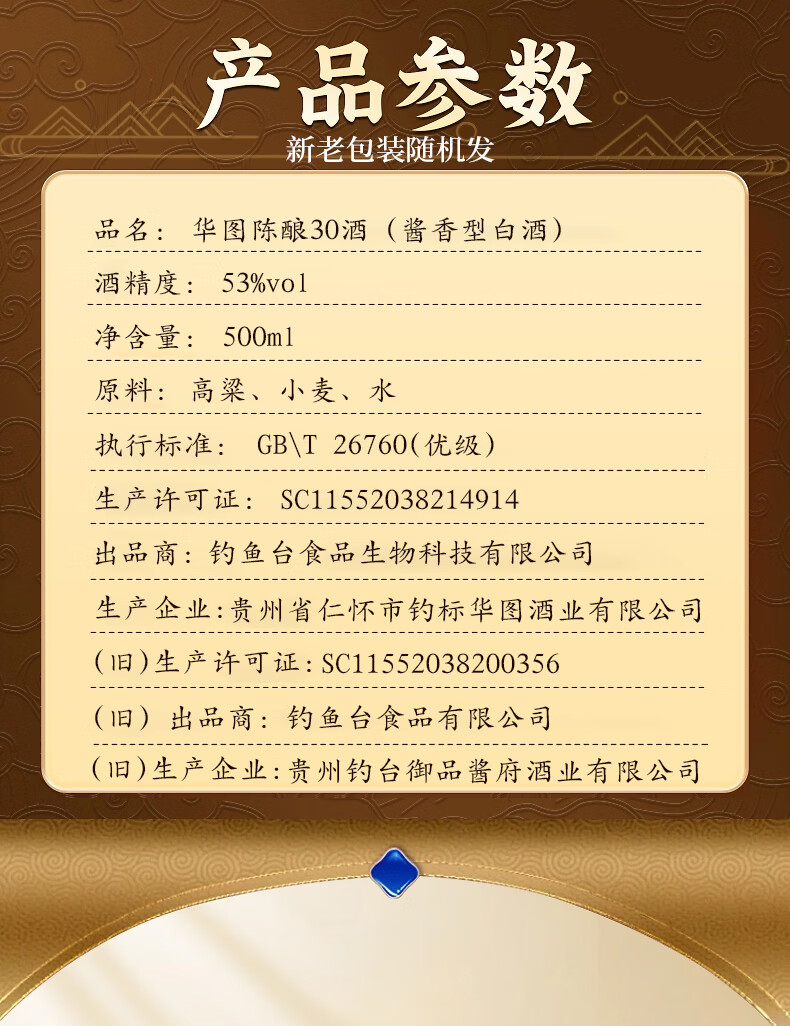 華图钓鱼台陈酿30 臻传酱香型 礼盒装 53度 100mL 5瓶 华图五福临门一盒