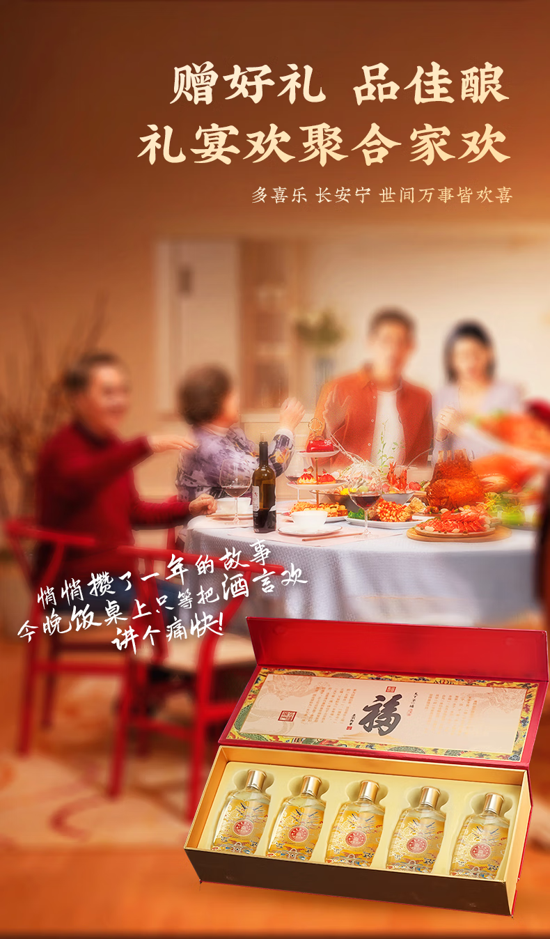 五粮浓香五粮液股份出品 官方授权 52度优级 浓香型白酒 喜福盛世 52度 500mL 2瓶 大聚鸿财双支装