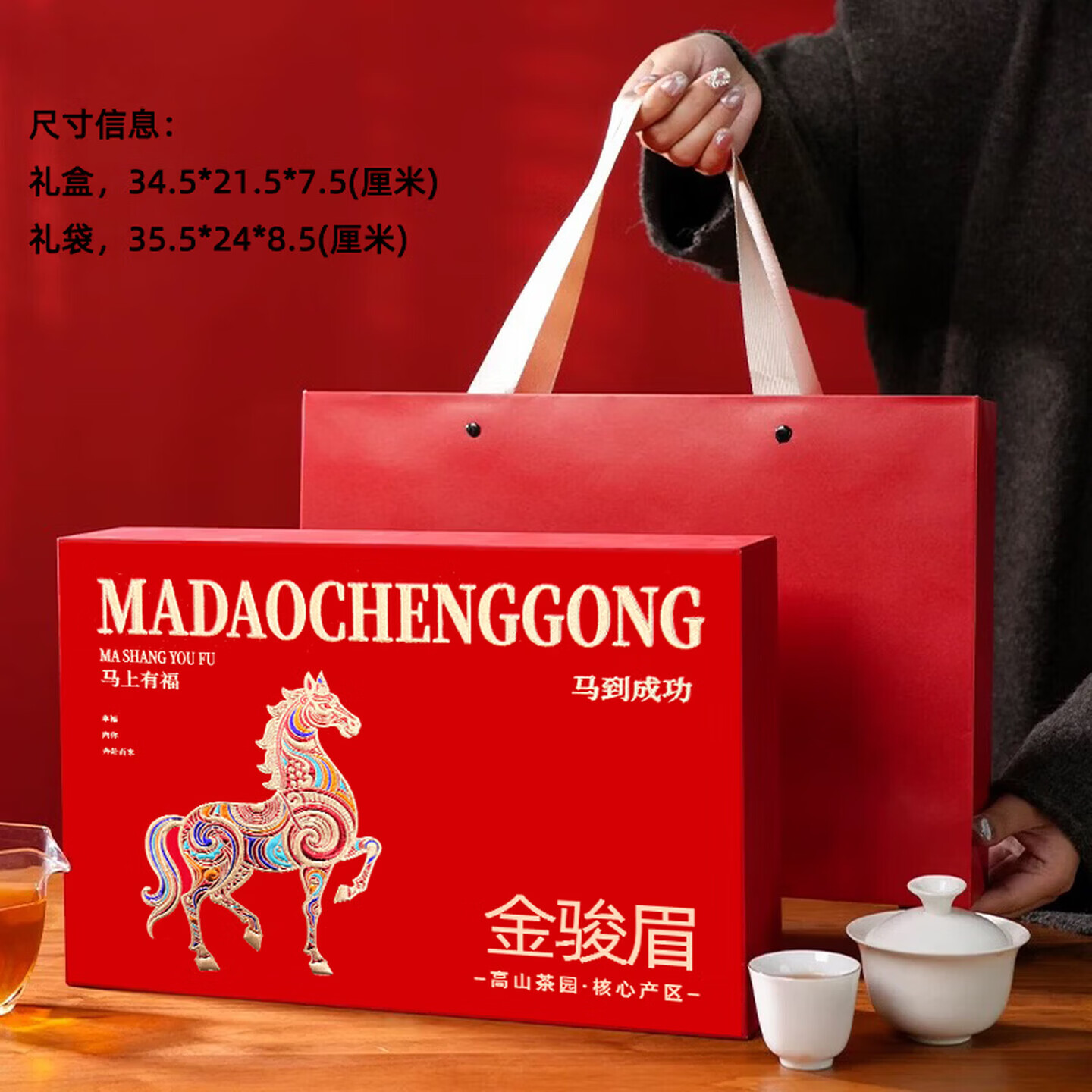 立香园年货送礼金骏眉红茶福建武夷原产蜜香型礼盒装铁盒罐装送长辈茶叶 马年新款礼盒250克摆泡独立包装