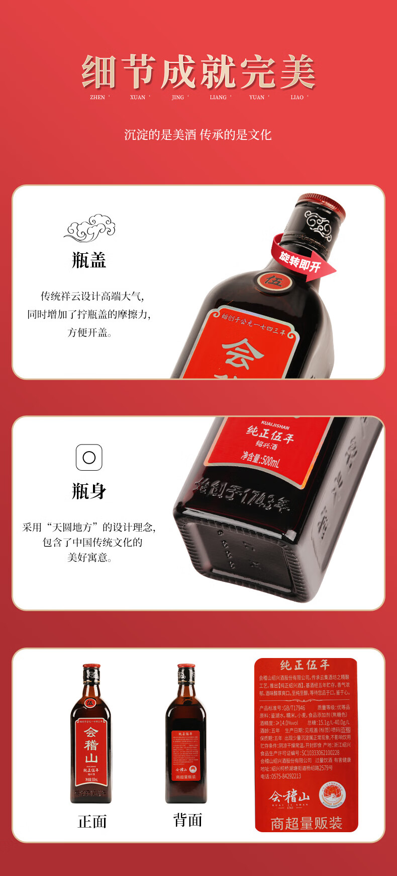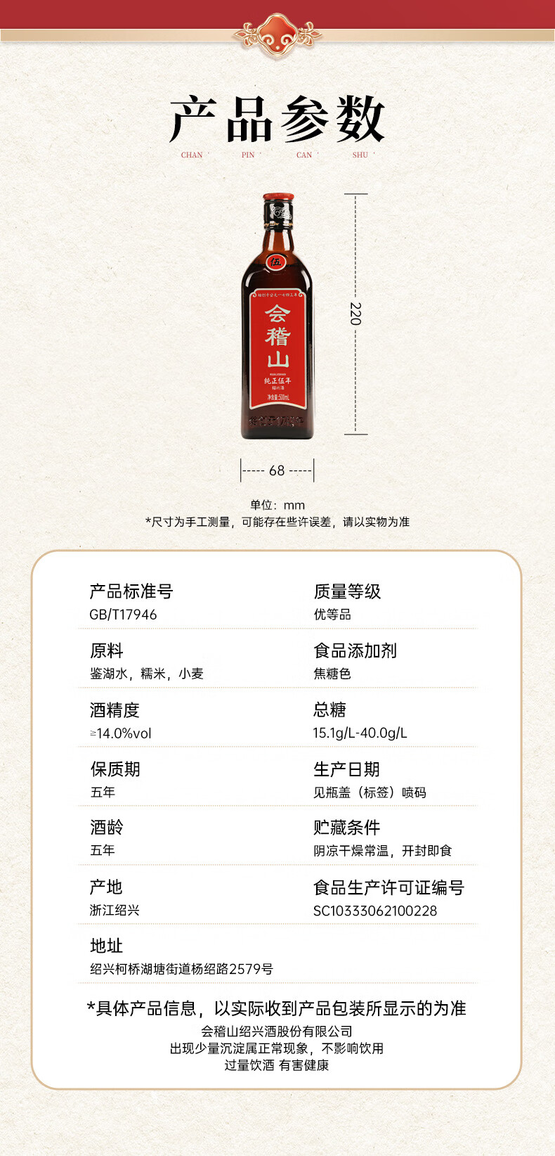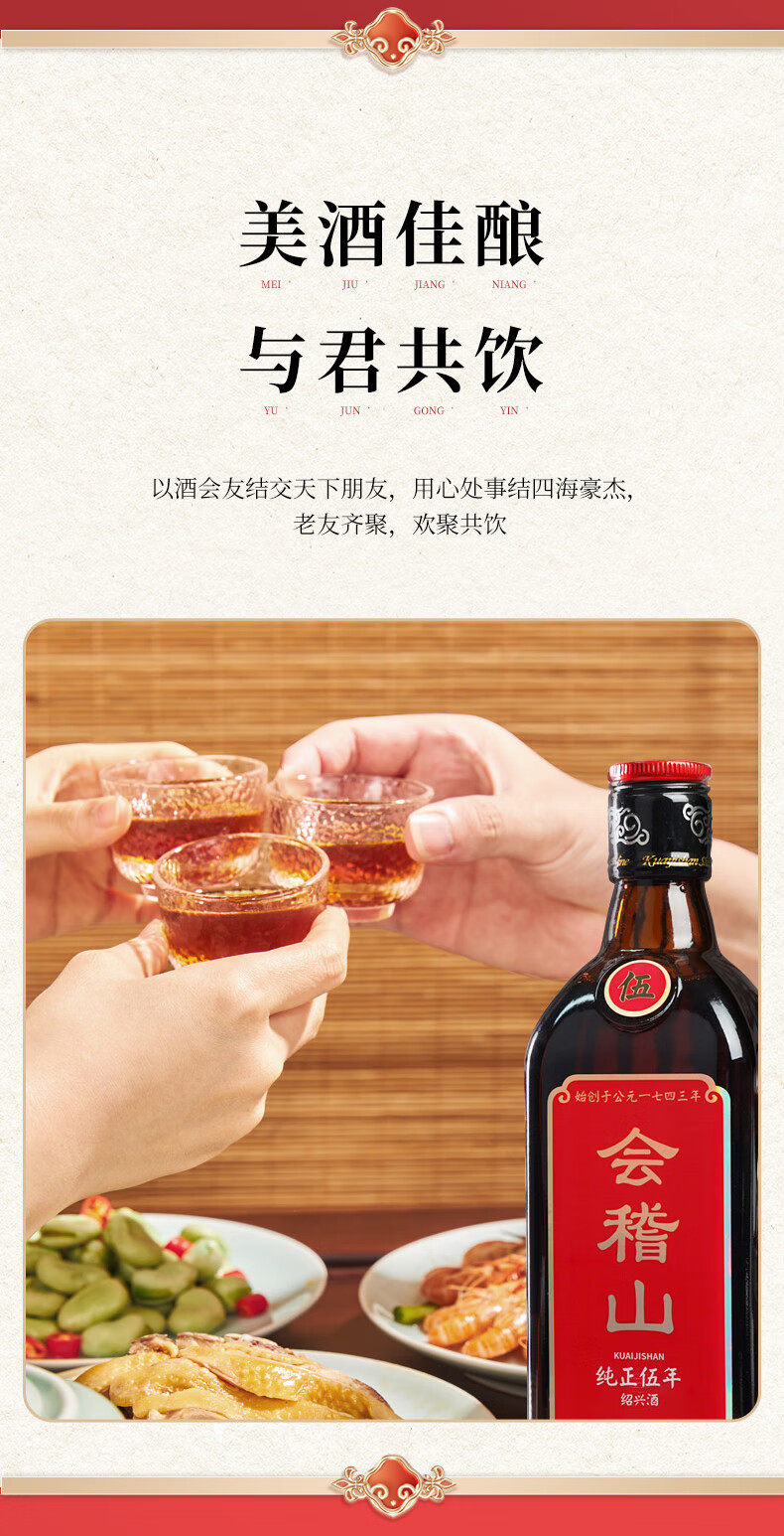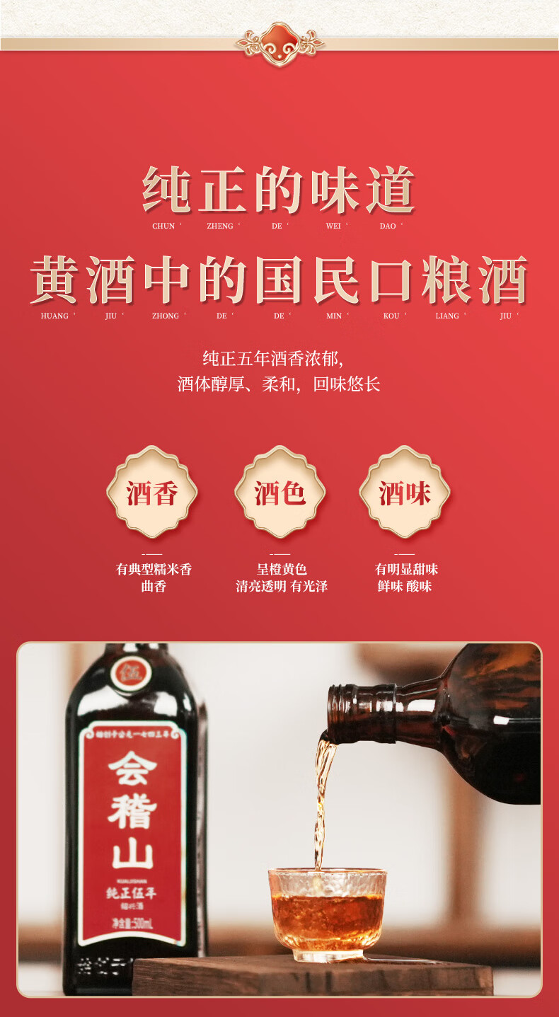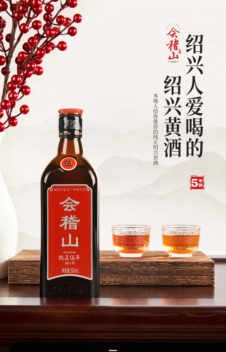 会稽山 纯正五年 半干型 绍兴黄酒 500ml 单瓶装 花雕