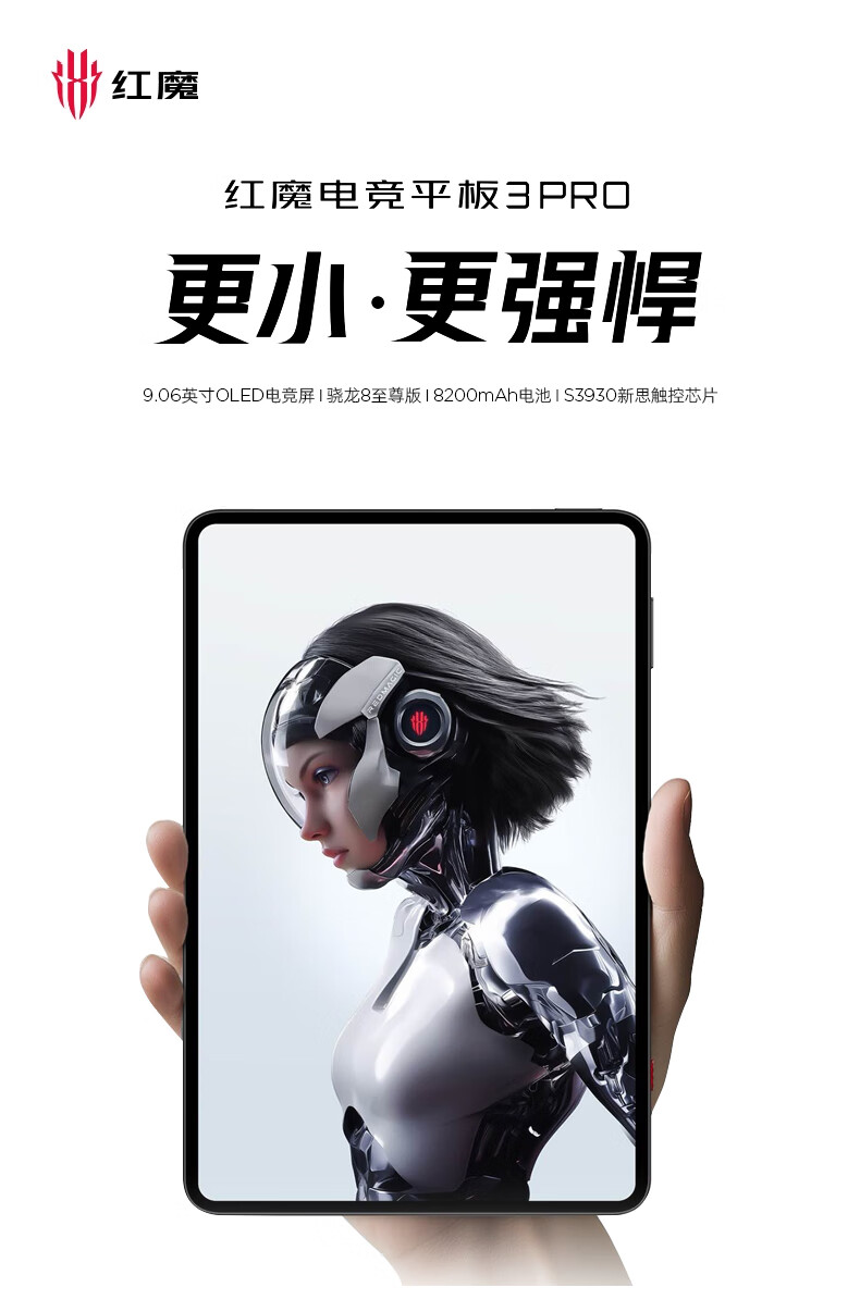 努比亚红魔电竞平板3Pro 9.06英寸OLED电竞屏 骁龙8至尊版 8200mAh电池 国家补贴游戏小平板12GB+256GB暗夜版