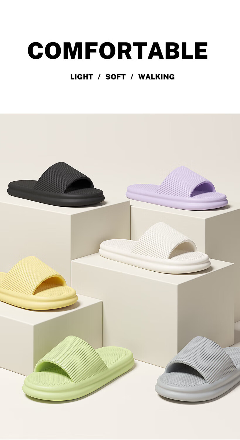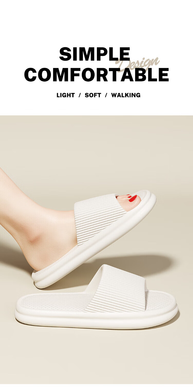FZT 踩屎感凉拖鞋男女士室内外潮流舒适EVA软底新款情侣防滑一字拖 米白【B款】 40-41 正码(内长250MM)