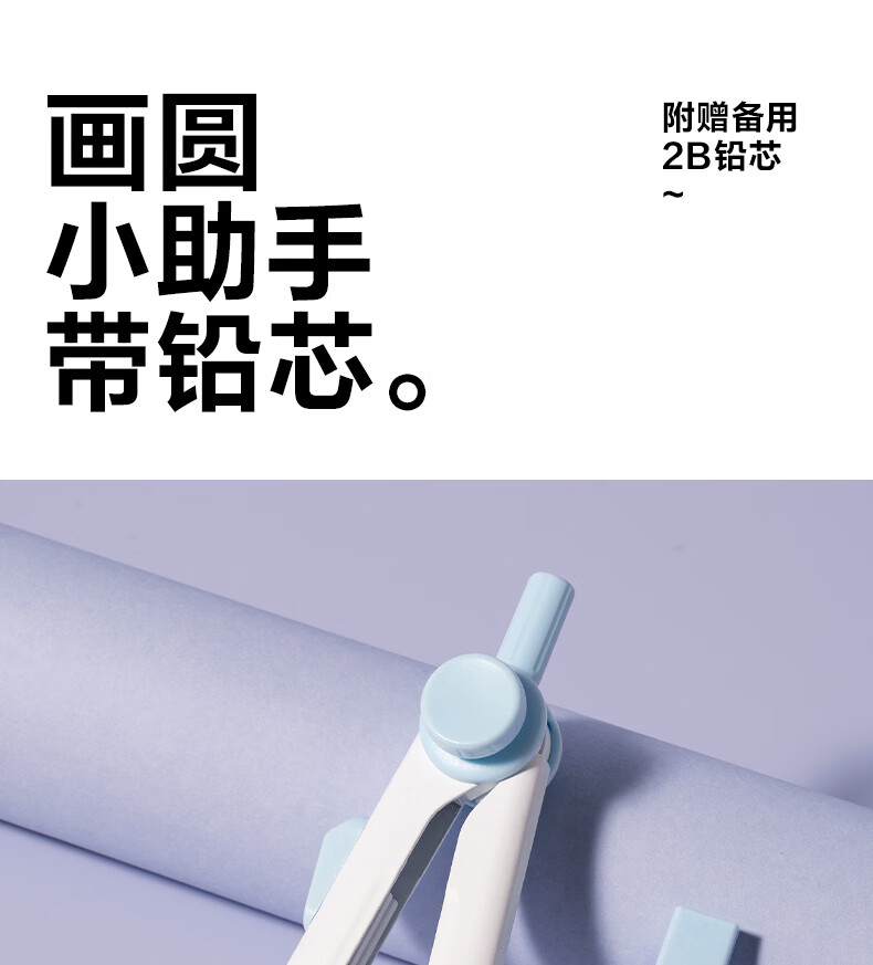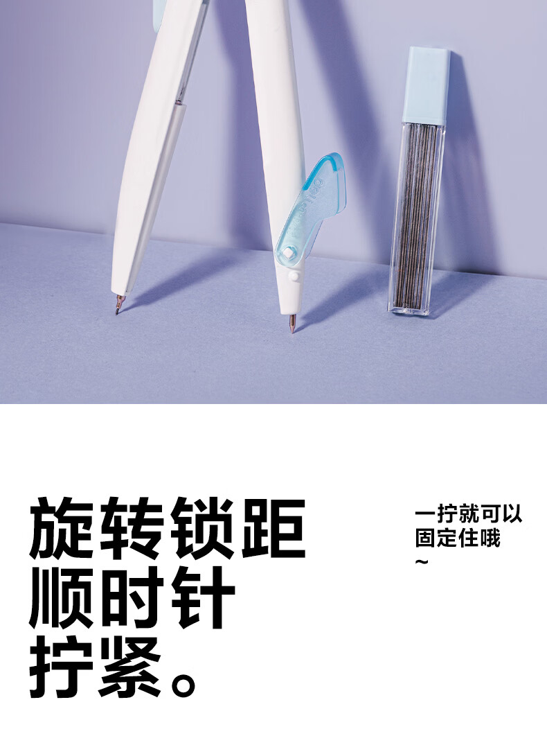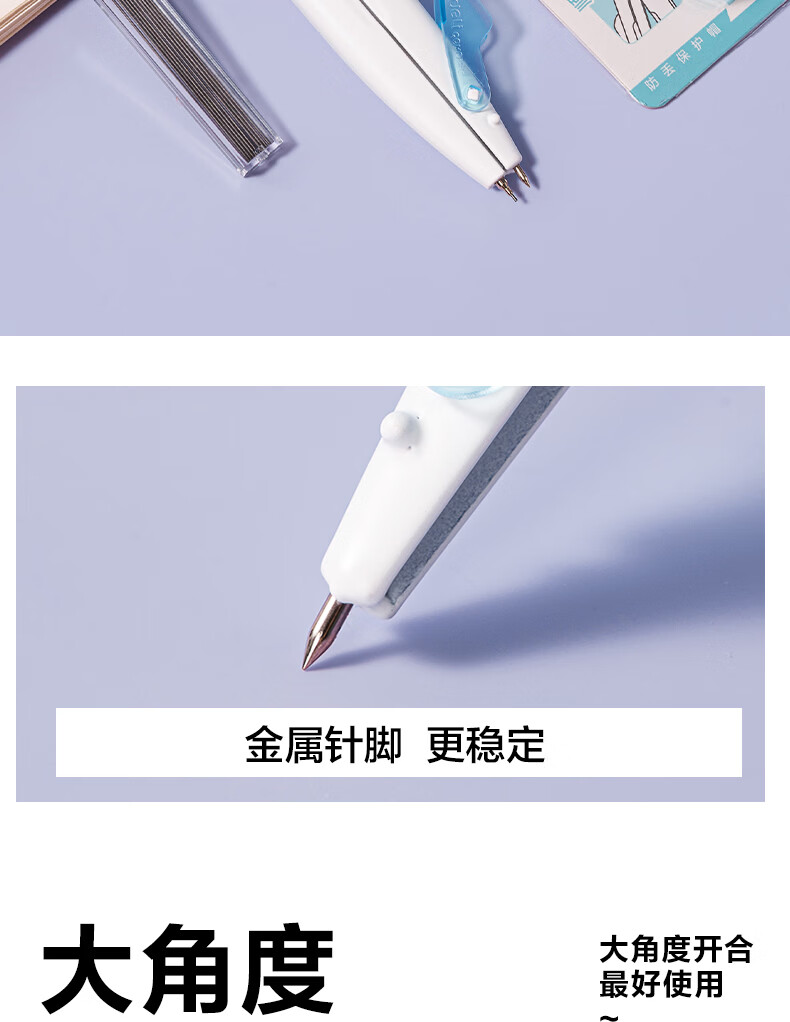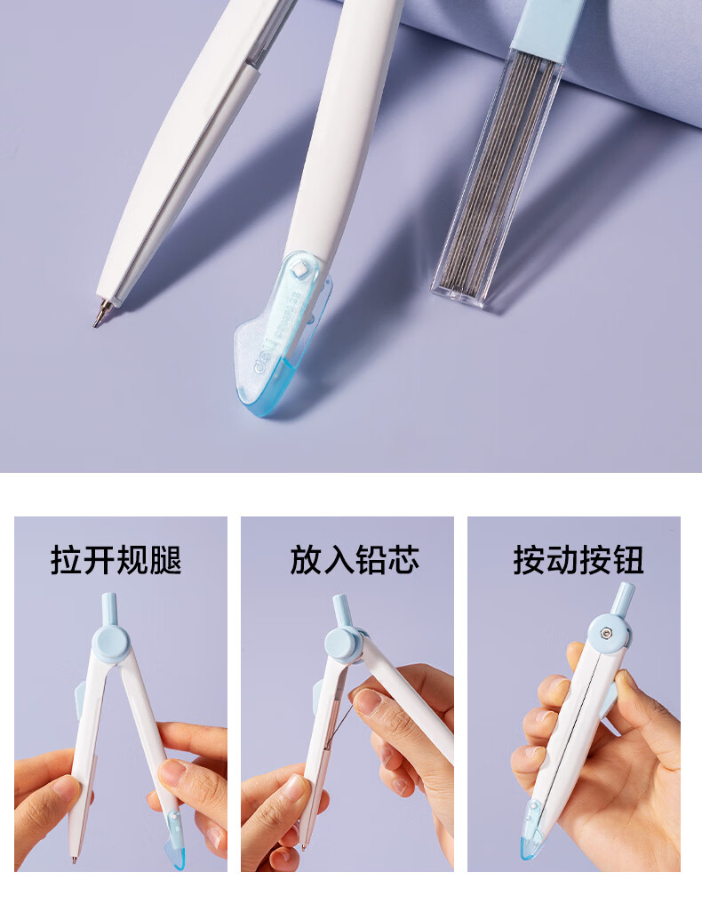 得力(deli)圆规初中生专用圆规小学生六年级三年级金属圆规锁距圆规考试专用 【紫白】锌合金圆规+2B铅芯