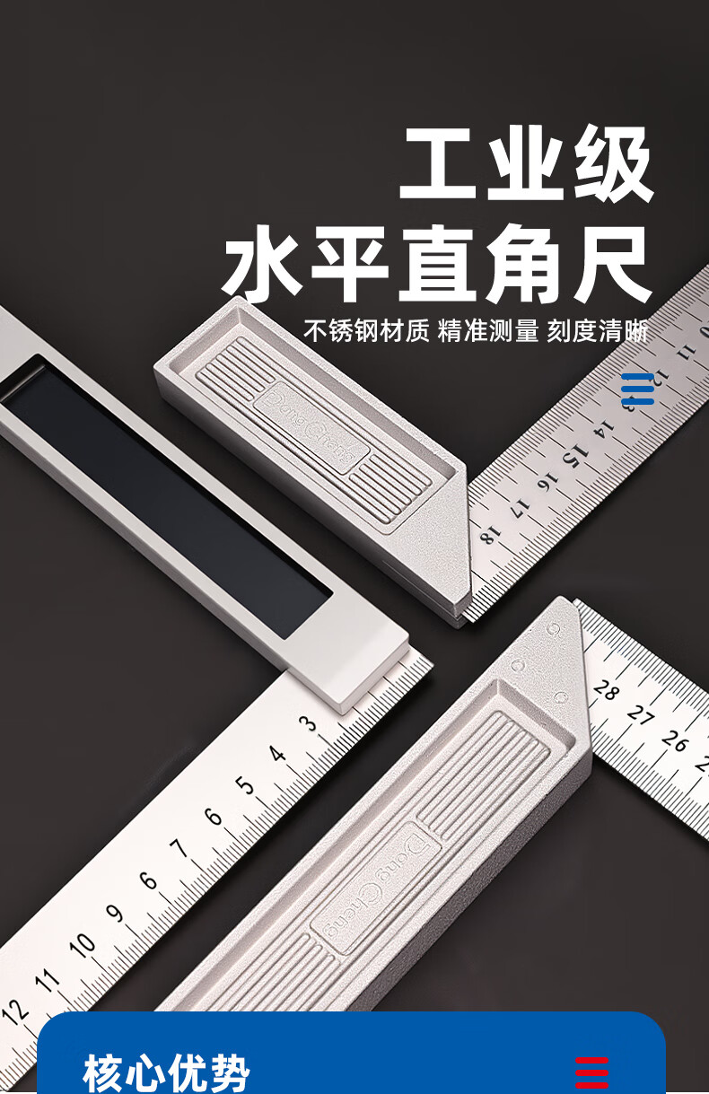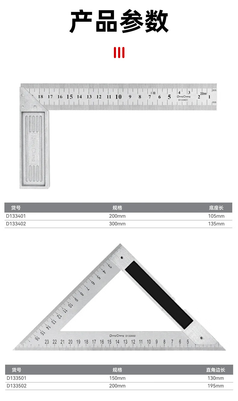 东成 铝合金钢角尺压铸铝柄三角尺 200mm铝合金钢角尺D133401