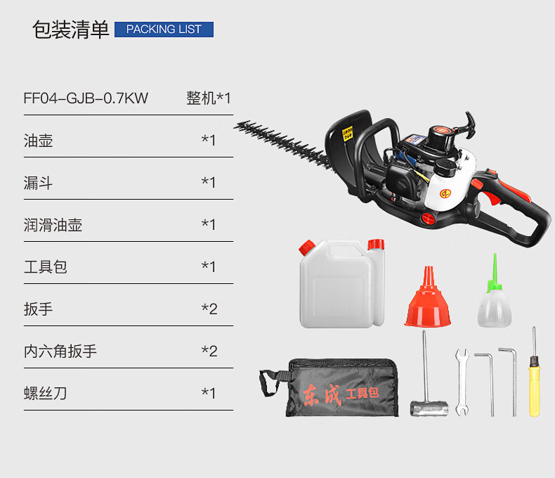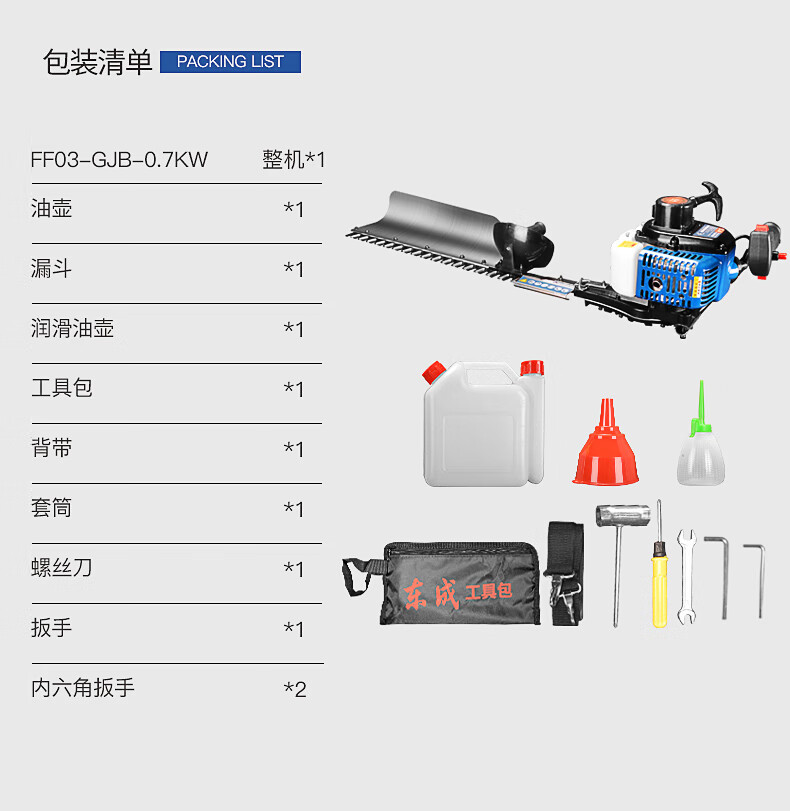 东成 绿篱机汽油单双刃款剪茶机修枝剪园林灌木丛篱笆剪大功率修枝剪 二冲程双刃【650W】汽油绿篱机FF04-GJB-0.7KW