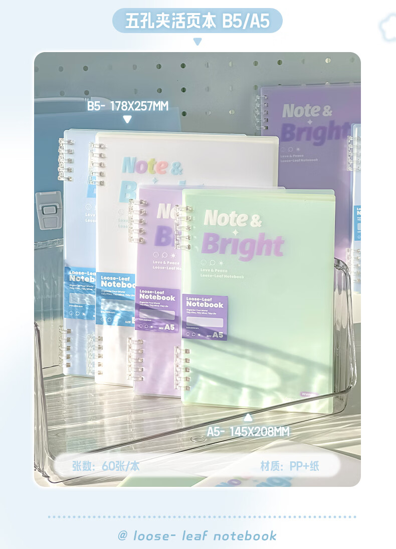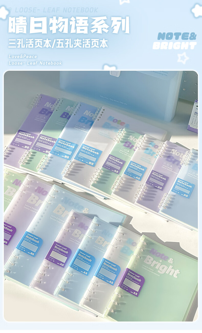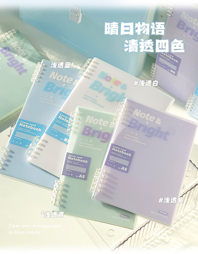 文谷(Wengu)活页笔记本子 a5/b5不硌手五孔活页本学生专用高颜值简约可拆卸侧翻横线本 清透青HC-076(B5)