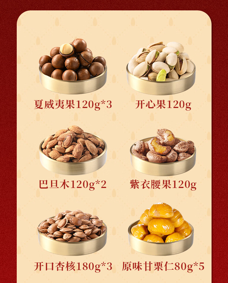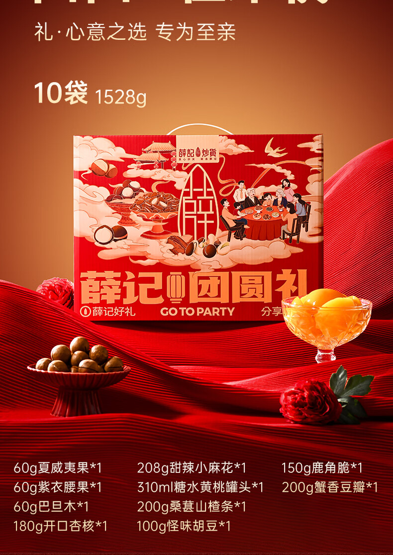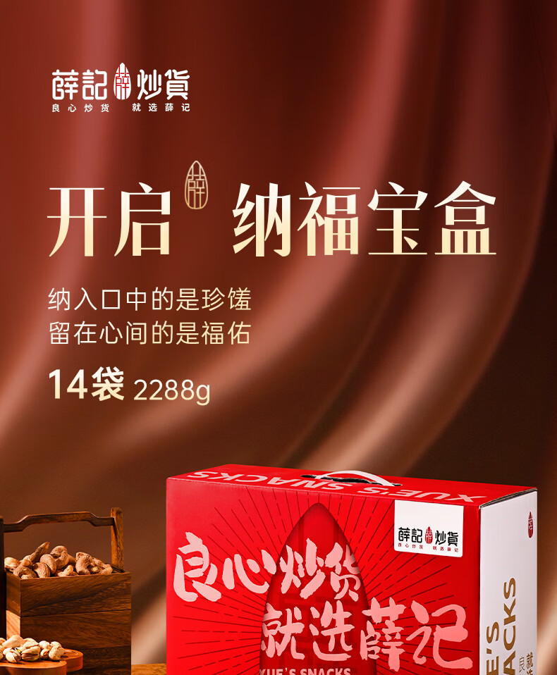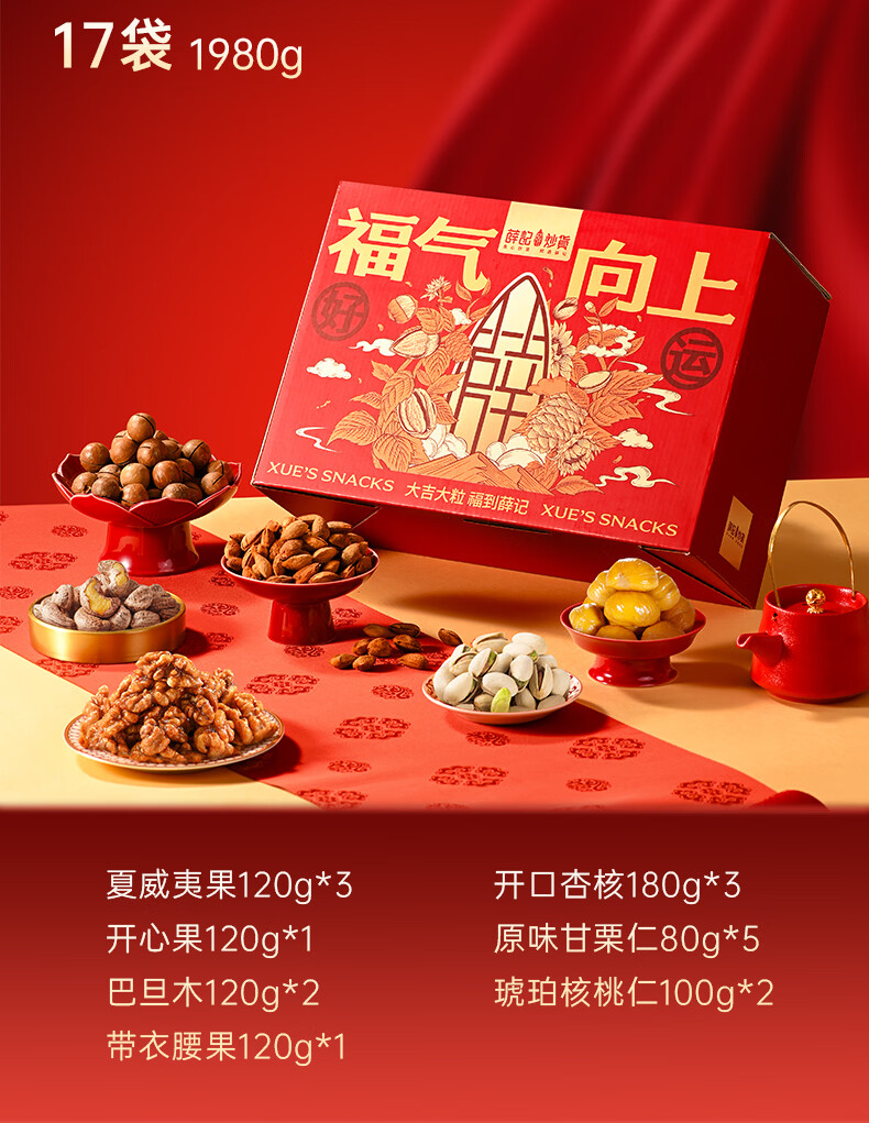 薛记炒货混合坚果礼盒坚果果干袋装过节送长辈节日礼物零食坚果礼盒 过年礼1428g/9袋