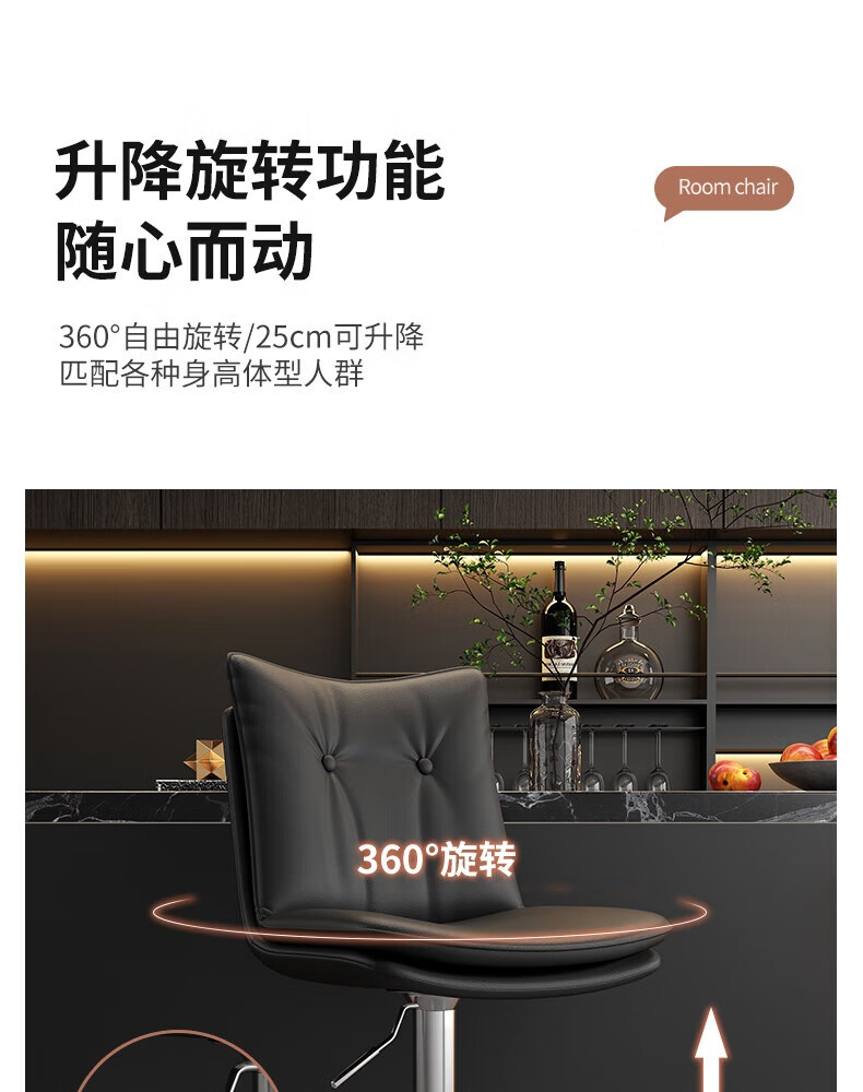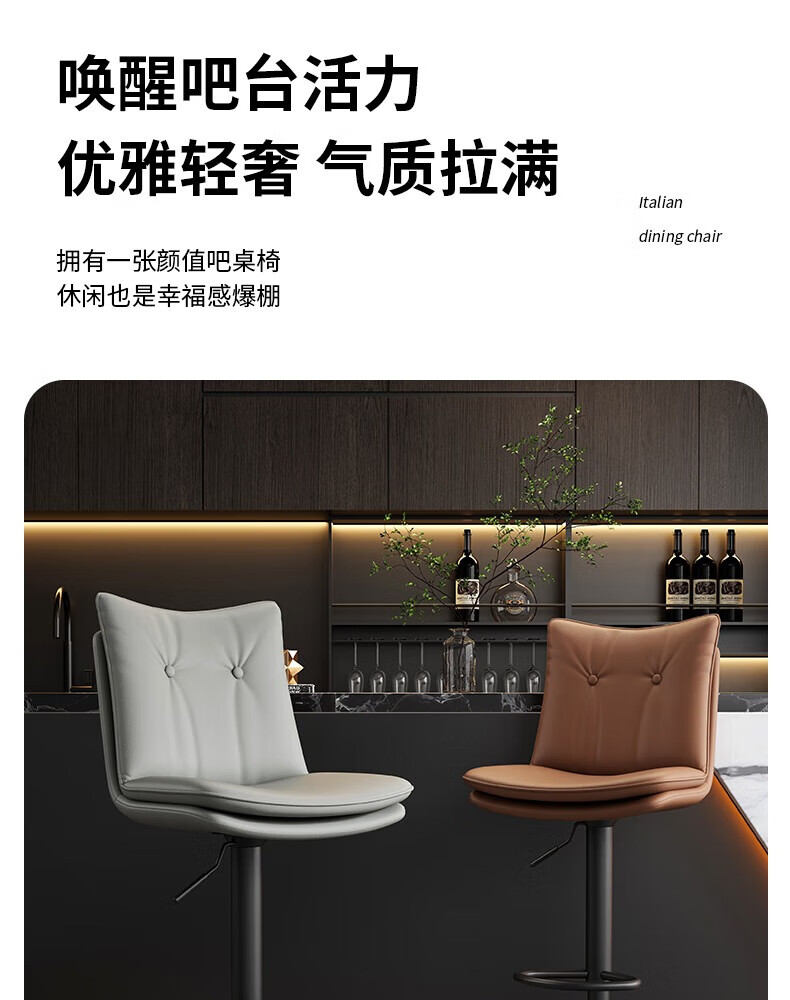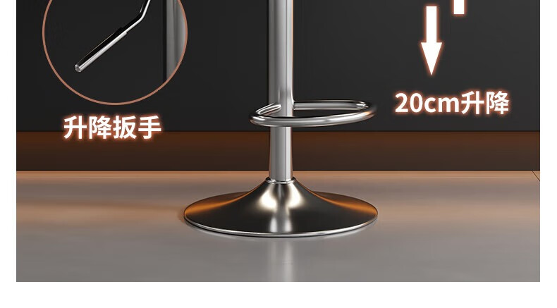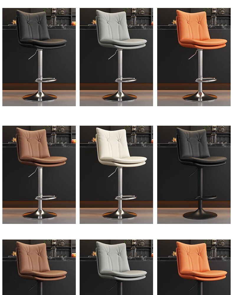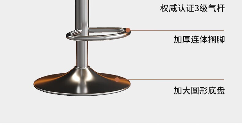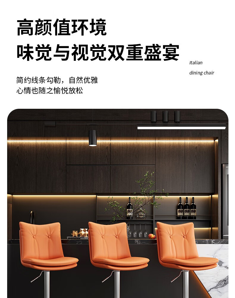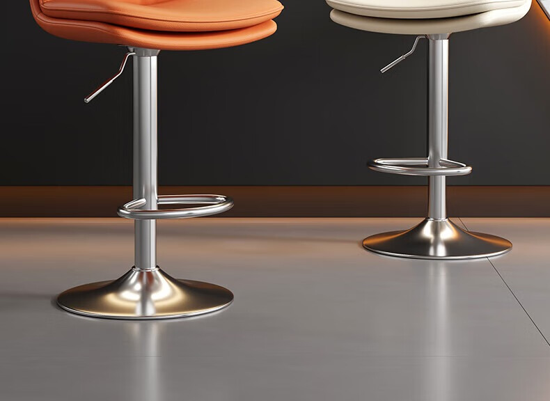 广宥轻奢升降吧台椅子酒吧椅时尚家用凳子高脚椅旋转前台岛台椅吧台凳 【橙色皮】高款60--80CM烤漆黑脚 【加大41.5CM直径地盘】更稳固