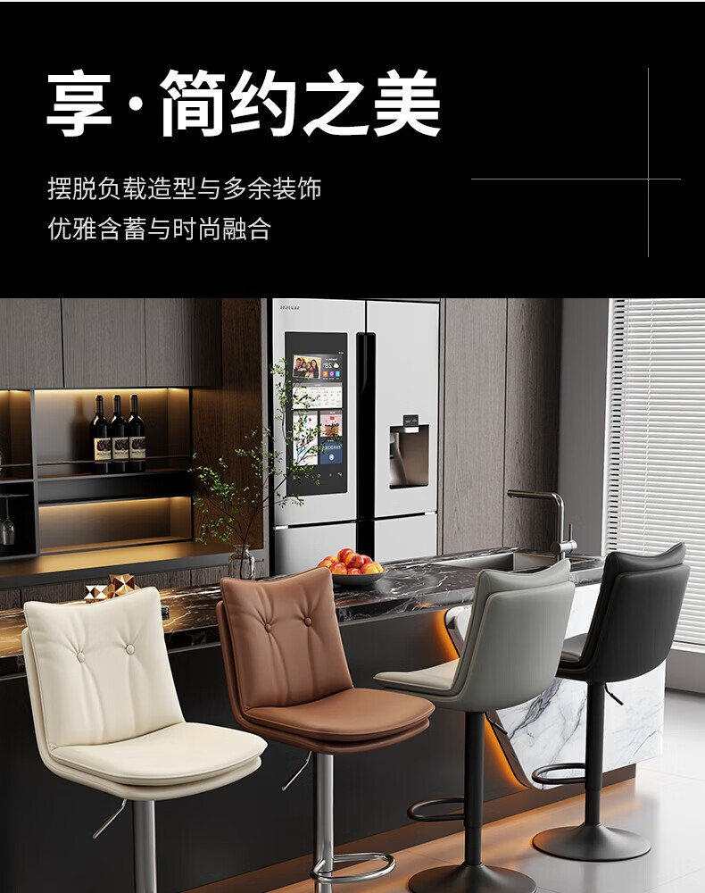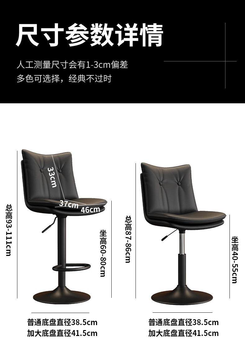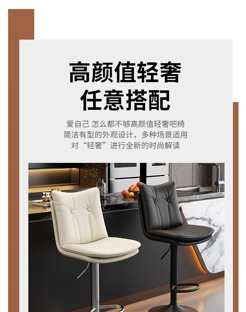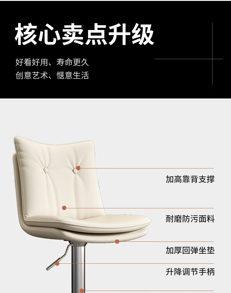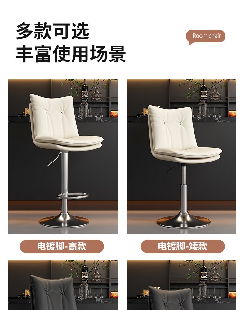 广宥轻奢升降吧台椅子酒吧椅时尚家用凳子高脚椅旋转前台岛台椅吧台凳 【橙色皮】高款60--80CM烤漆黑脚 【加大41.5CM直径地盘】更稳固
