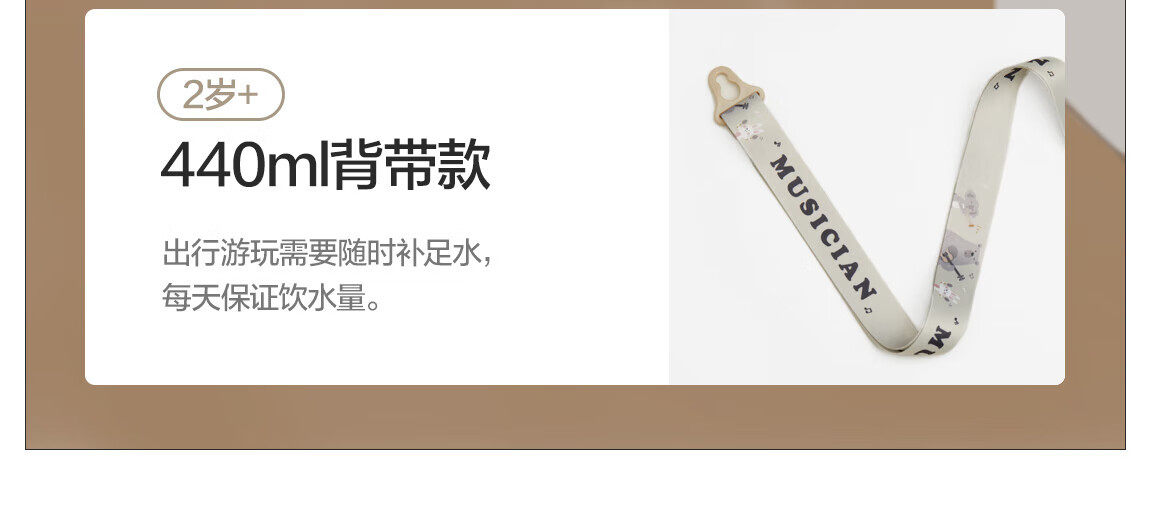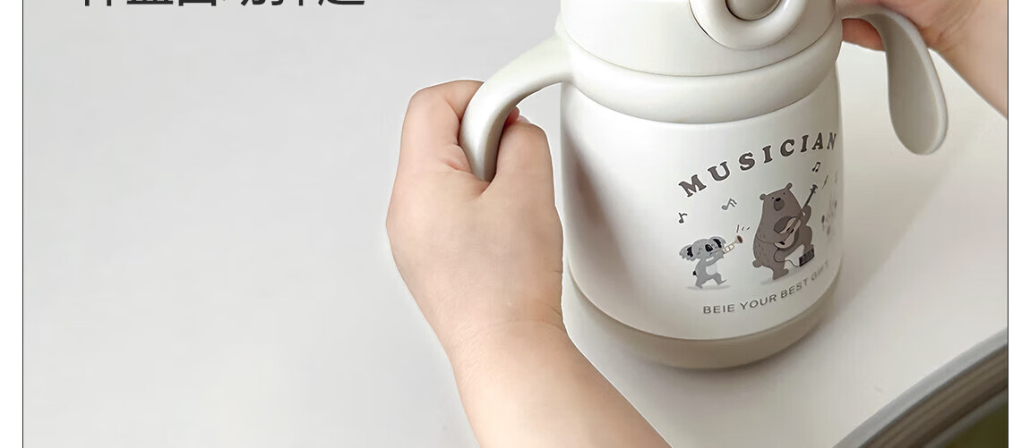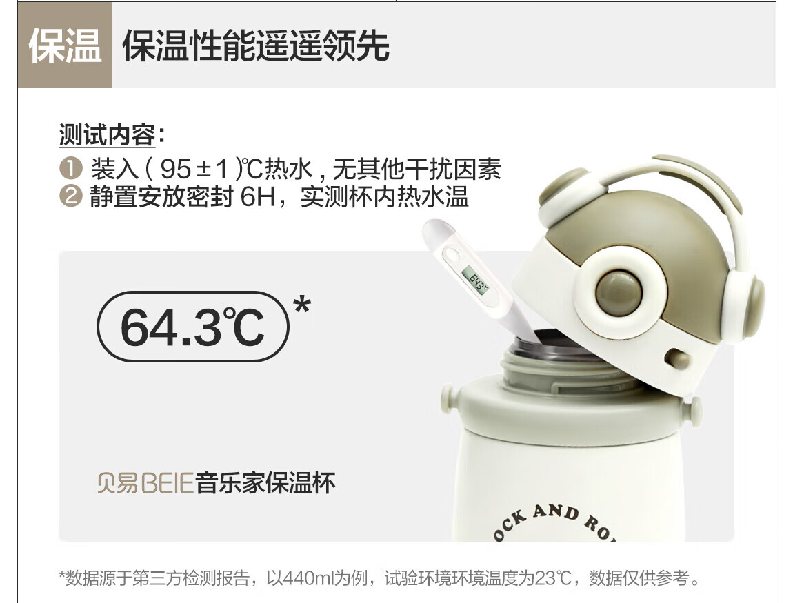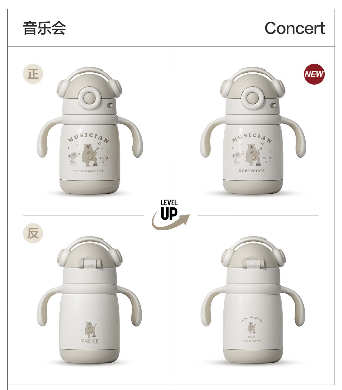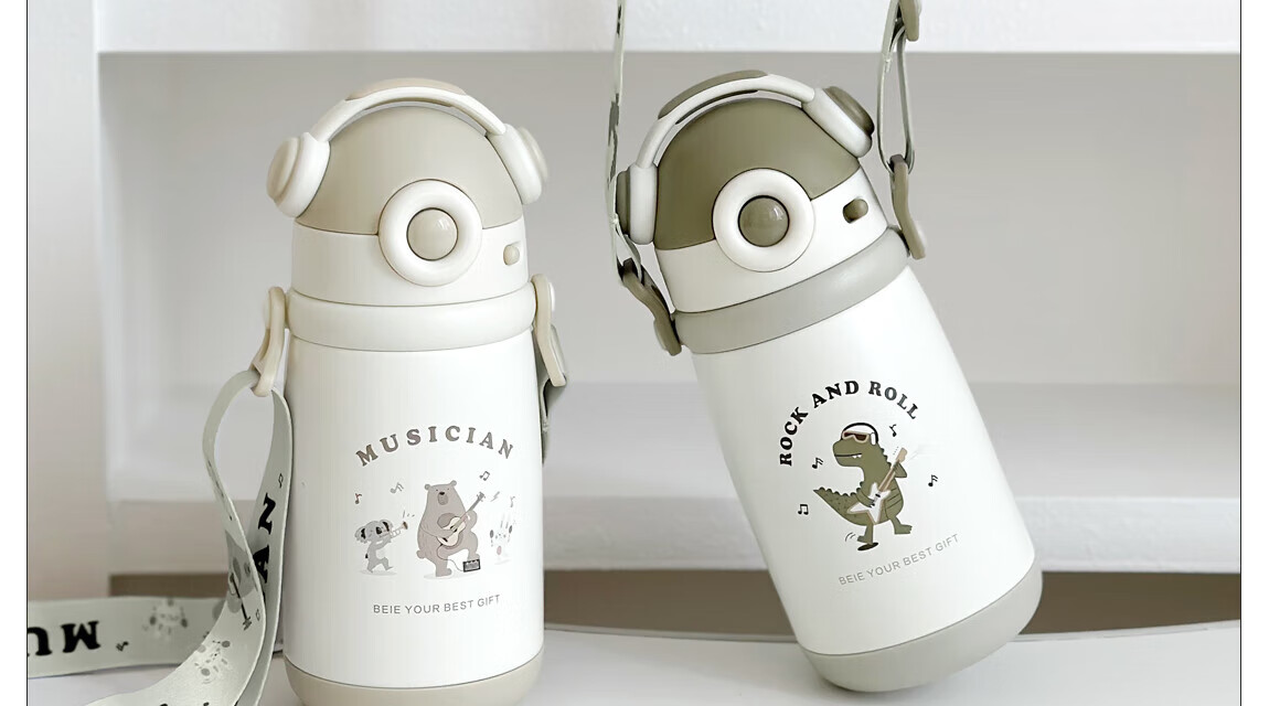 贝易音乐家儿童保温杯直饮吸管大容量316L不锈钢小学生水杯上学专用