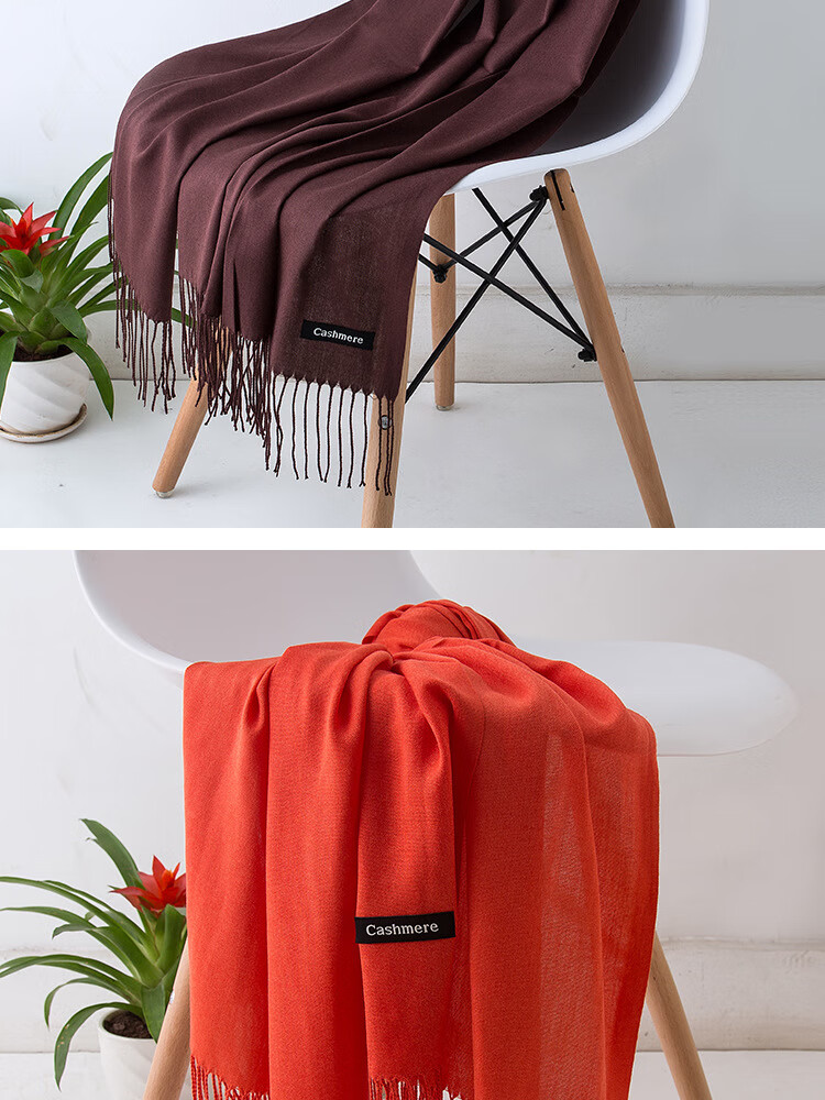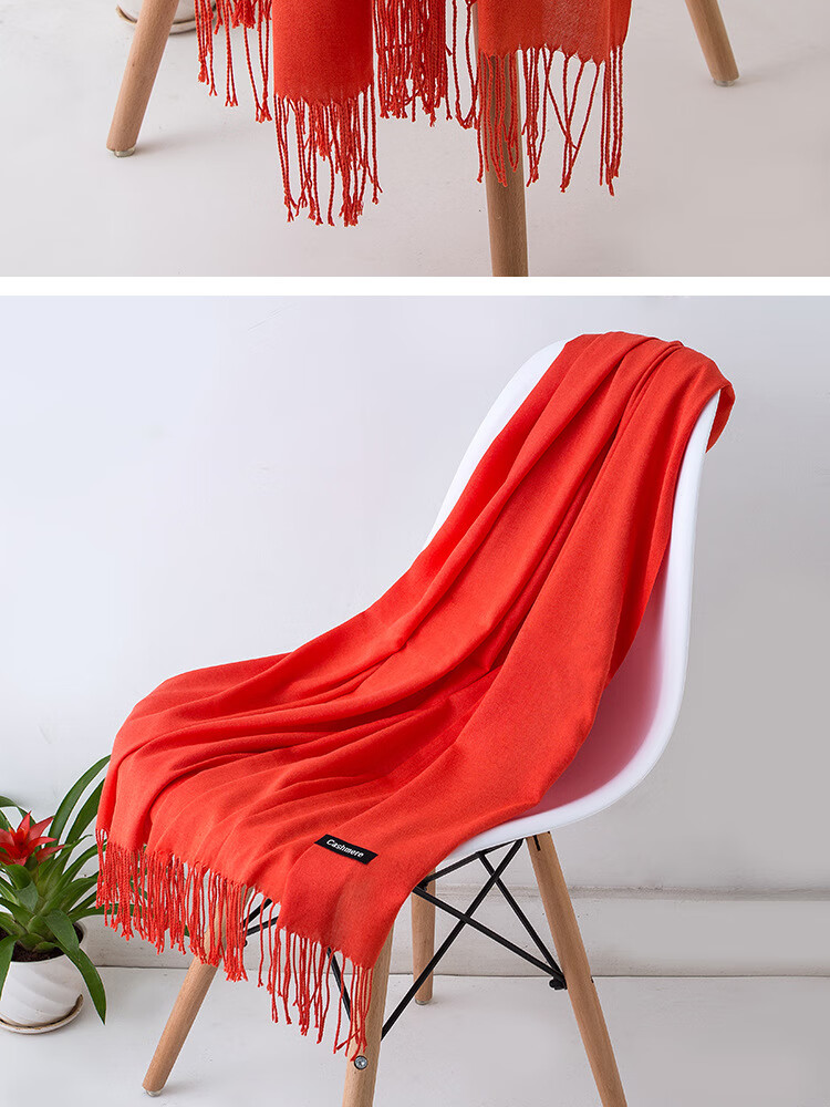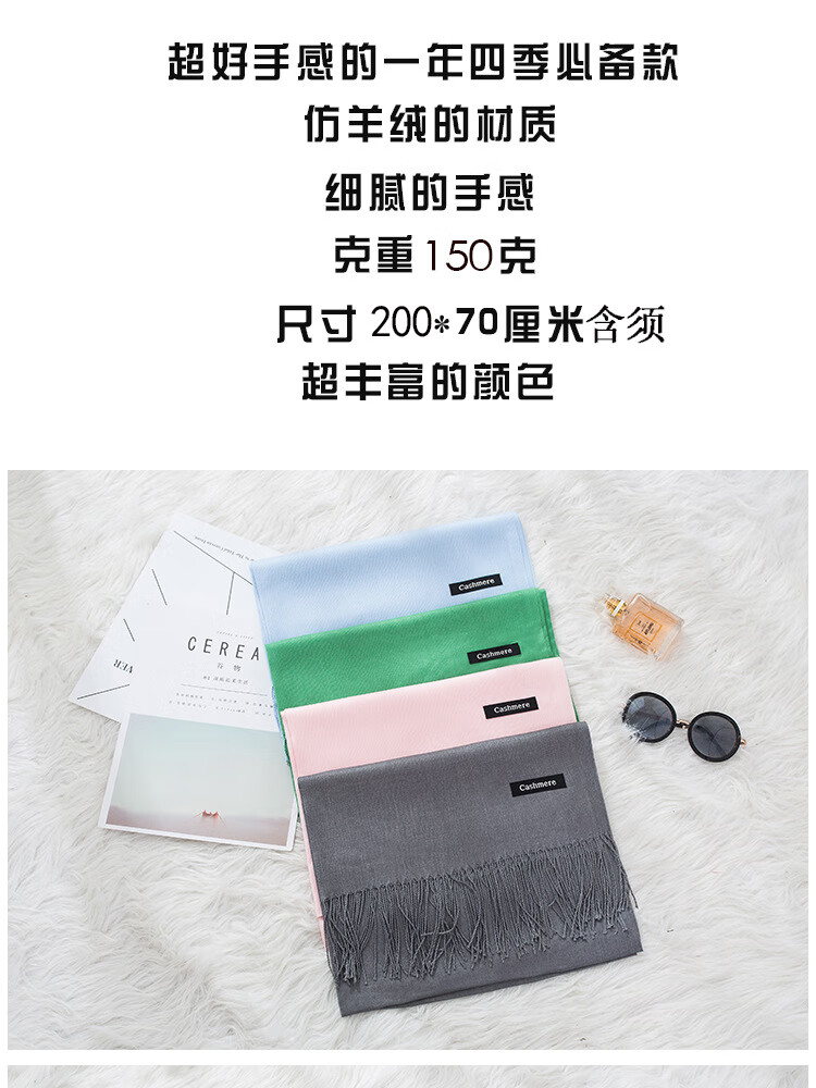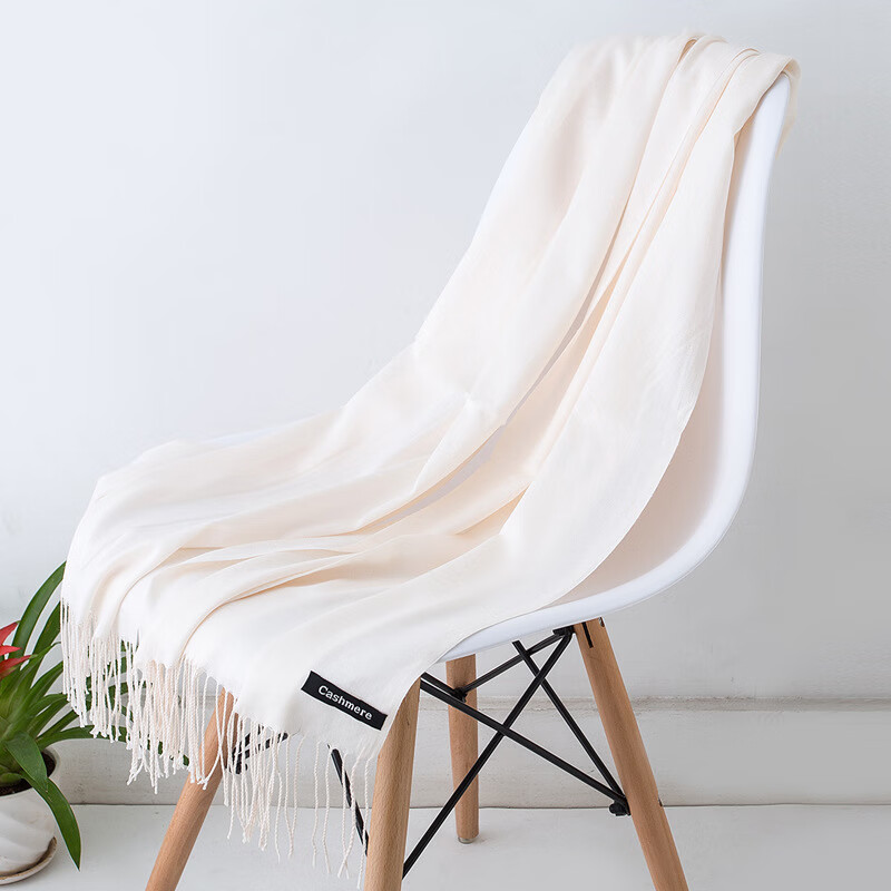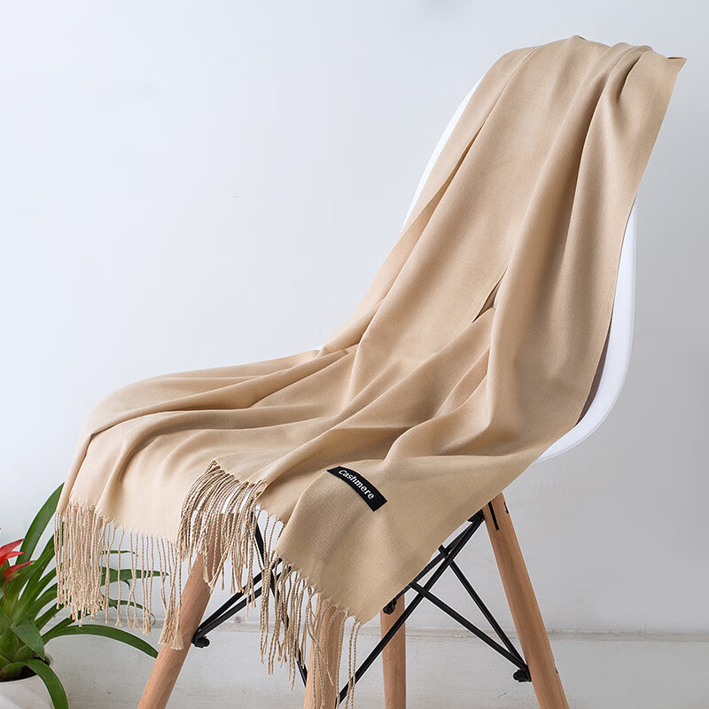 奥义驰围巾韩版女秋冬季纯色仿羊绒加厚保暖长款百搭夏季空调房披肩两用 米色 200*70cm
