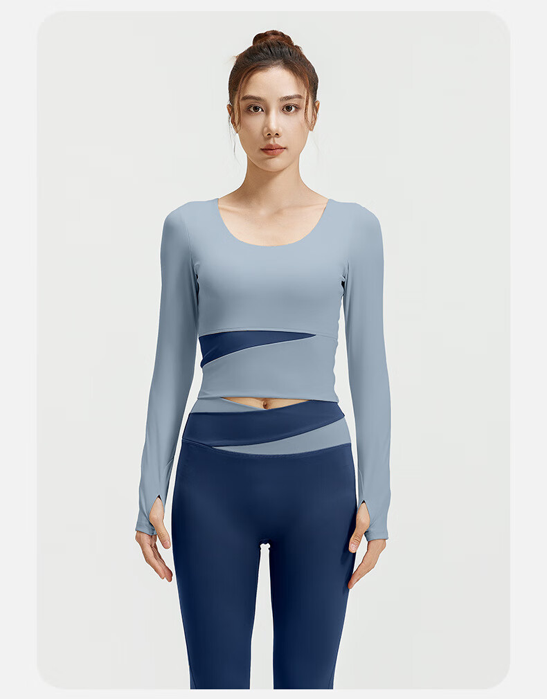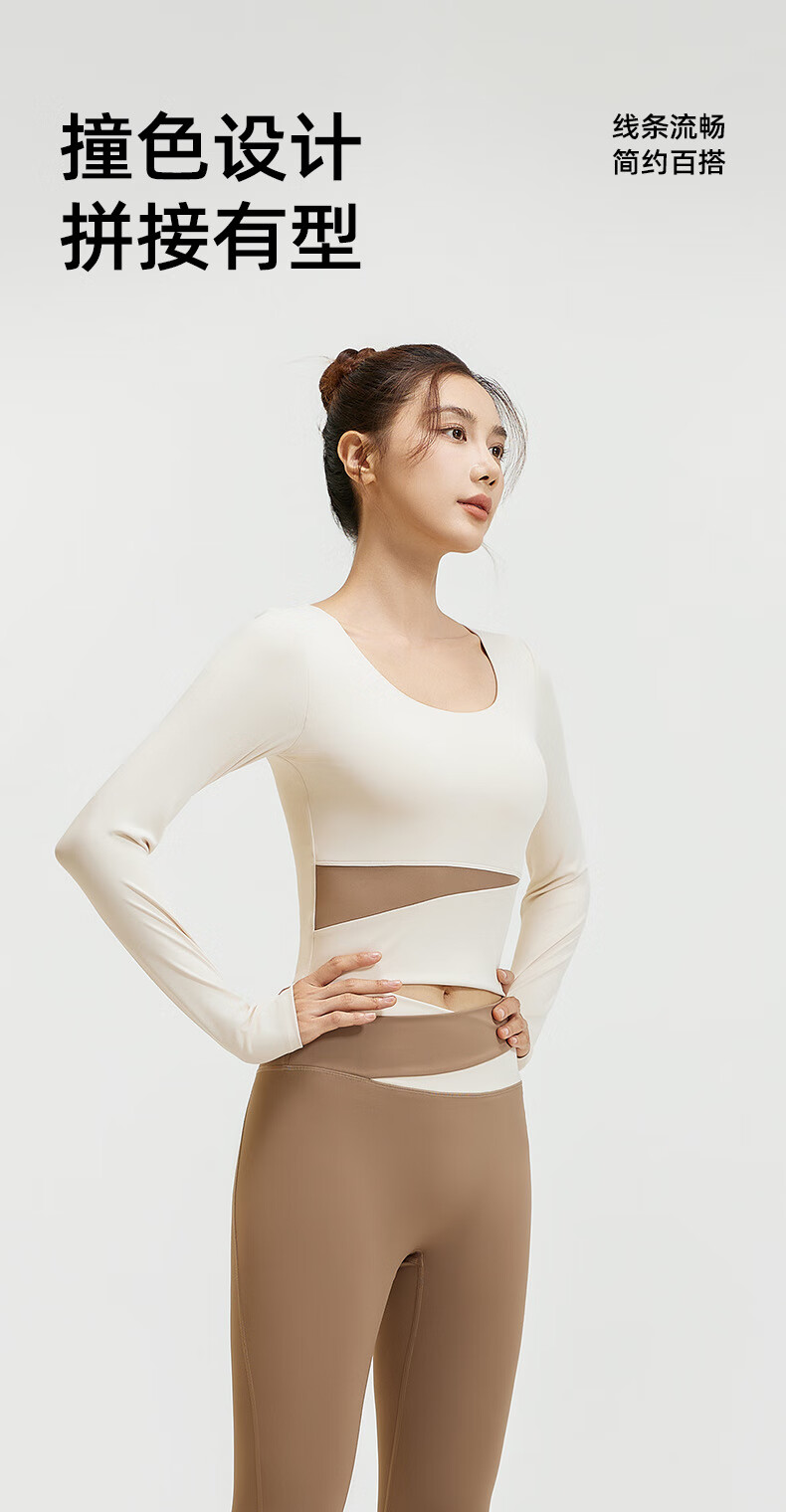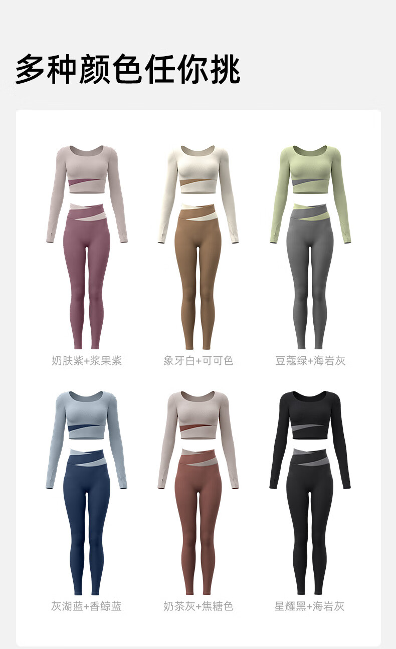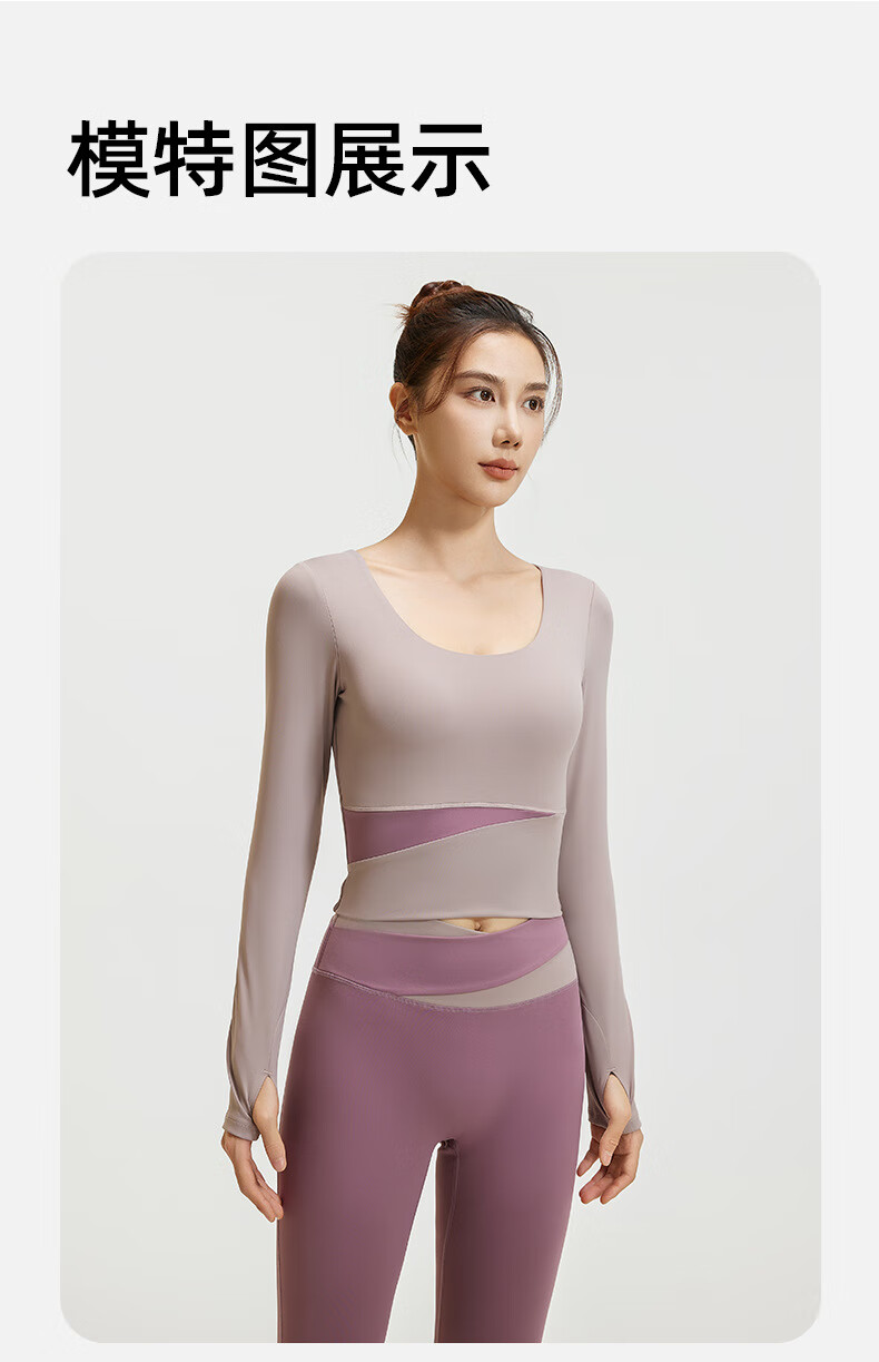 VICTORIATOURIST运动套装女裸感紧身显瘦运动跑步健身撞色套装瑜伽上衣 奶肤紫长袖+浆果紫长裤 XL【建议115-130斤】