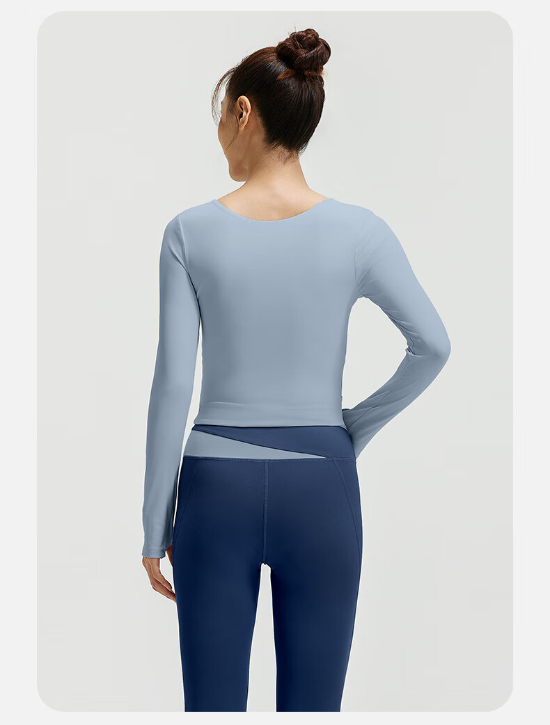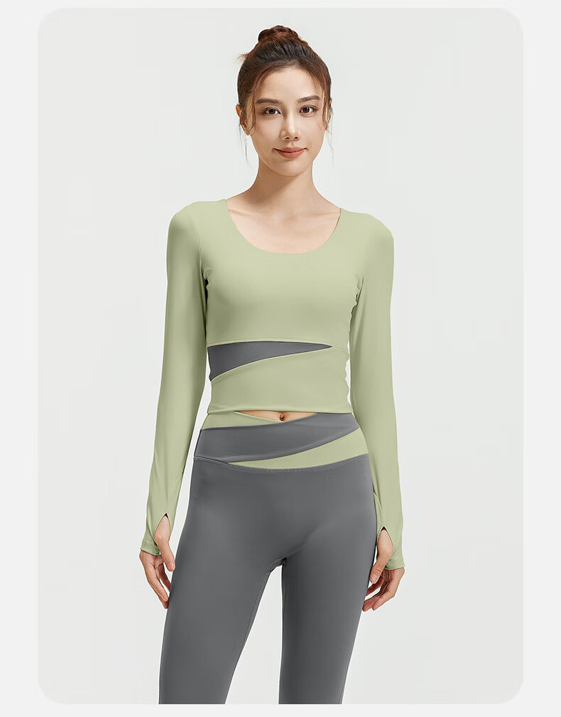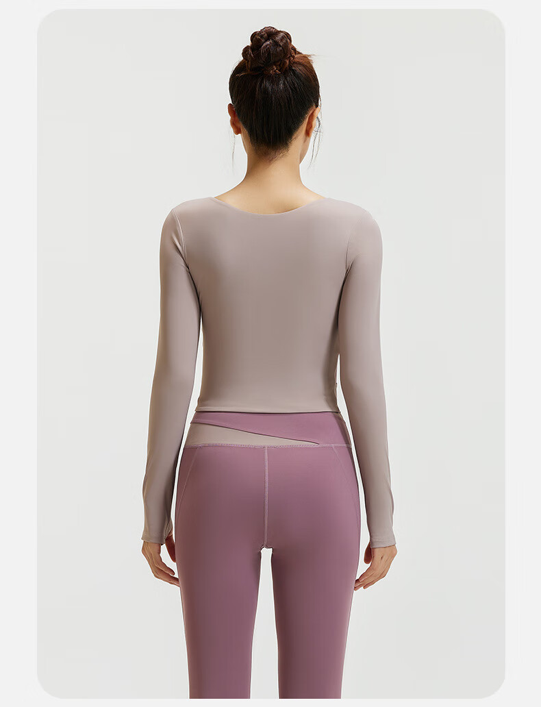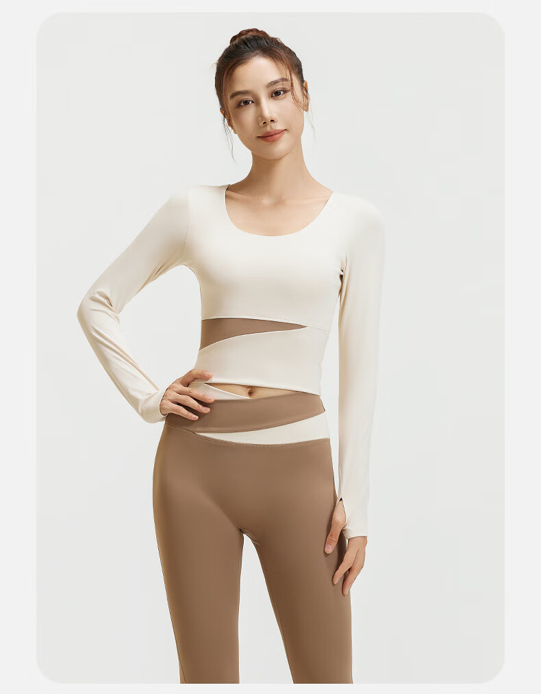 VICTORIATOURIST运动套装女裸感紧身显瘦运动跑步健身撞色套装瑜伽上衣 奶肤紫长袖+浆果紫长裤 XL【建议115-130斤】