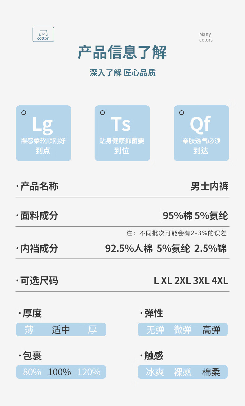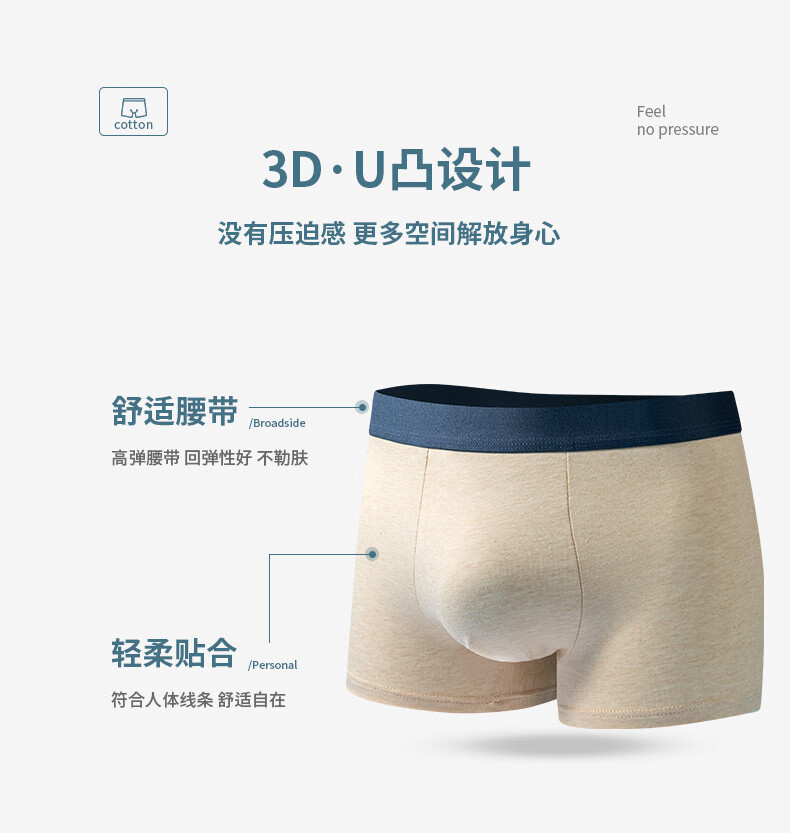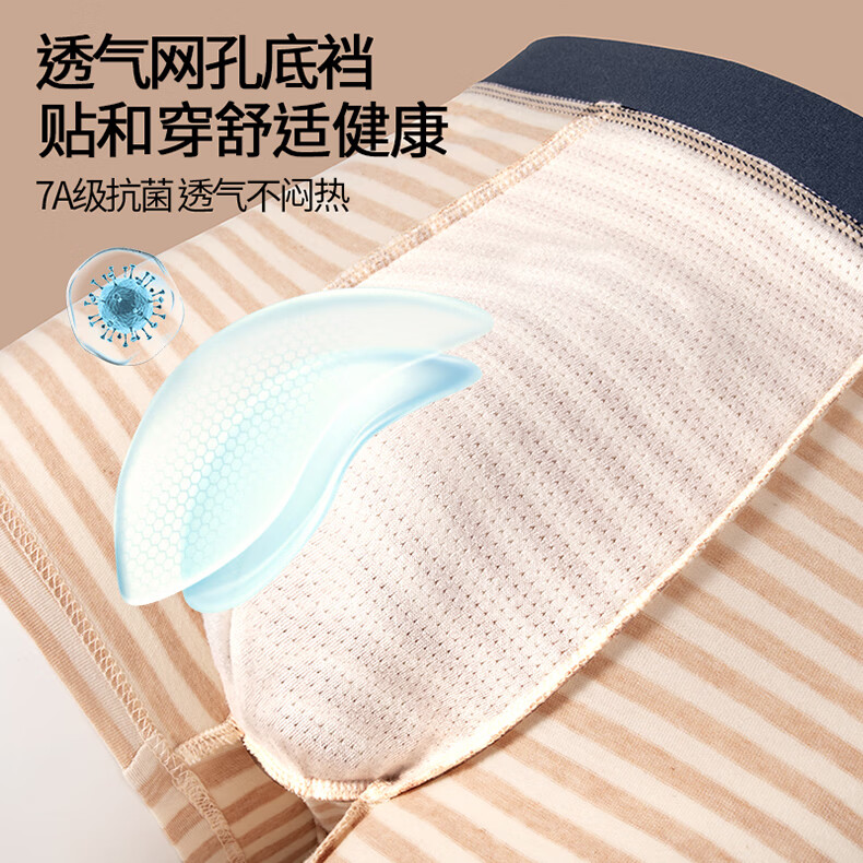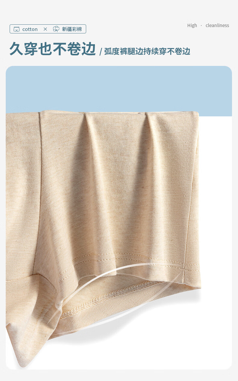 芝麻时光7A抗菌底档 彩棉内裤纯棉男内裤男全棉95%棉短裤衩四角裤正品 xL码100-120斤拍1发3包含赠共3条